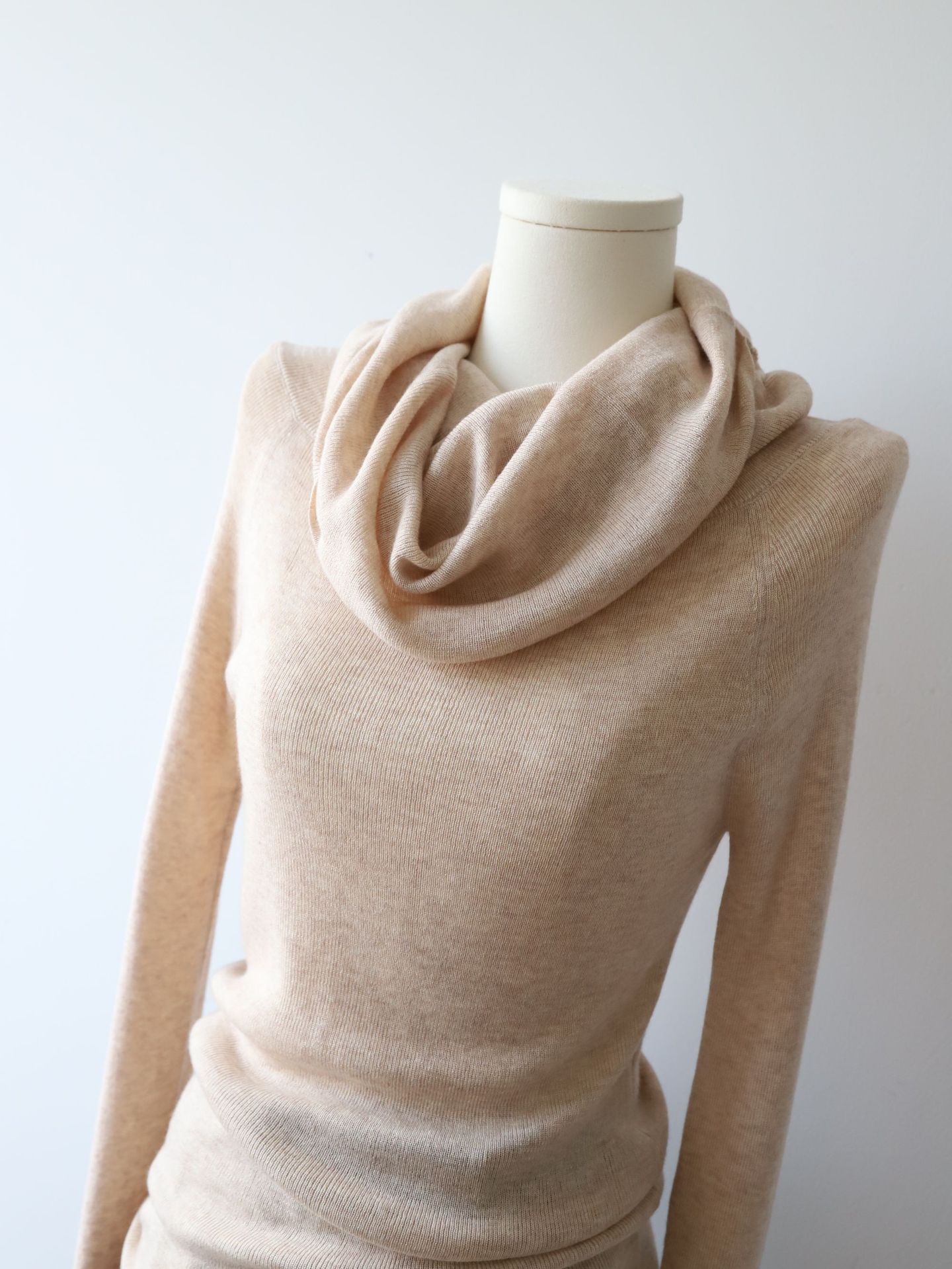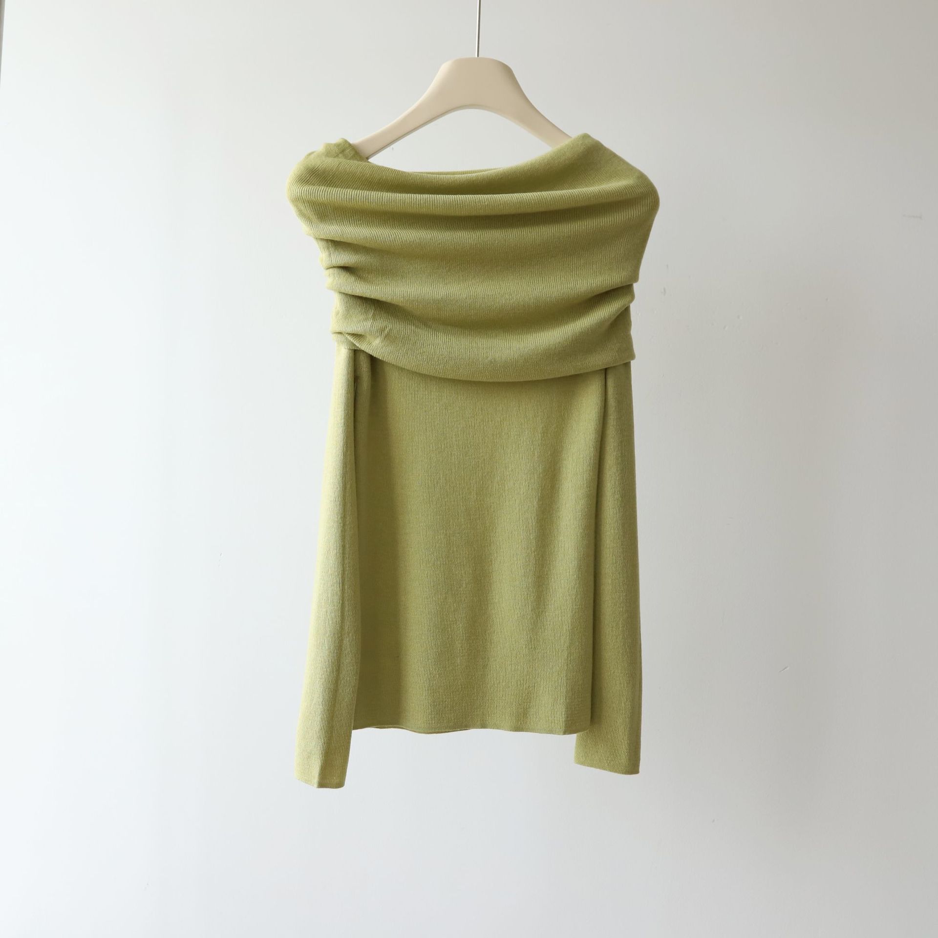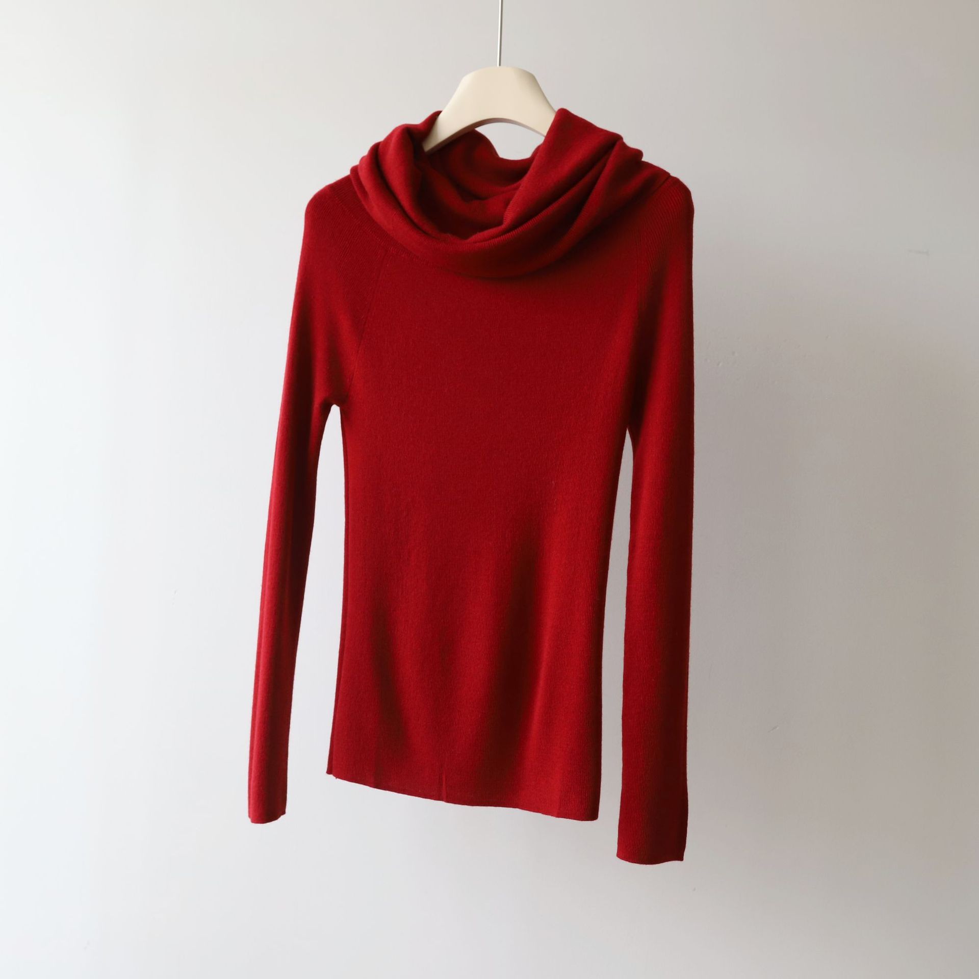 울 혼방 오프 숄더 넥 칼라 투웨어 니트 베이스 셔츠 여성의 가을과 겨울 새로운 긴팔 풀오버 내부 탑스토어 가기
