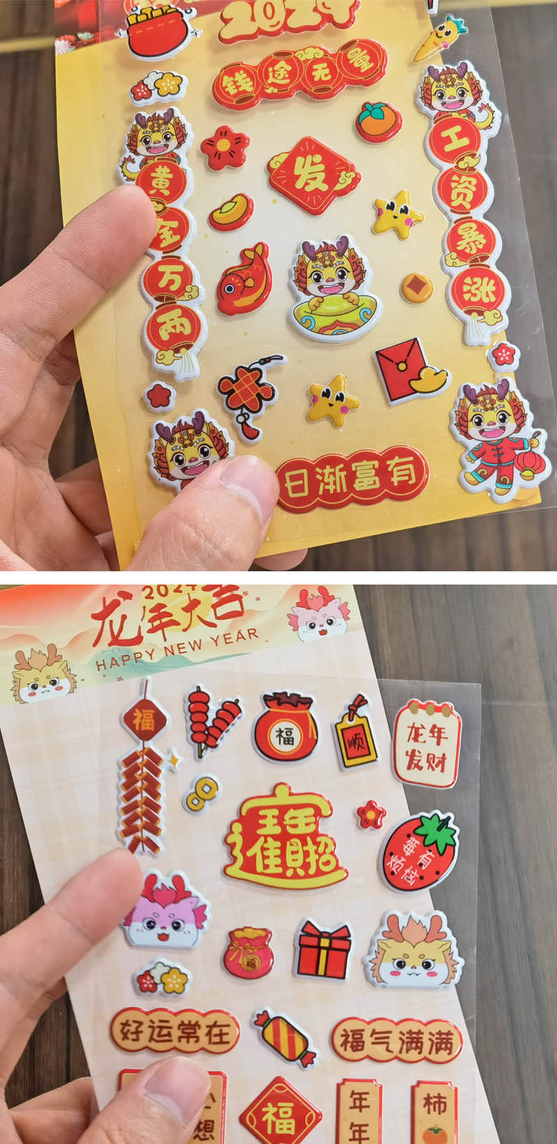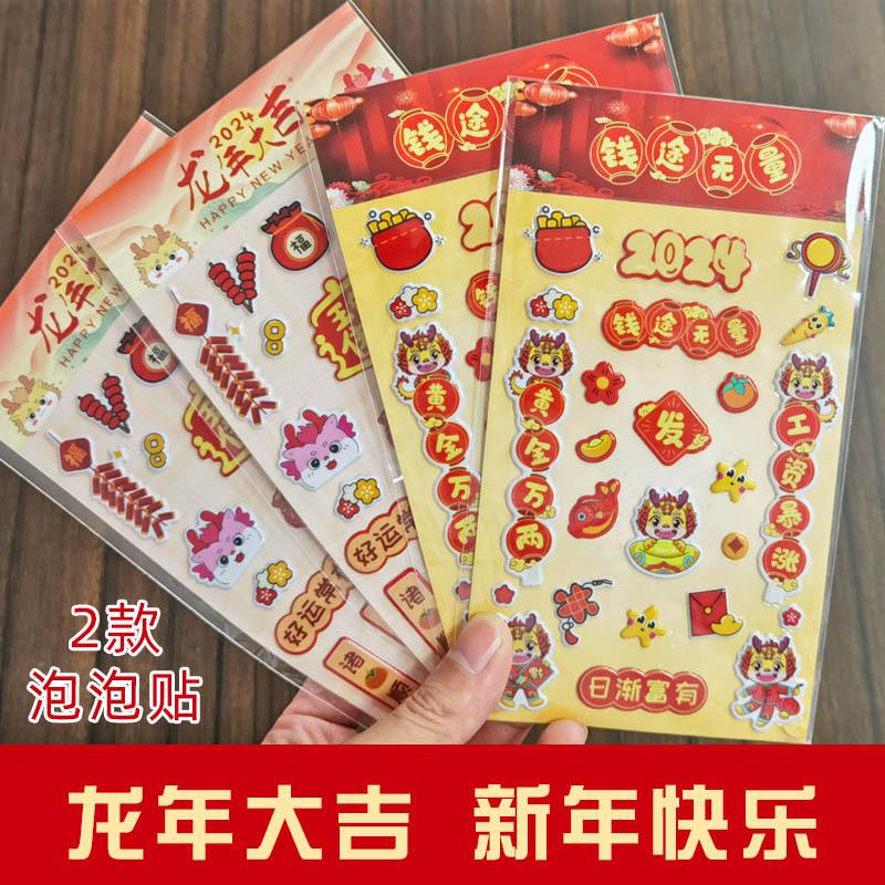 本产品为2024新年立体泡泡贴,现货2款。如需定制请联系客户!