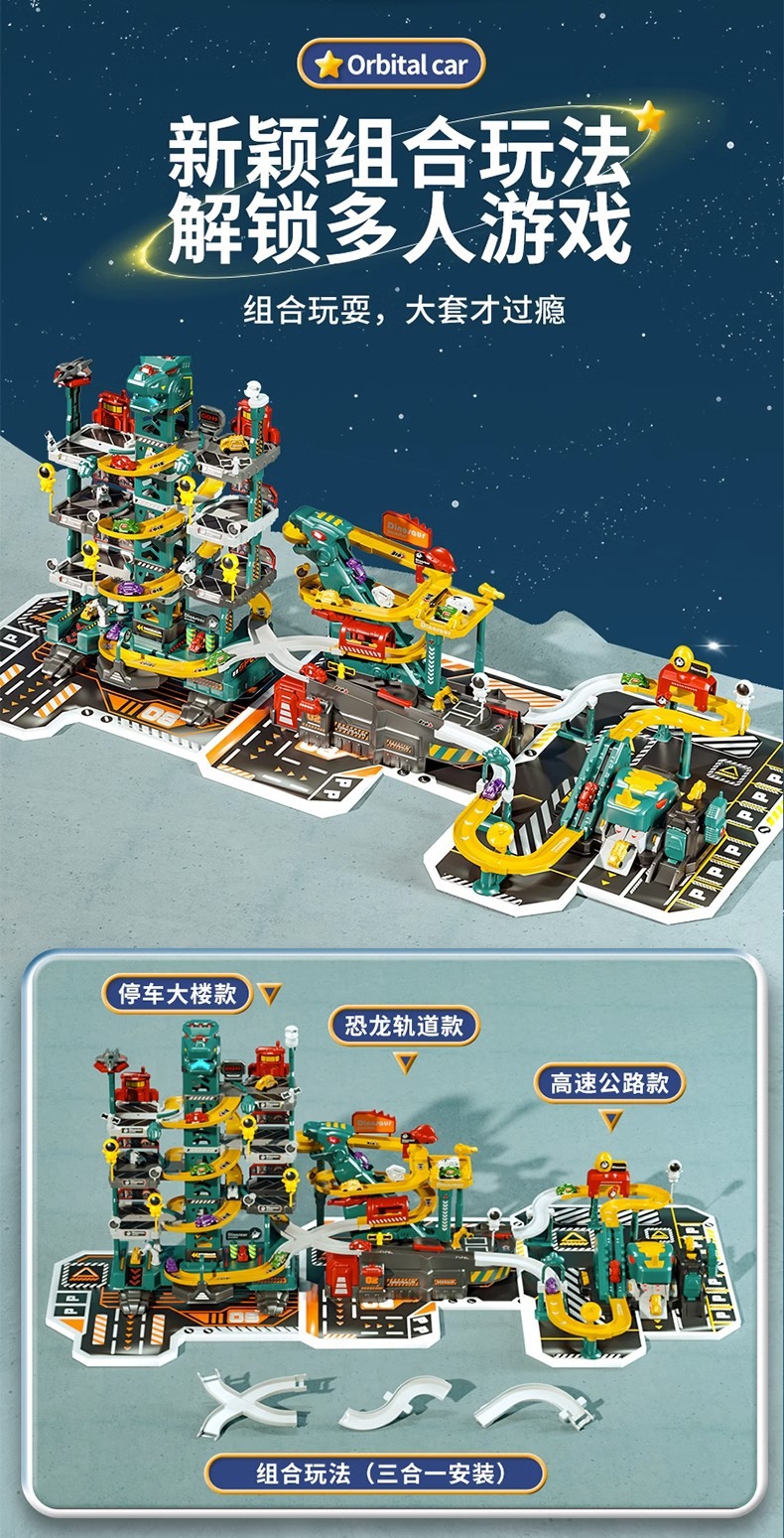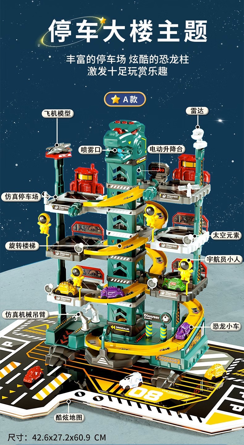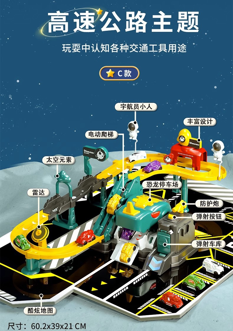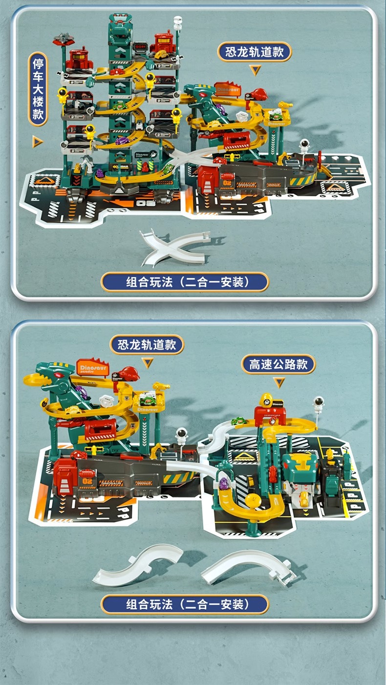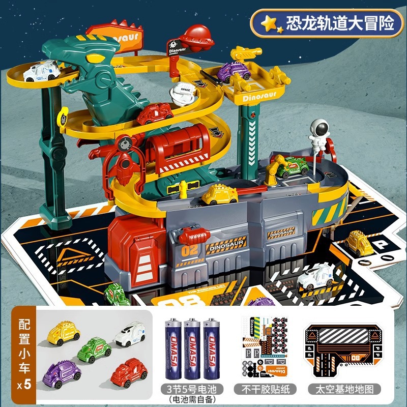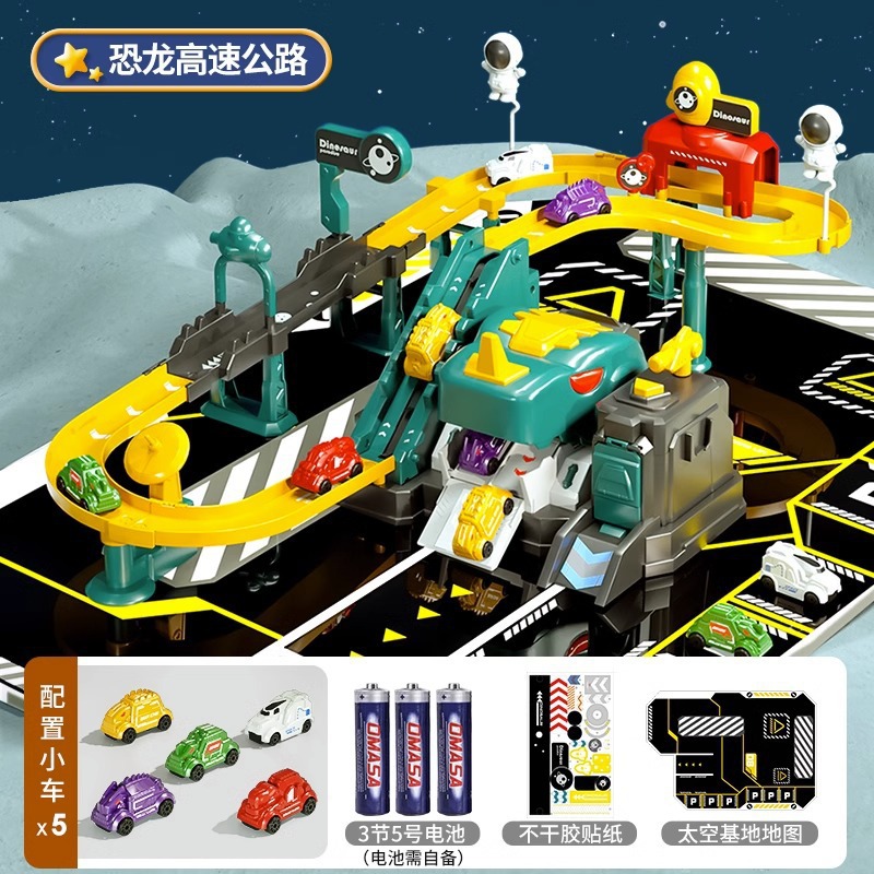 어린이 공룡 트랙 주차장 건물 도시 모험 판산 고속도로 조립 전기 장난감