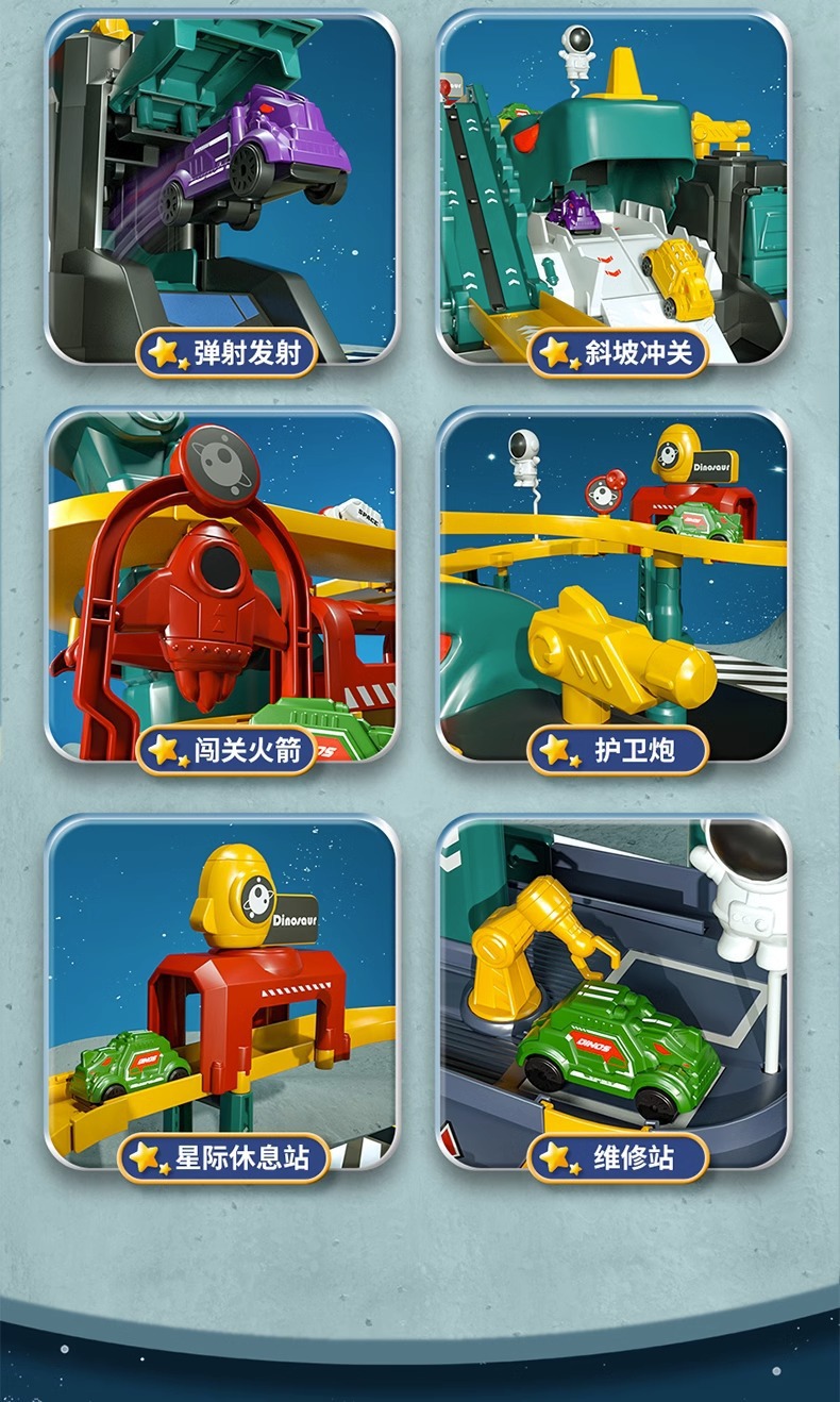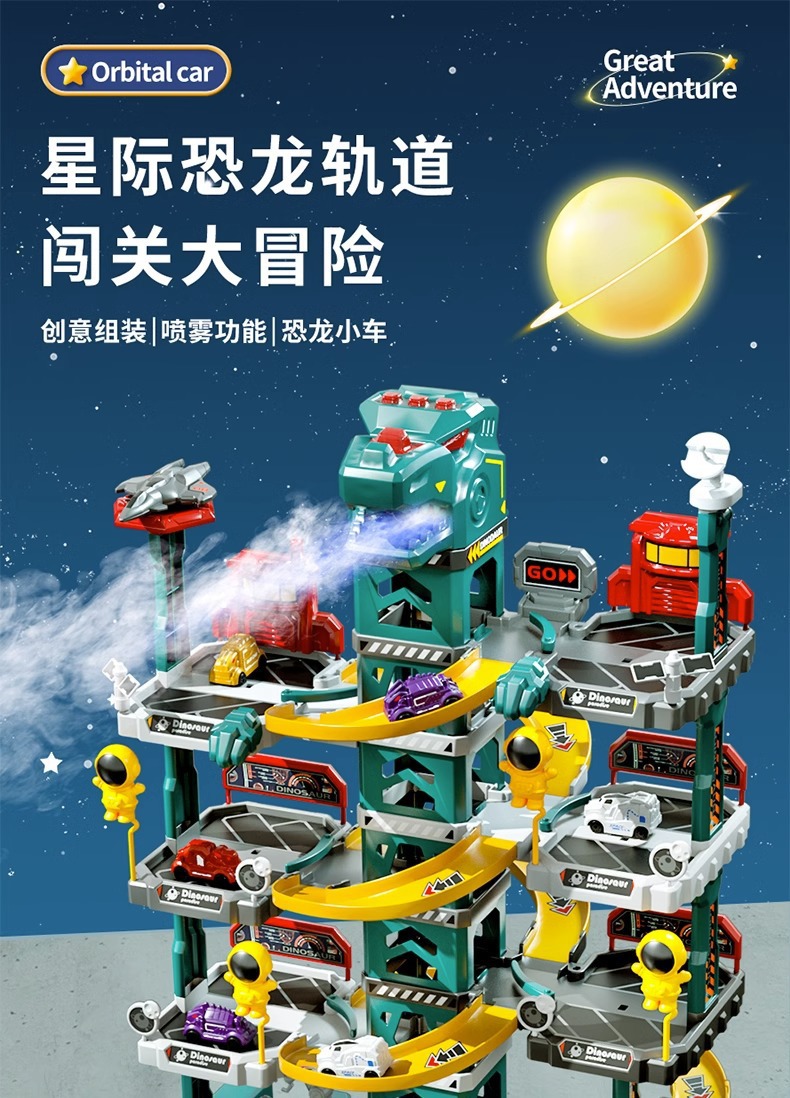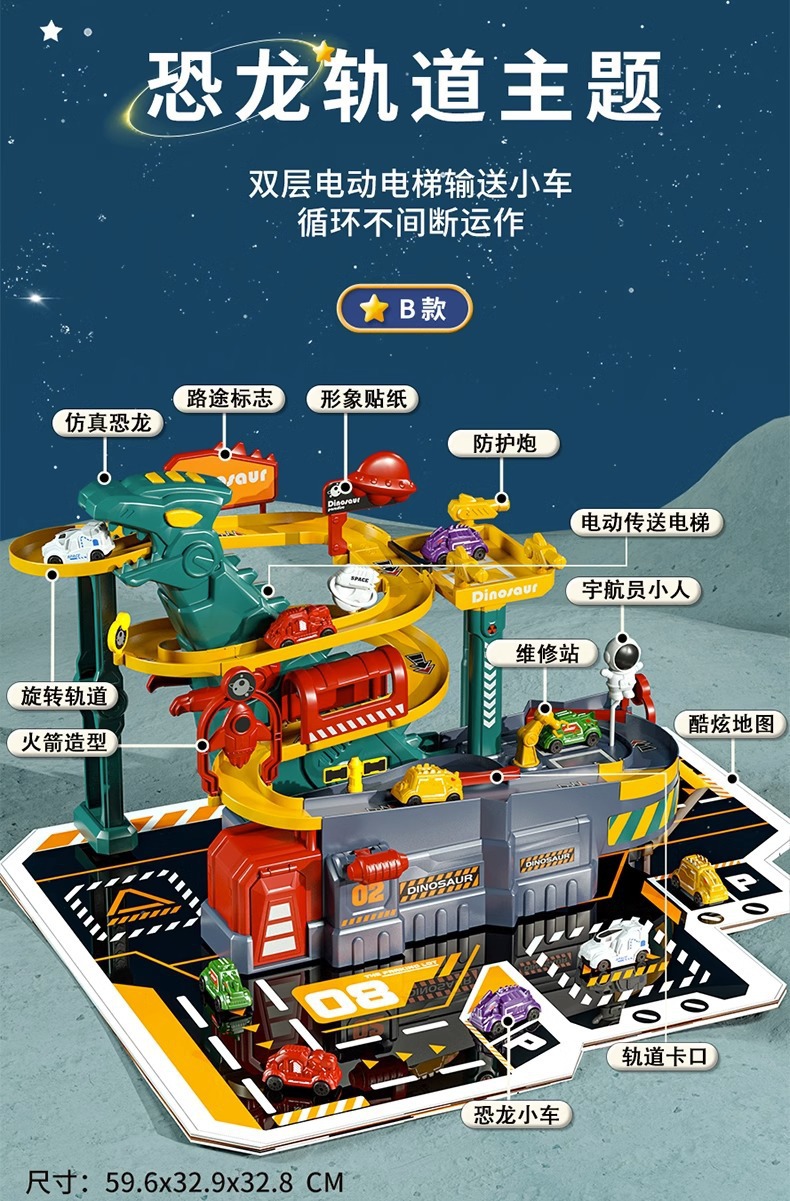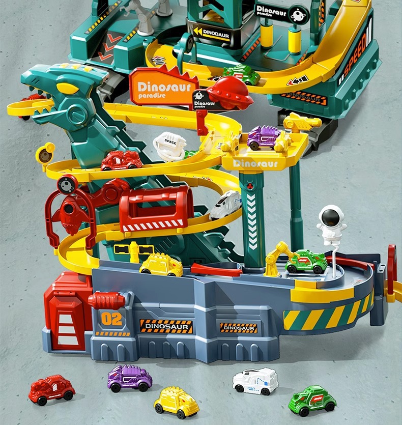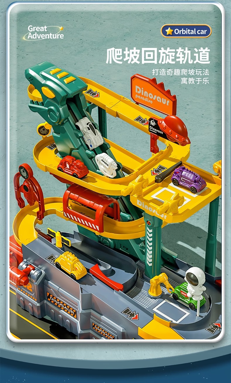 어린이 공룡 트랙 주차장 건물 도시 모험 판산 고속도로 조립 전기 장난감스토어 가기