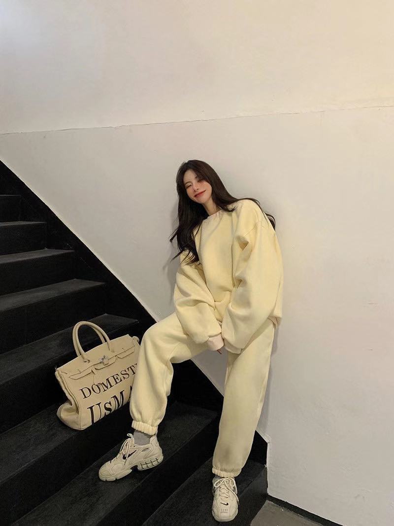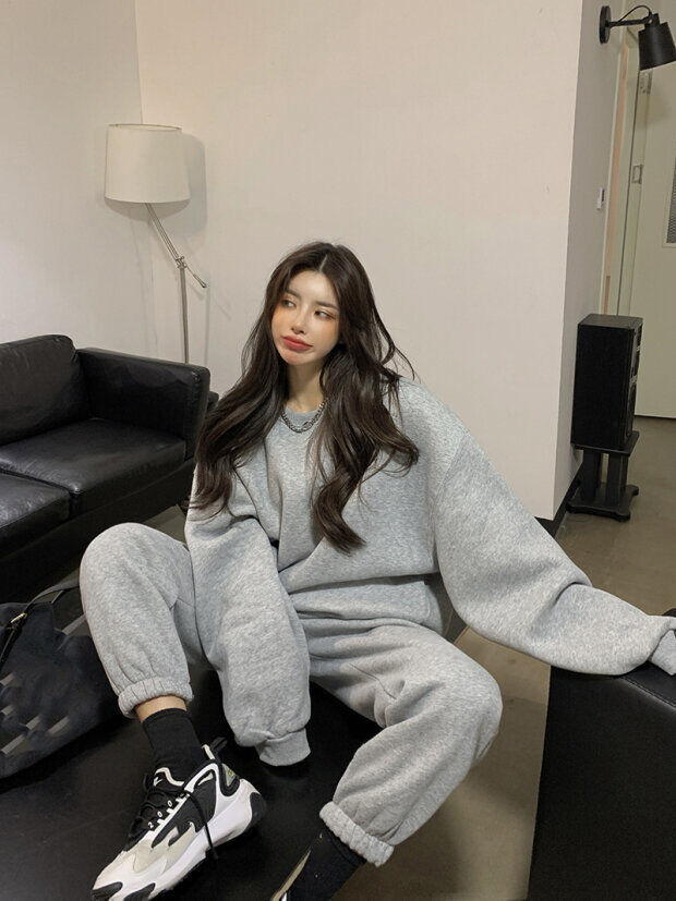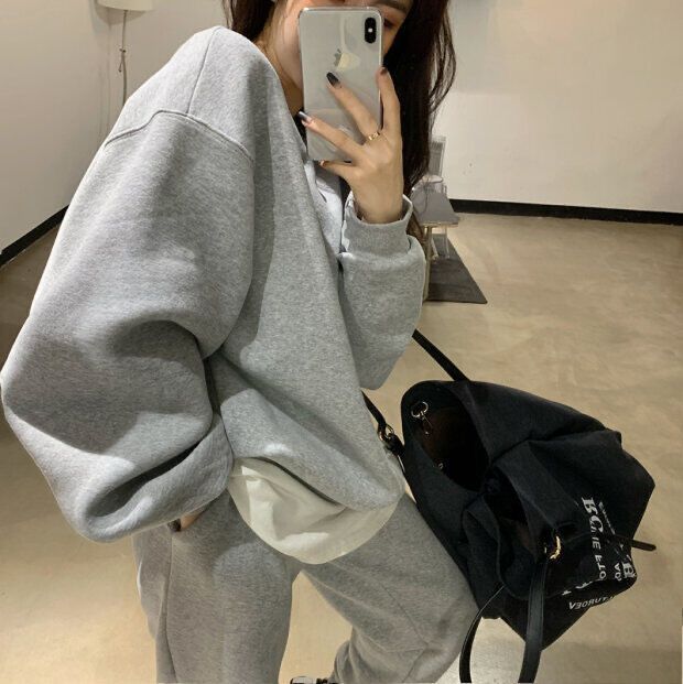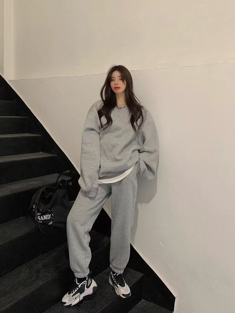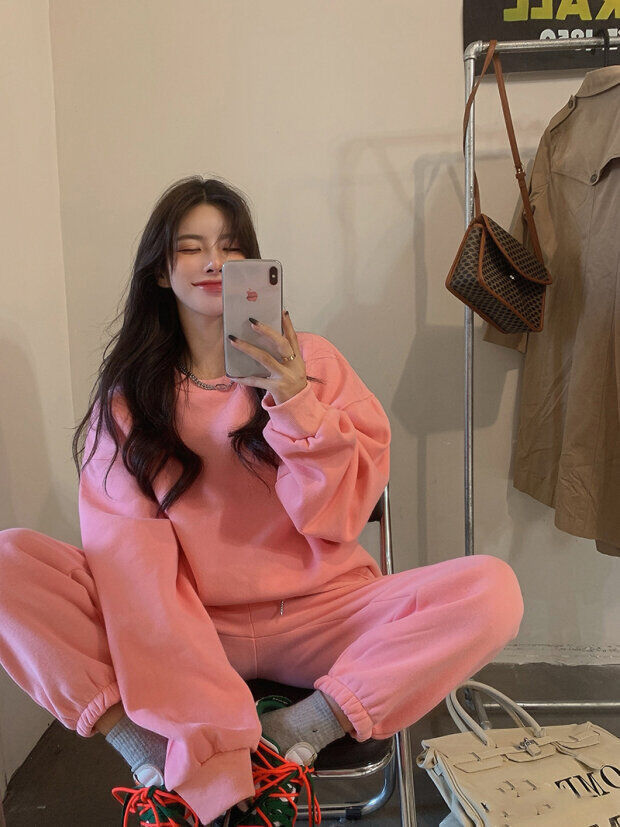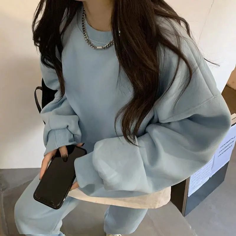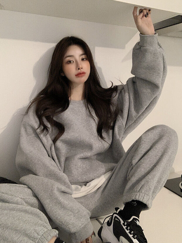 922 # 캐주얼 패션 스포츠 세트 여성 2023 봄과 가을 새로운 느슨한 긴 소매 웨스턴 스타일 스웨터 바지 투피스 세트스토어 가기