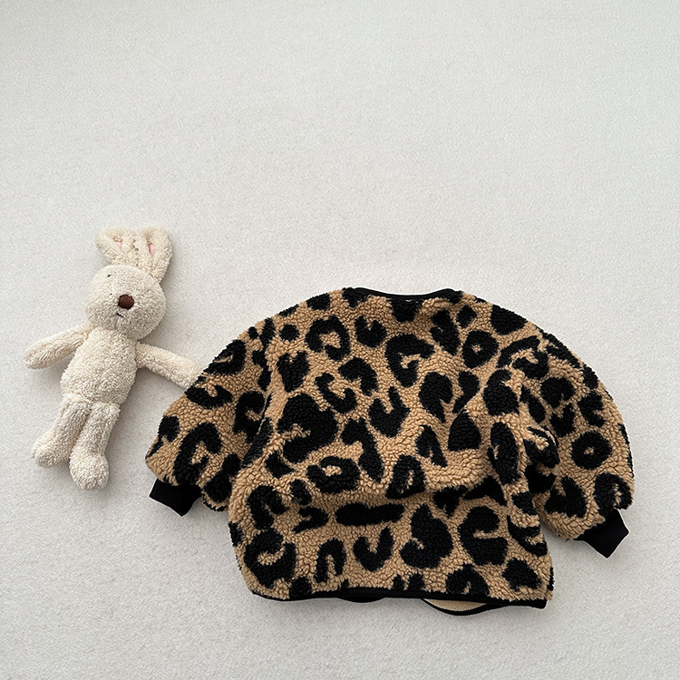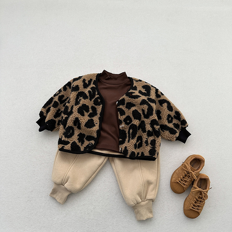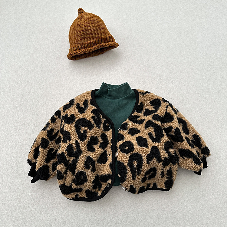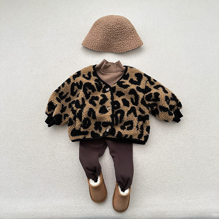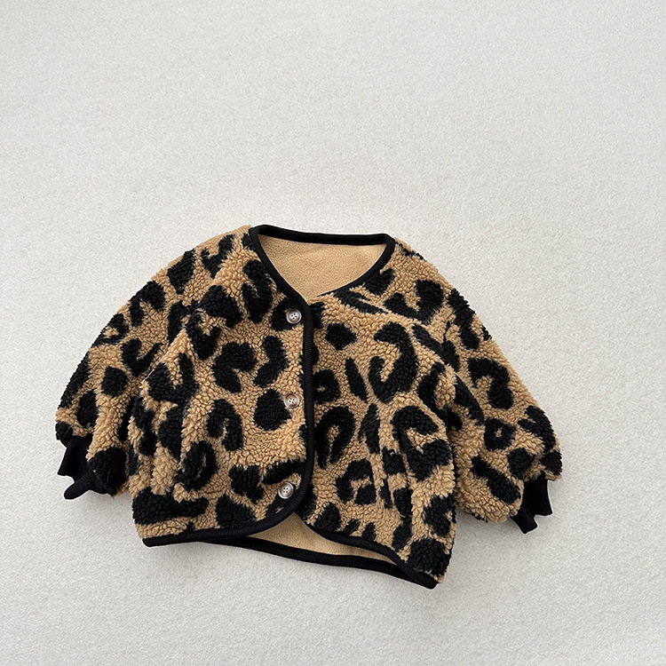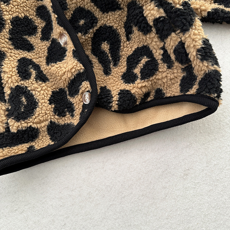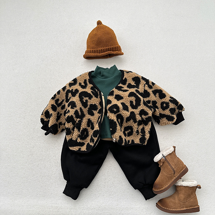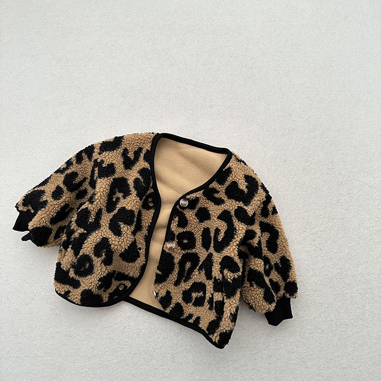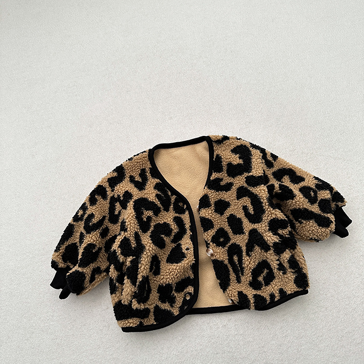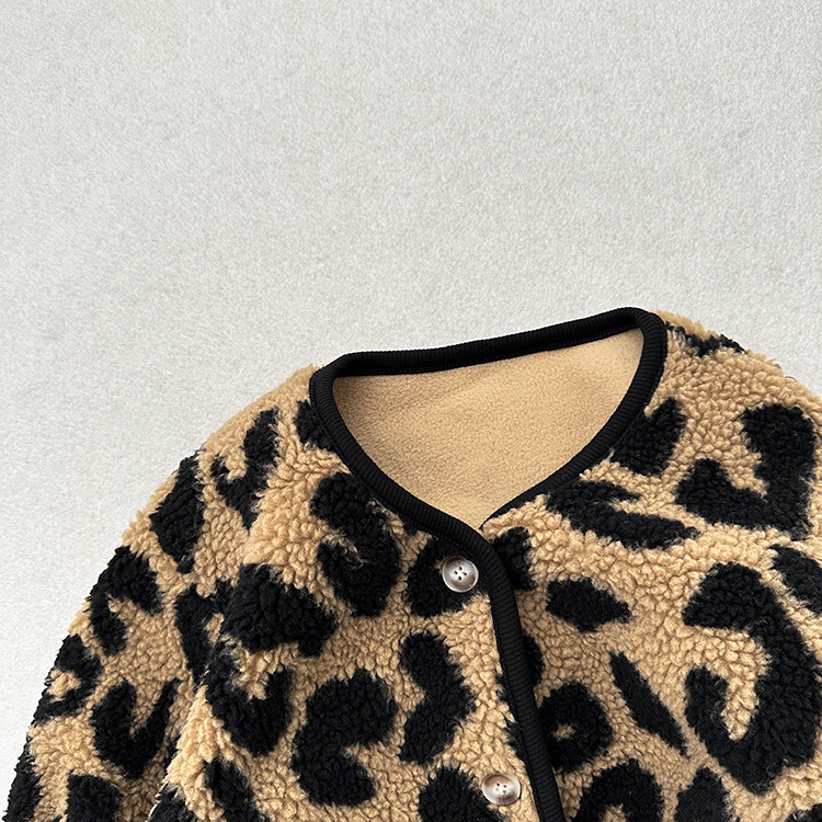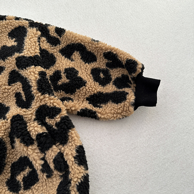 개성 톤 ~ 겨울 스타일 양털 소년과 소녀 어린이를위한 따뜻한 두꺼운 면 옷 복고풍 표범 양고기 양털 재킷