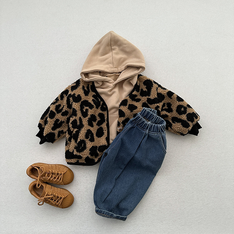 개성 톤 ~ 겨울 스타일 양털 소년과 소녀 어린이를위한 따뜻한 두꺼운 면 옷 복고풍 표범 양고기 양털 재킷스토어 가기