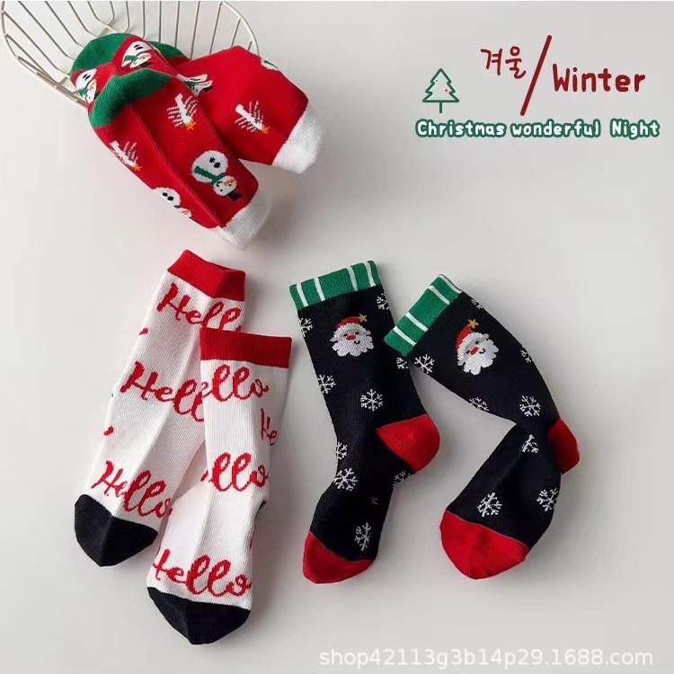 새로운 겨울 소년과 소녀 큰 어린이 새해 양말 크리스마스 양말 빨간면 양말 양말 어린이 양말 도매