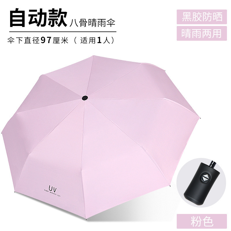 • [블랙 아교 자동 우산] -8 뼈 UV 우산-핑크