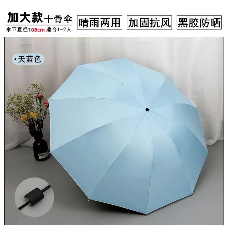 • [블랙 접착제 수동 우산] 업그레이드 10 본 75 플러스 써니 우산-스카이 블루