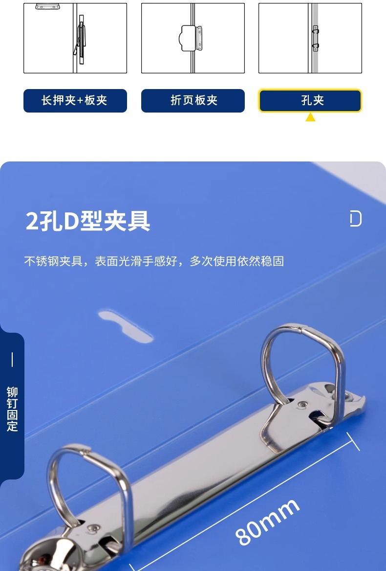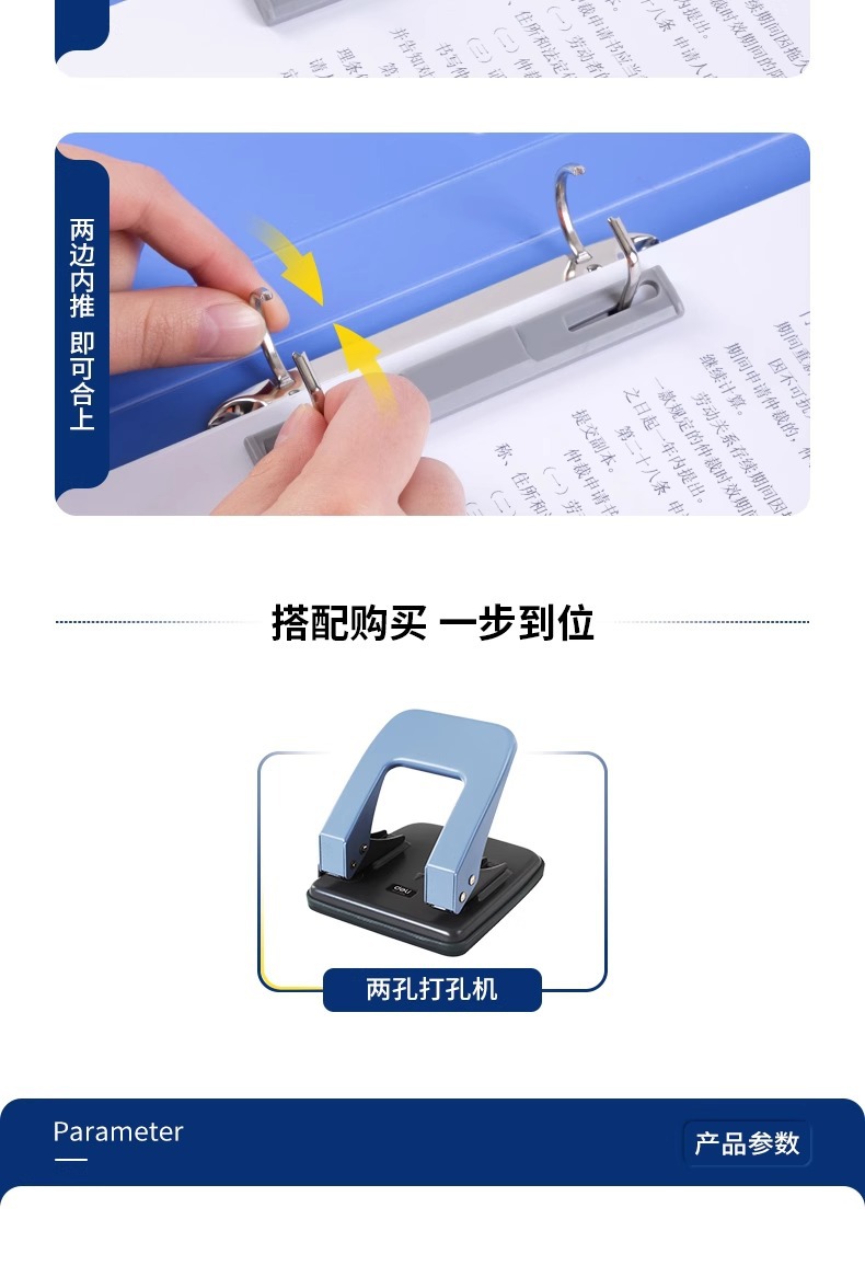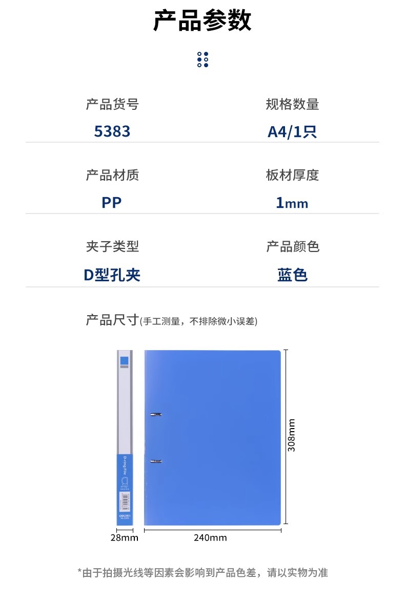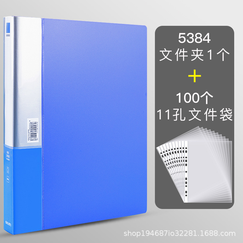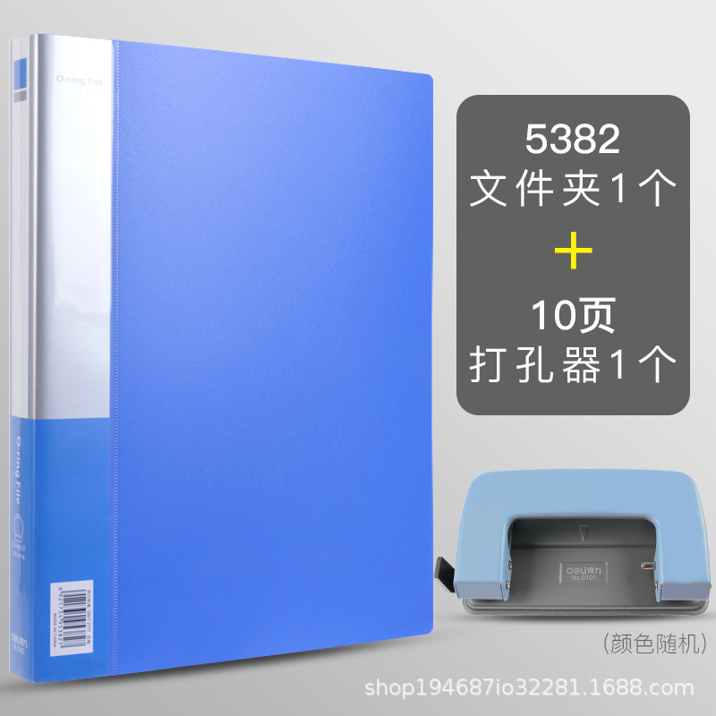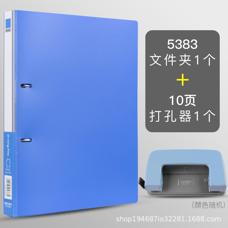델리 5383 폴더 D형 2 홀 폴더 A4 바인더 2 홀 바인딩 이중 홀 펀칭 폴더 사무실 블루