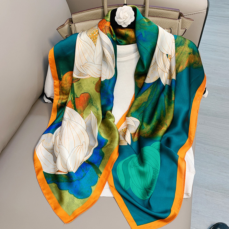 봄과 여름 새로운 여성용 초대형 우아한 실크 스카프 모든 매치 해변 패션 자외선 차단제 대형 숄 비치 타올