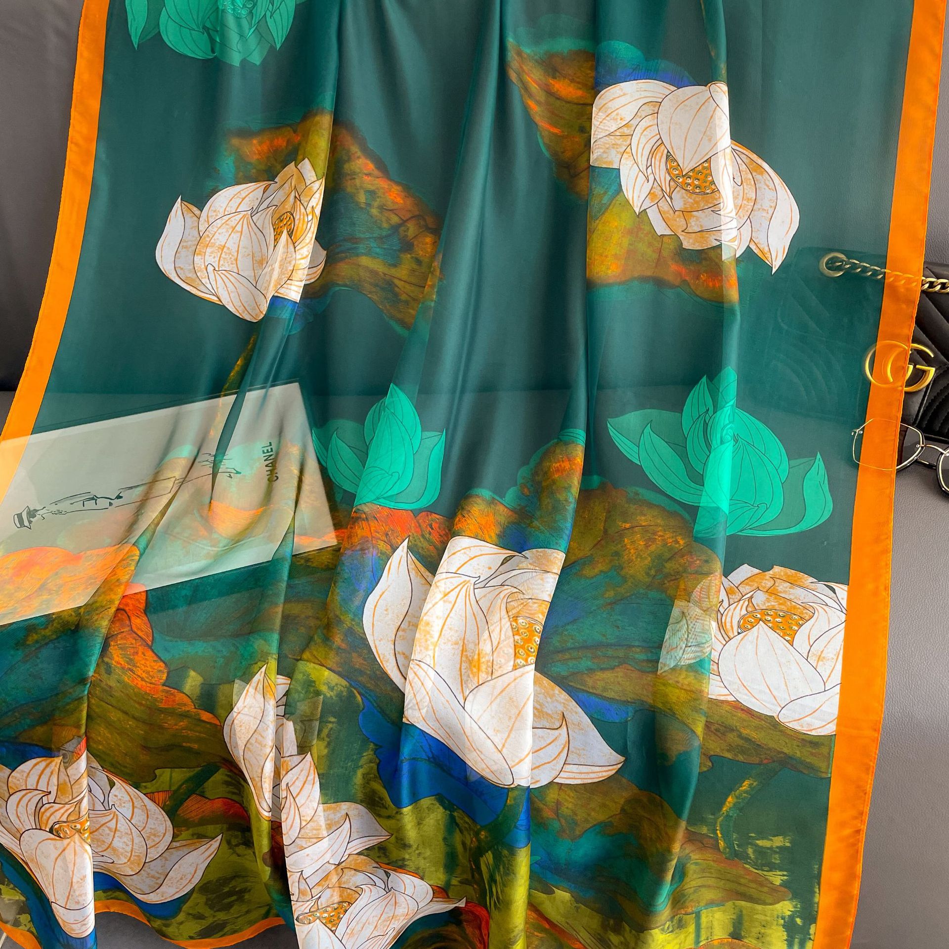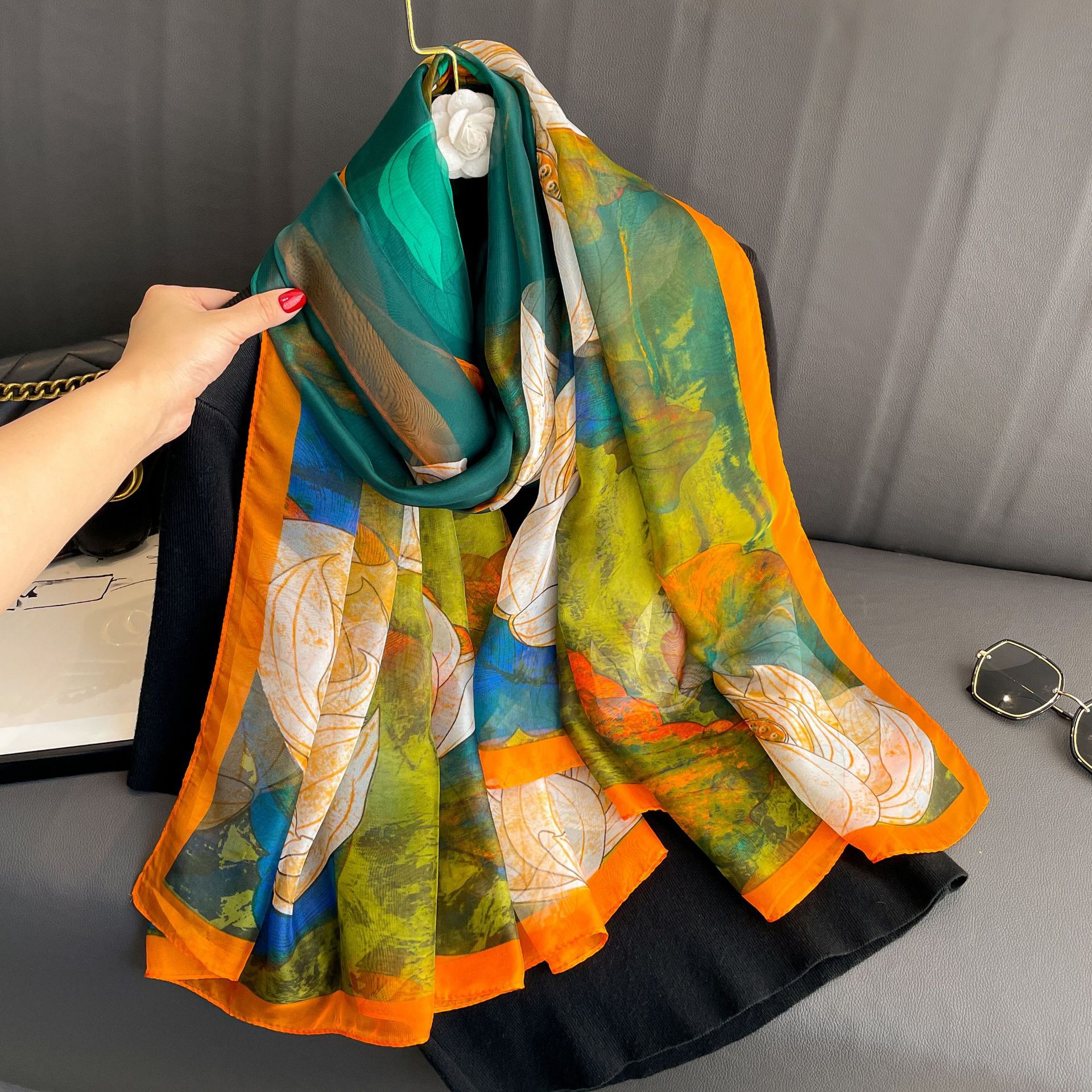 봄과 여름 새로운 여성용 초대형 우아한 실크 스카프 모든 매치 해변 패션 자외선 차단제 대형 숄 비치 타올스토어 가기