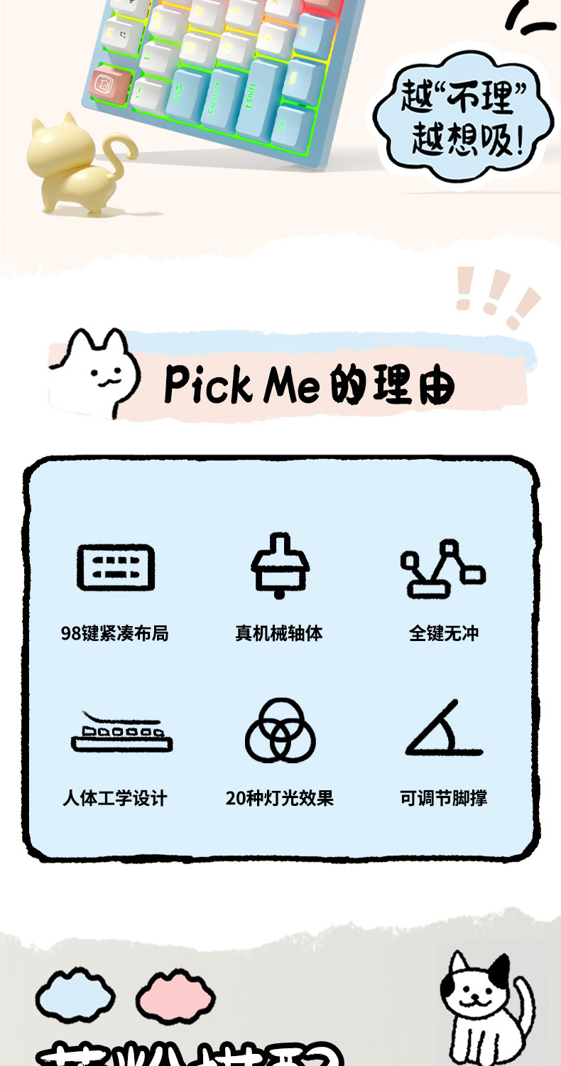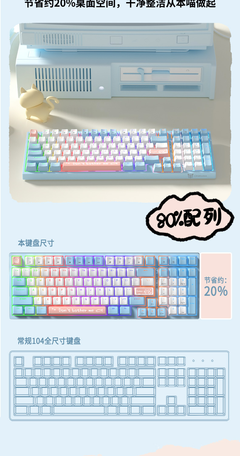 ONIKUMA G38/G52 기계식 키보드 유선 핑크 소녀 82 키 98 키 컴퓨터 게임 전자 게임 발광스토어 가기
