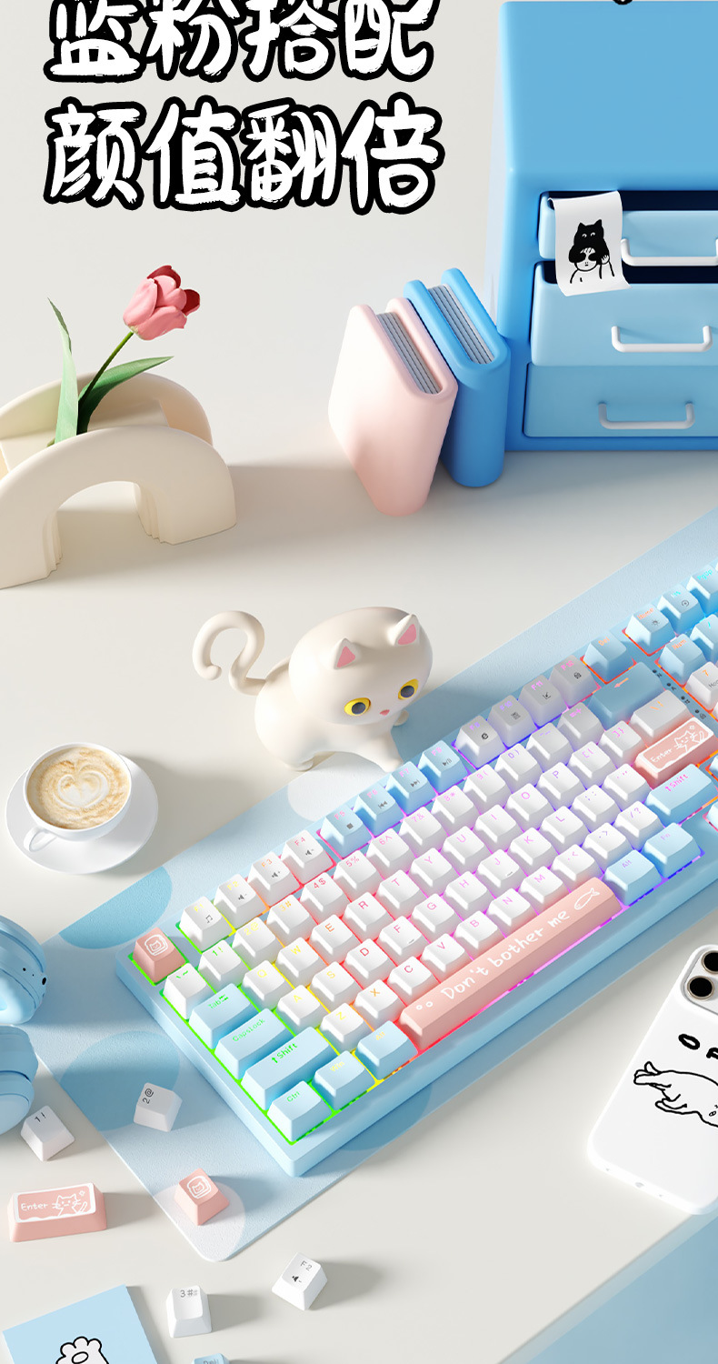 ONIKUMA G38/G52 기계식 키보드 유선 핑크 소녀 82 키 98 키 컴퓨터 게임 전자 게임 발광