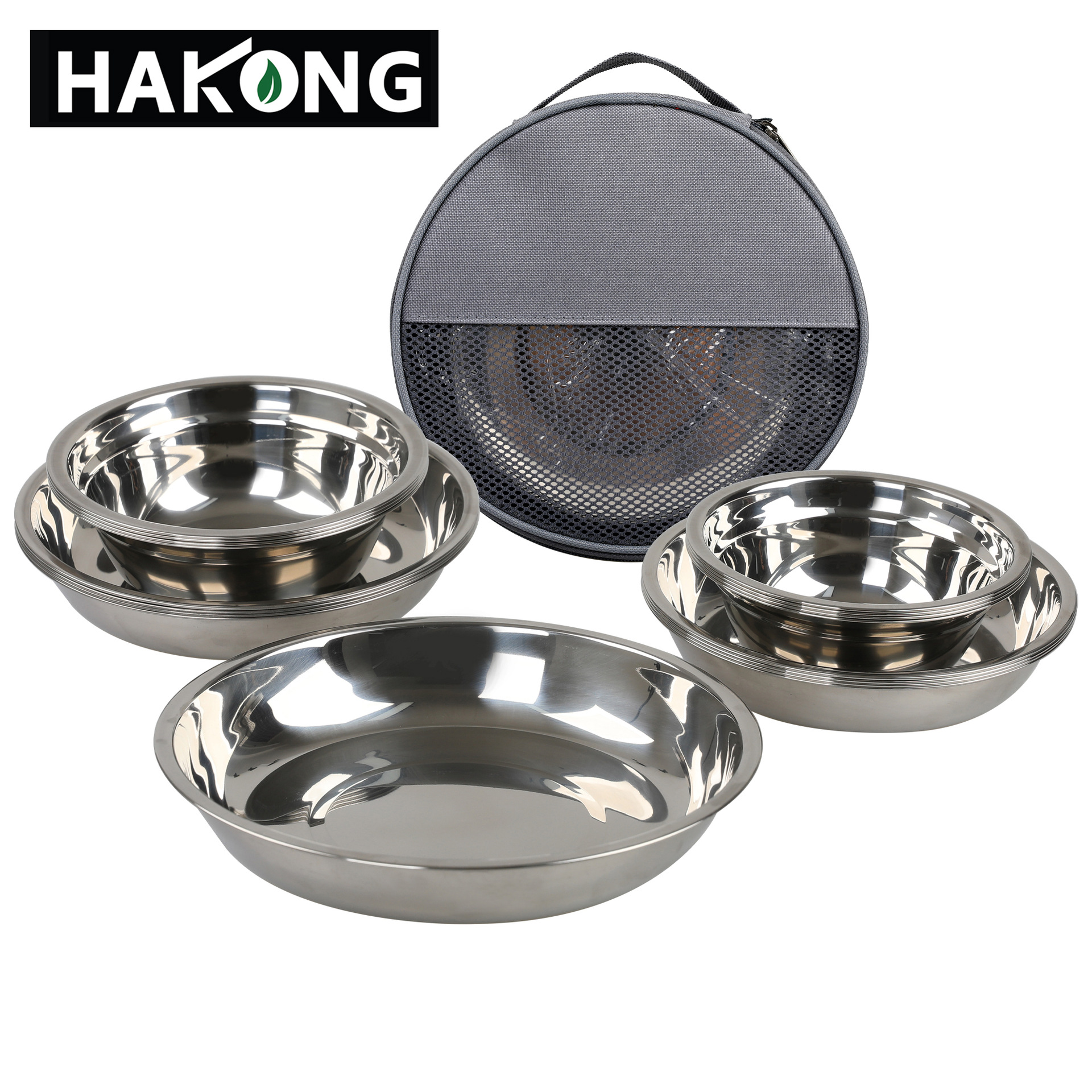야외 캠핑 바베큐 식기 18피스 스테인레스 스틸 디너 플레이트 세트 휴대용 캠핑 바베큐 플레이트 수프 분지 접시 그릇 세트스토어 가기
