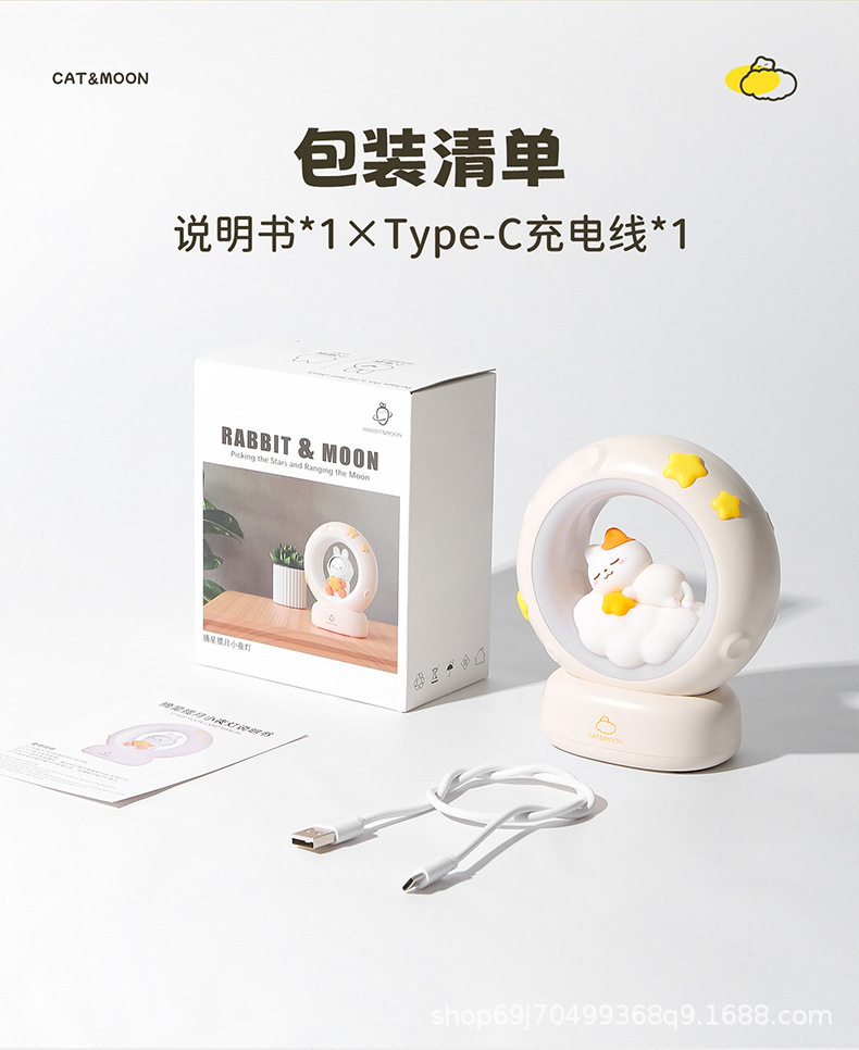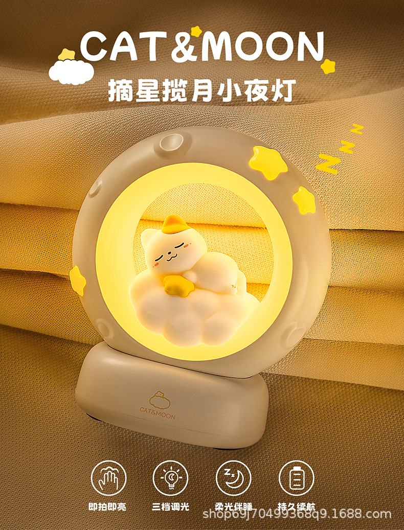 창조적 인 새로운 귀여운 분위기 램프 소녀의 생일 선물 인터넷 축하 장식품 따기 별 따기 및 문 패츠 샤오 마오 나이트 라이트