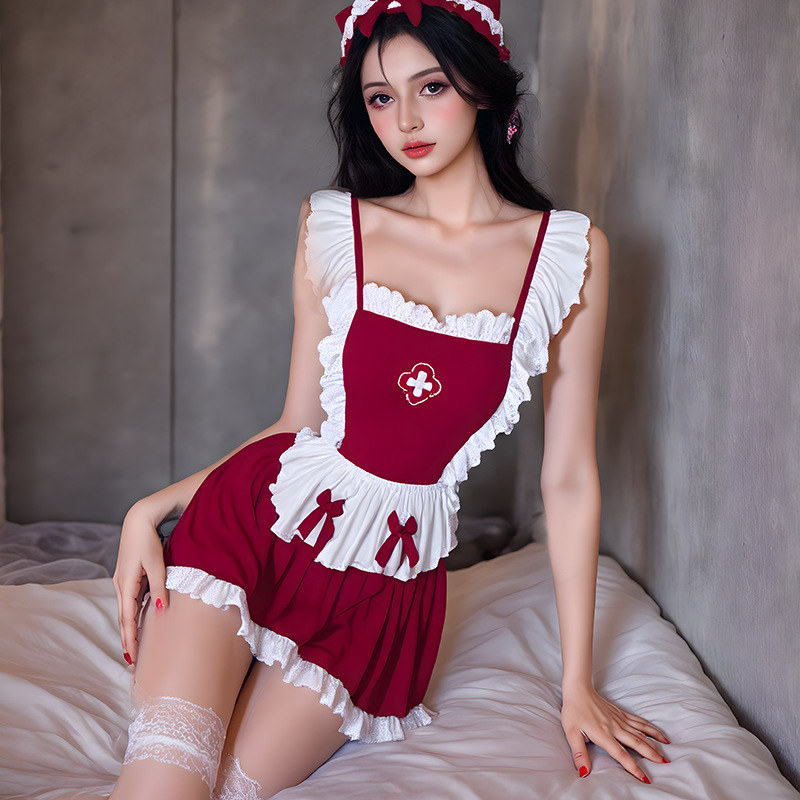섹시한 유니폼 섹시한 유혹 간호사 놀이 세트 속옷 cos 크리스마스 역할 놀이 귀여운 하녀스토어 가기