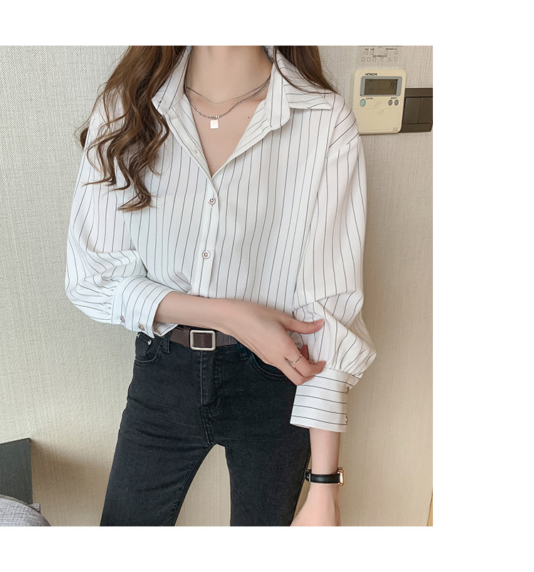 줄무늬 셔츠 여성 디자인 감각 틈새 2023 새로운 봄과 가을 쉬폰 탑 전문 OL 라이트 성숙한 스타일 셔츠스토어 가기