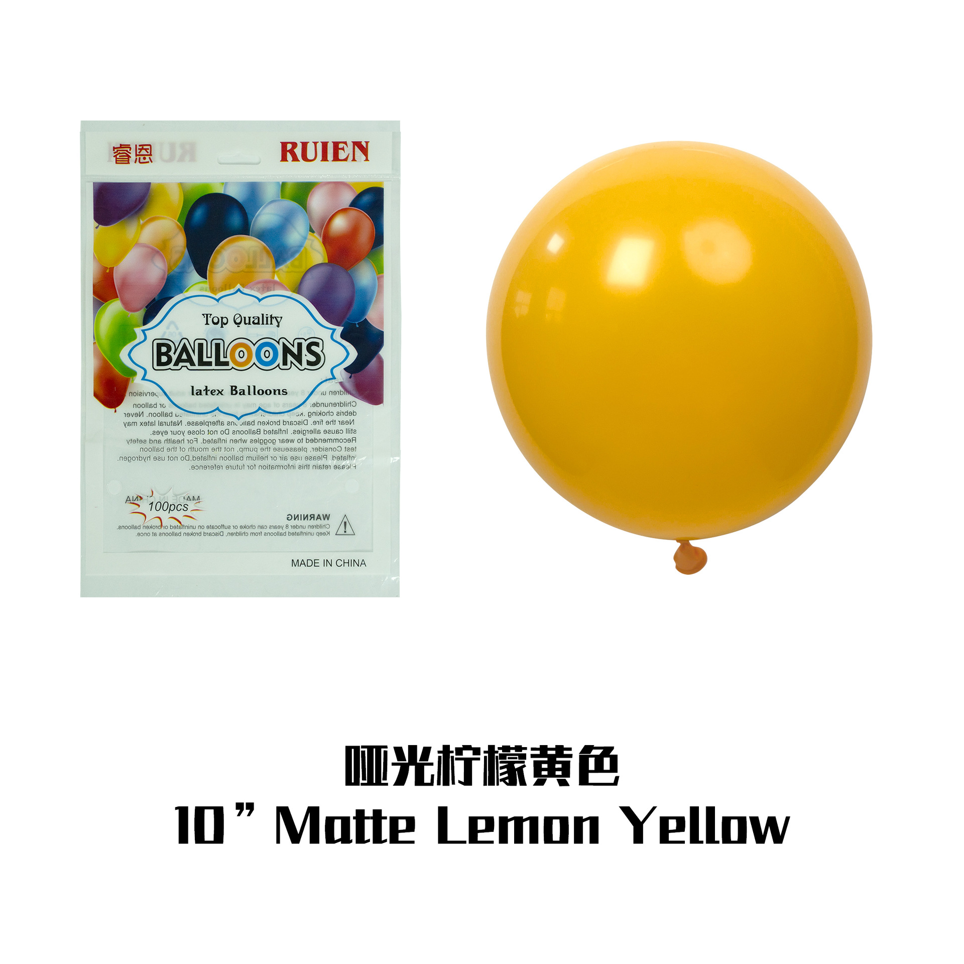• 10인치 2.2g 무광택 노란색(팩당 100개)