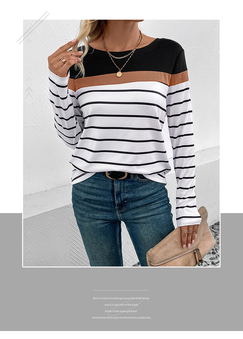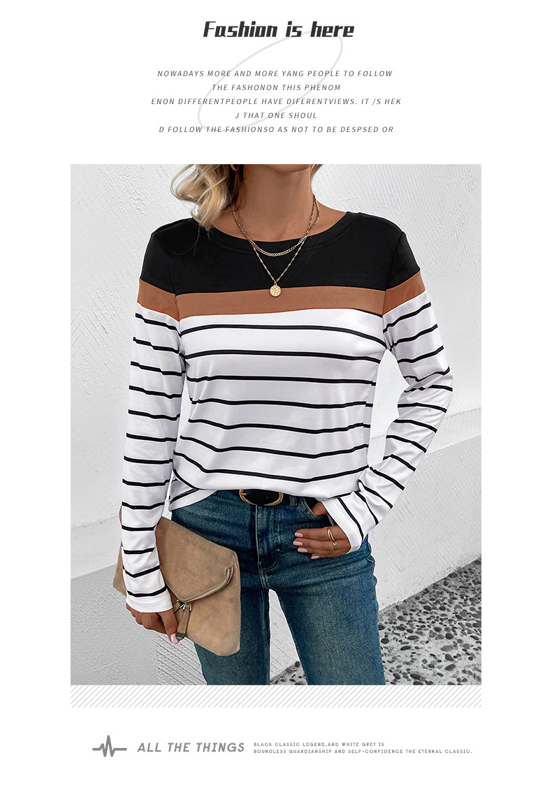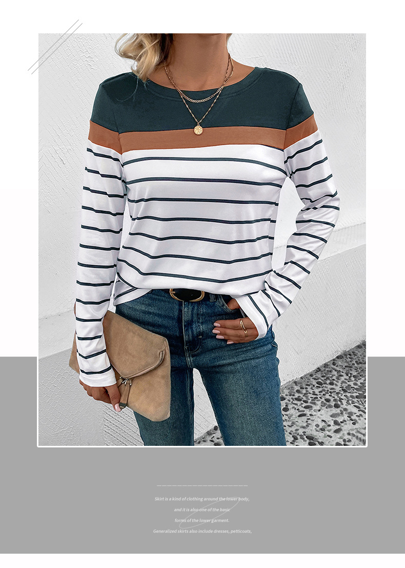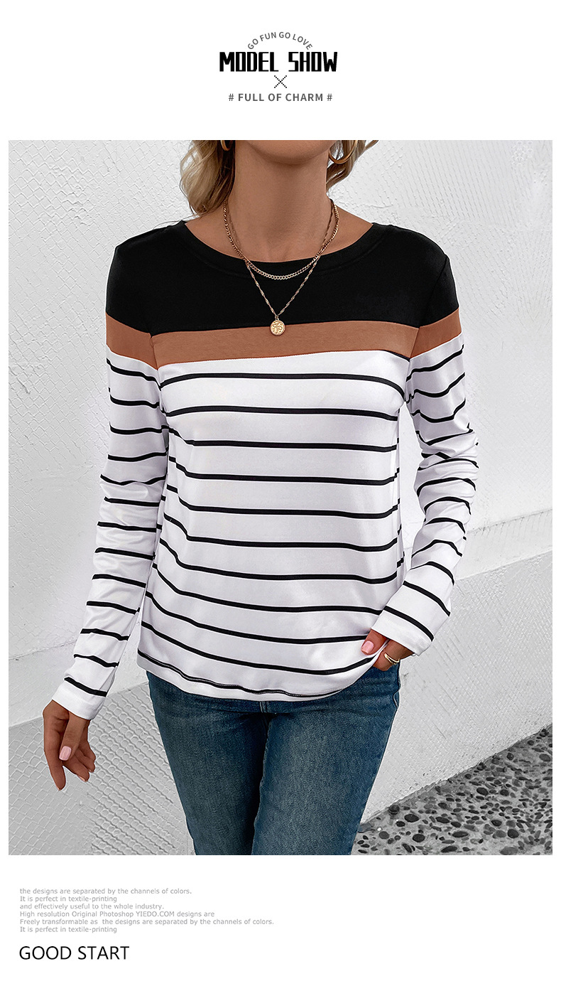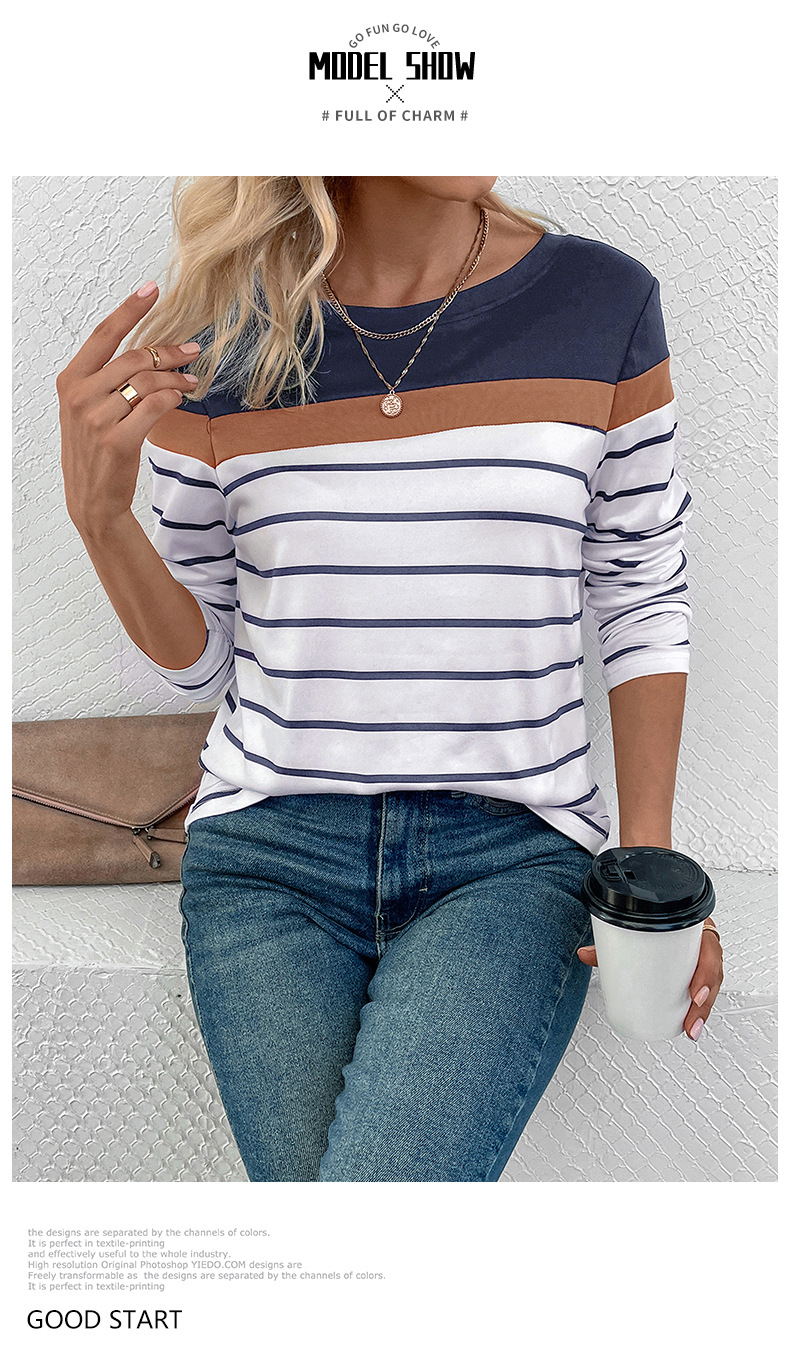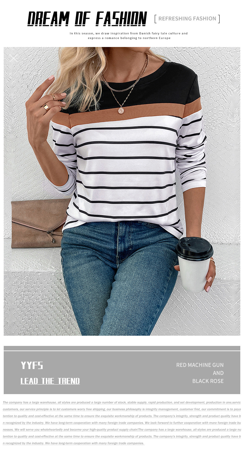Amazon 독립 스테이션 봄과 가을 인기 멀티 컬러 크로스보더 유럽과 미국 캐주얼 심플 긴팔 스트라이프 티셔츠 여성용 이너웨어