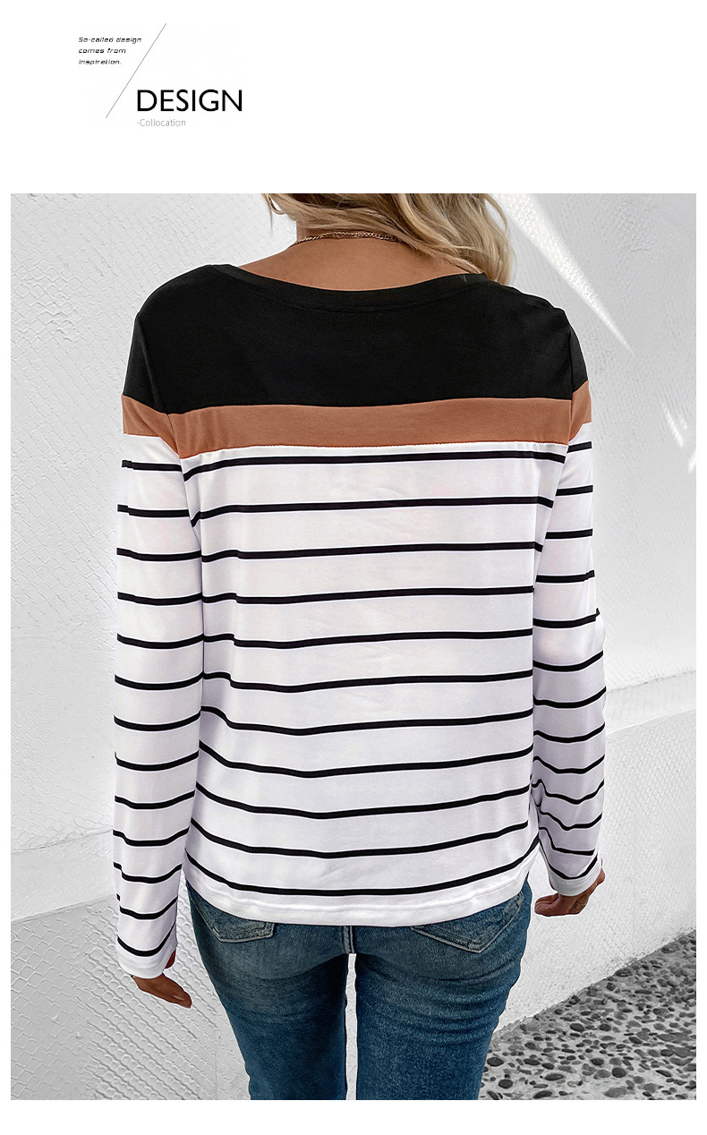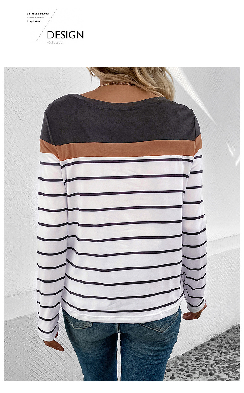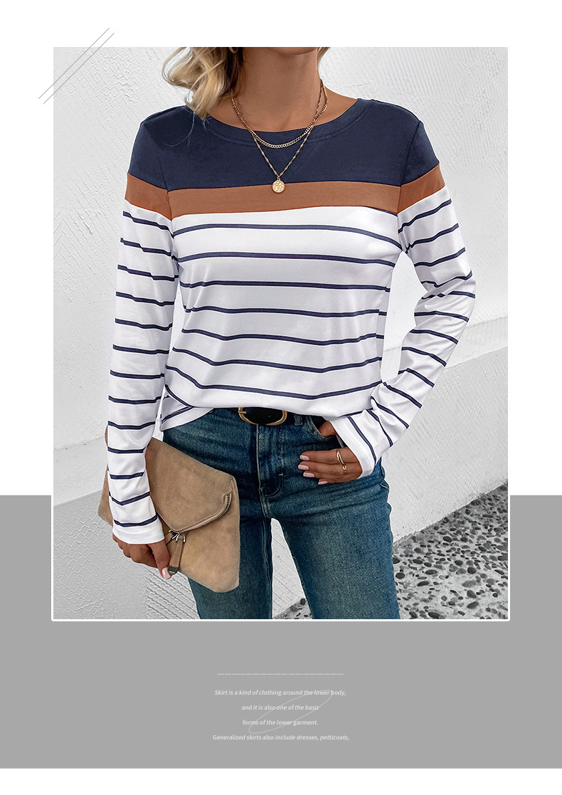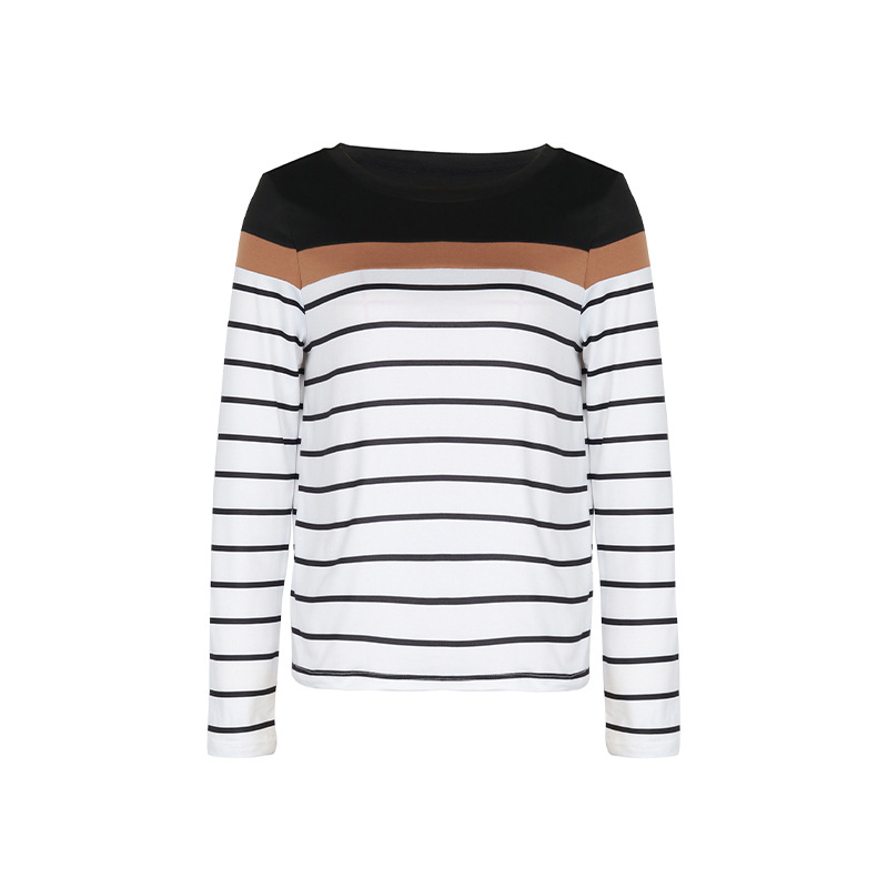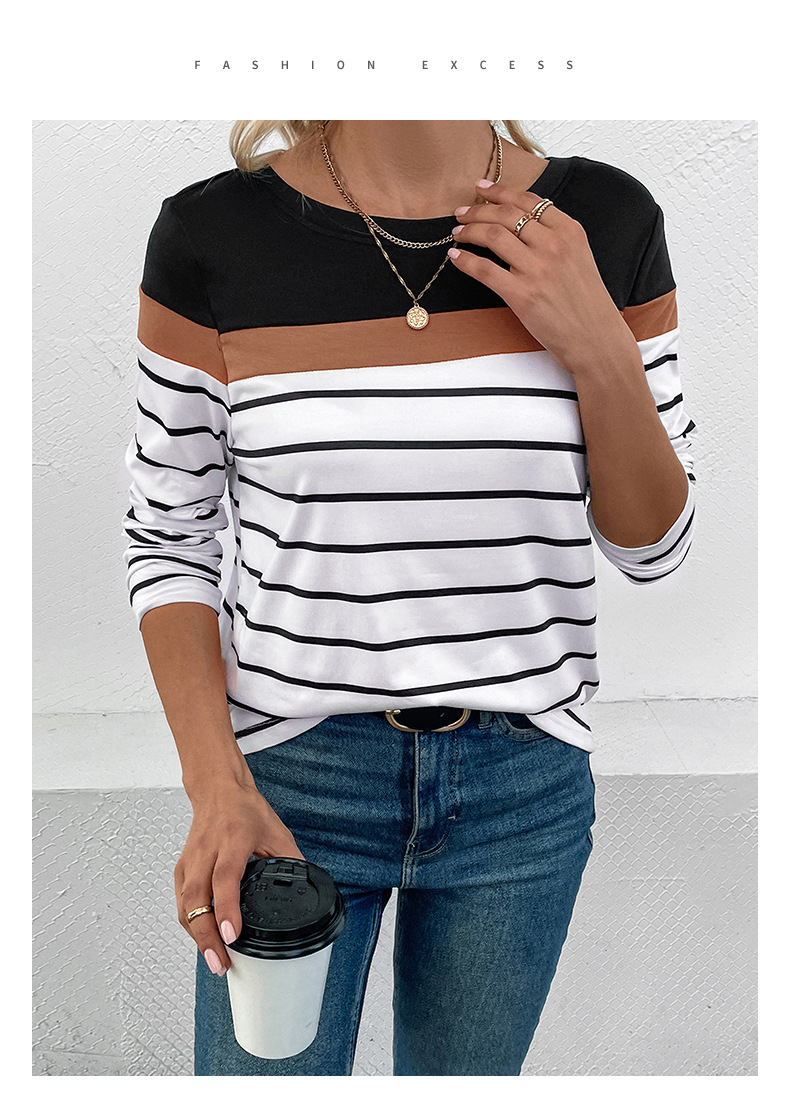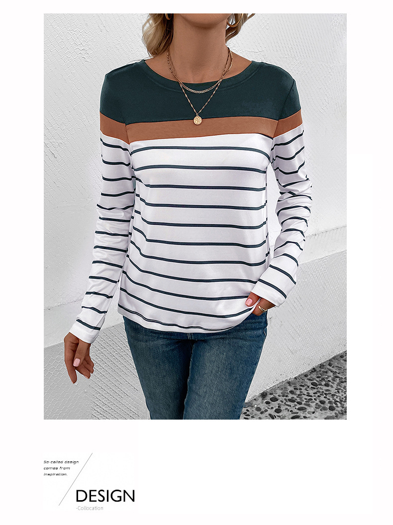 Amazon 독립 스테이션 봄과 가을 인기 멀티 컬러 크로스보더 유럽과 미국 캐주얼 심플 긴팔 스트라이프 티셔츠 여성용 이너웨어