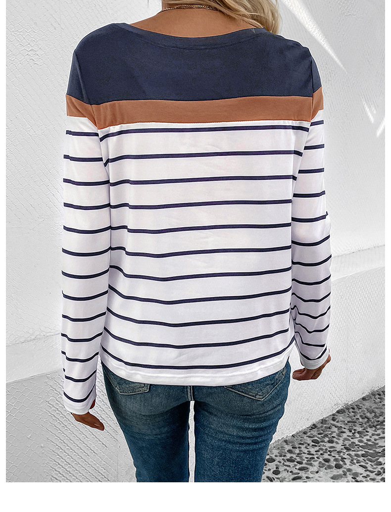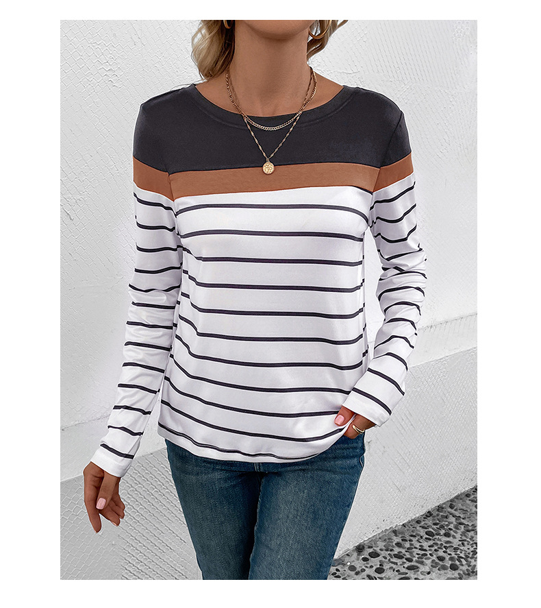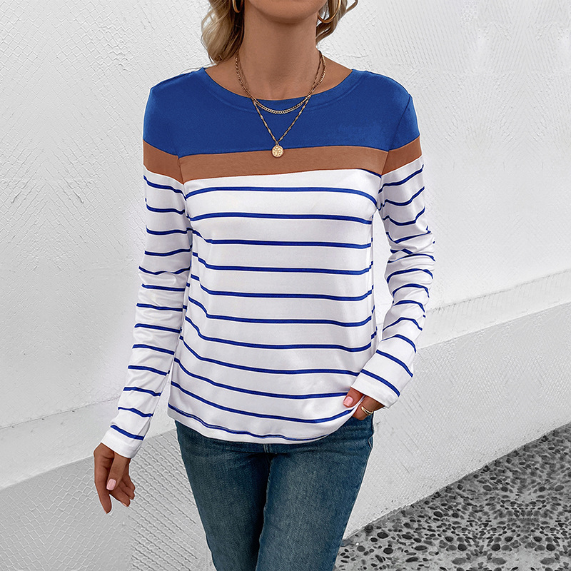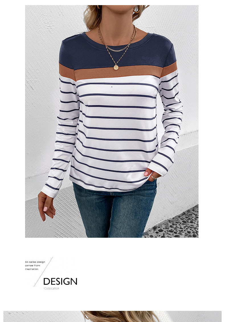Amazon 독립 스테이션 봄과 가을 인기 멀티 컬러 크로스보더 유럽과 미국 캐주얼 심플 긴팔 스트라이프 티셔츠 여성용 이너웨어스토어 가기