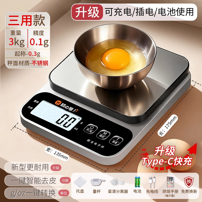 • 충전식 모델 3kg/0.1g [백라이트, 충전 케이블 + 트레이 포함]