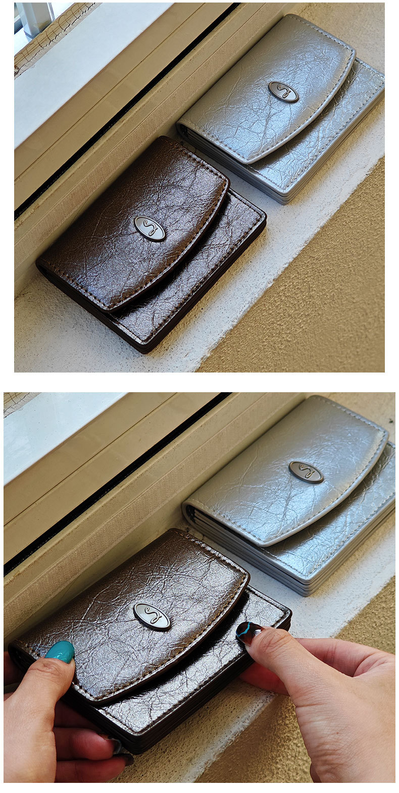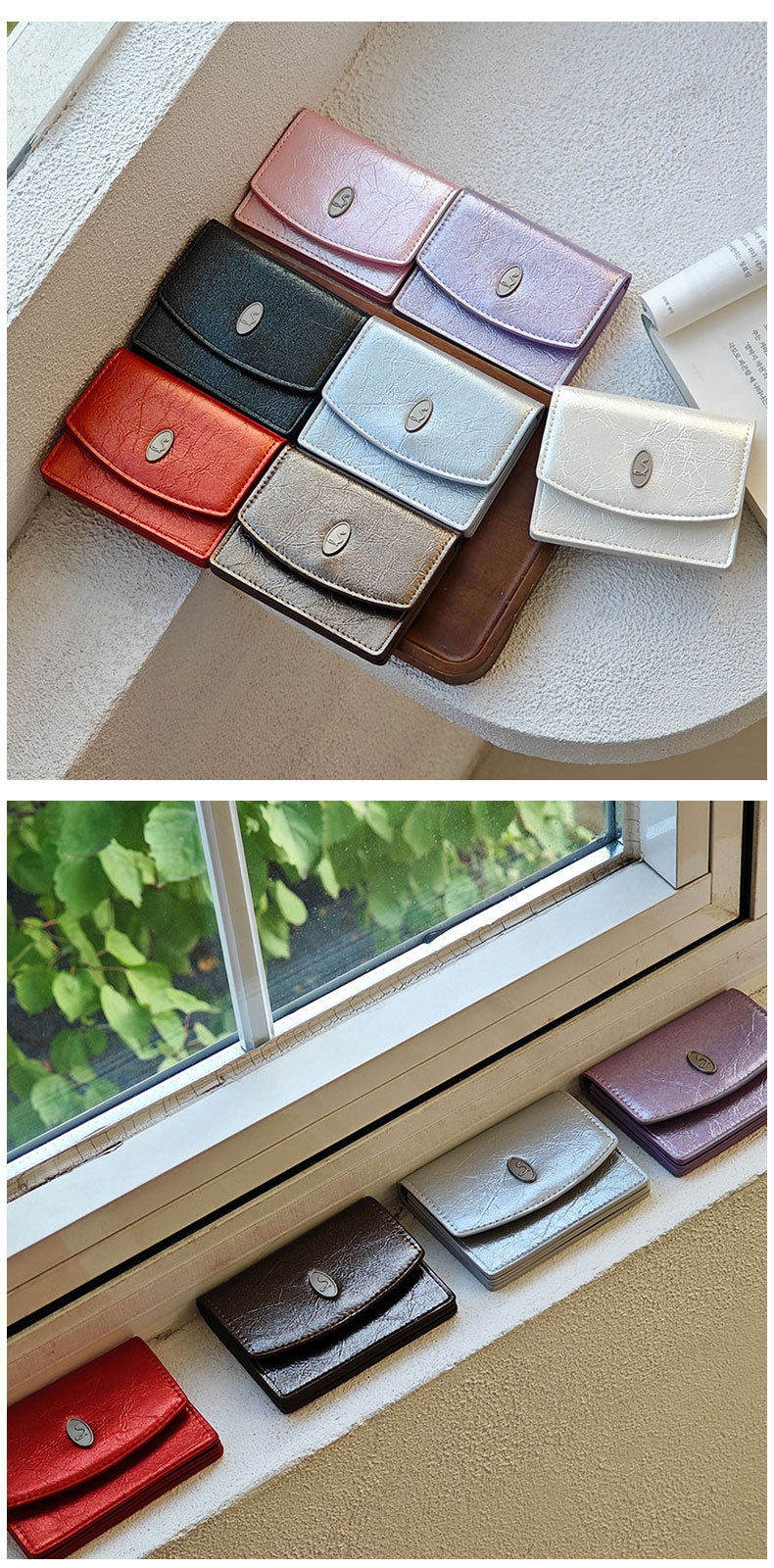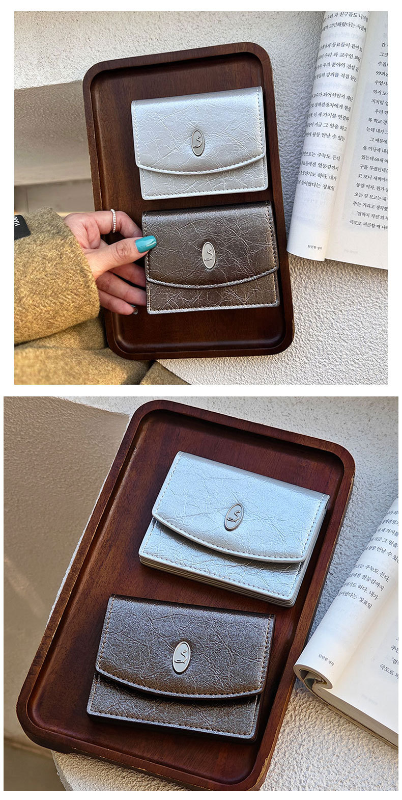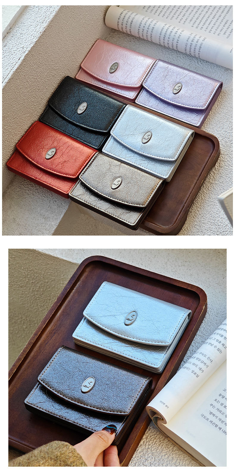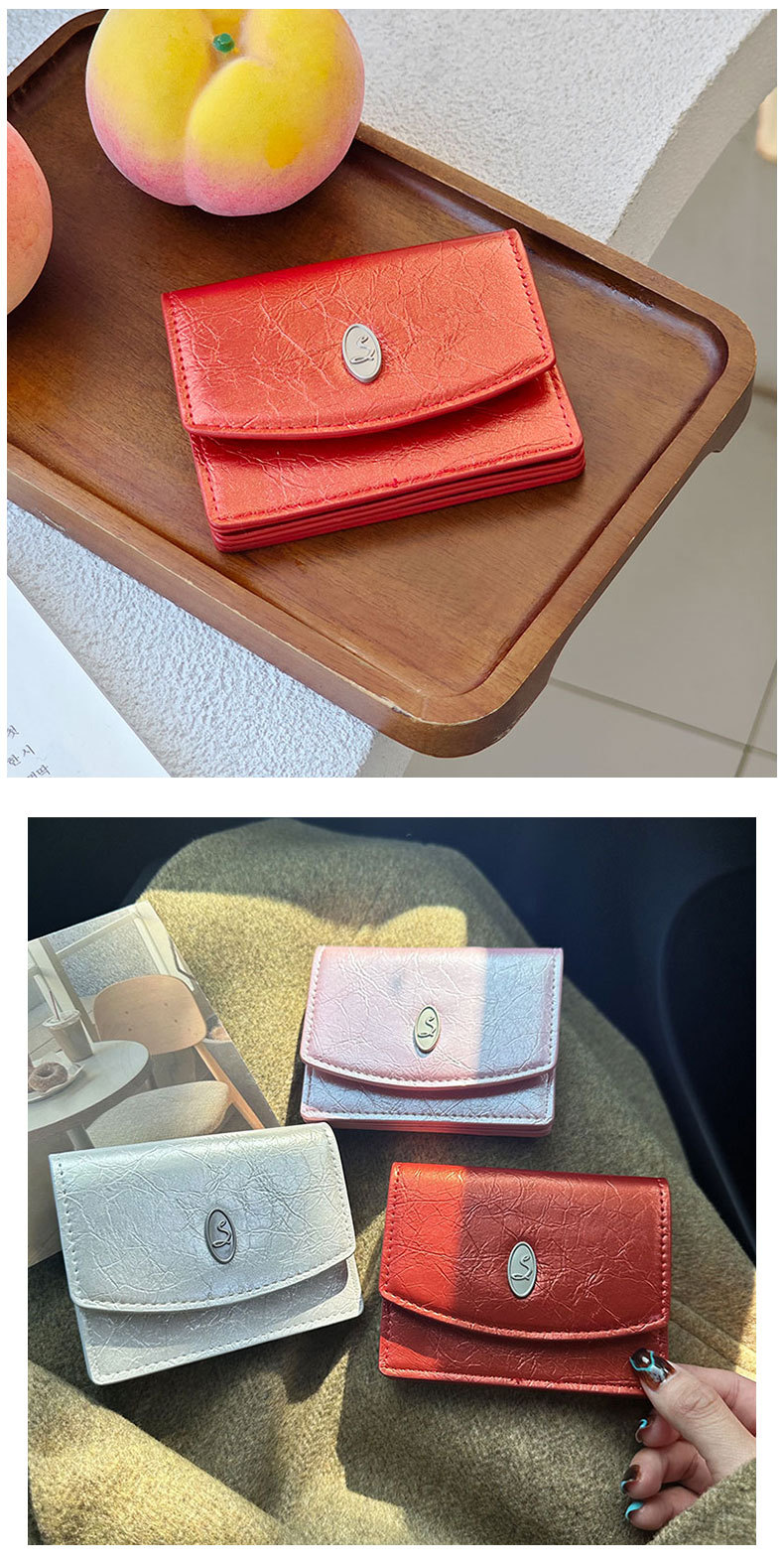 한국 INS 작은 스타일 여성의 간단한 지갑 카드 가방 멀티 컬러 균열 미니멀리스트 대용량 고급 지갑 재고스토어 가기