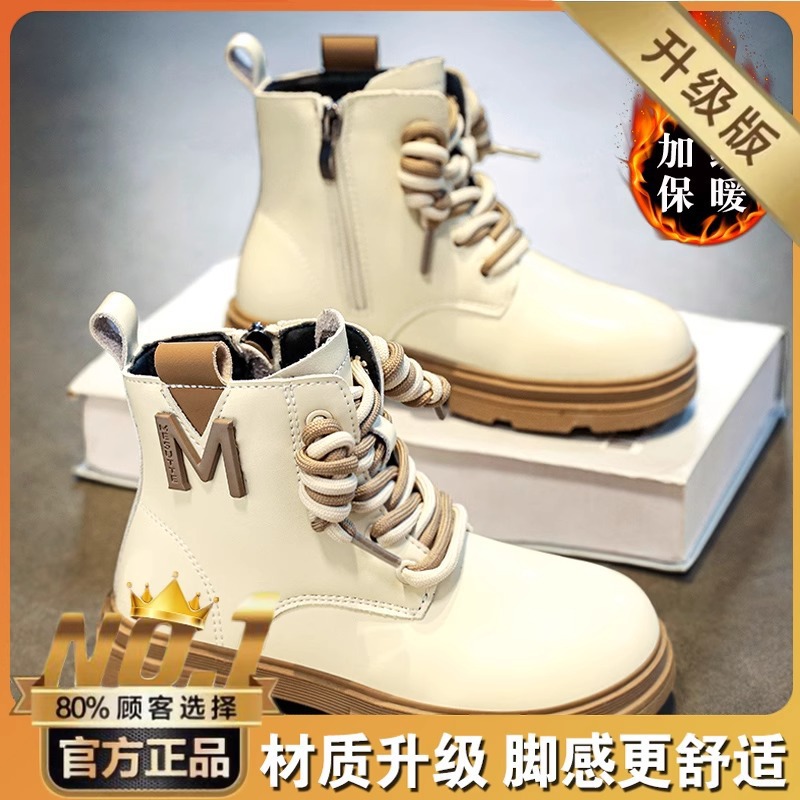 소녀 부츠 가을과 겨울 새로운 어린이 가죽 부츠 블랙 마틴 부츠 큰 어린이 소녀 기모 따뜻한 Xuheng 어린이 공장스토어 가기