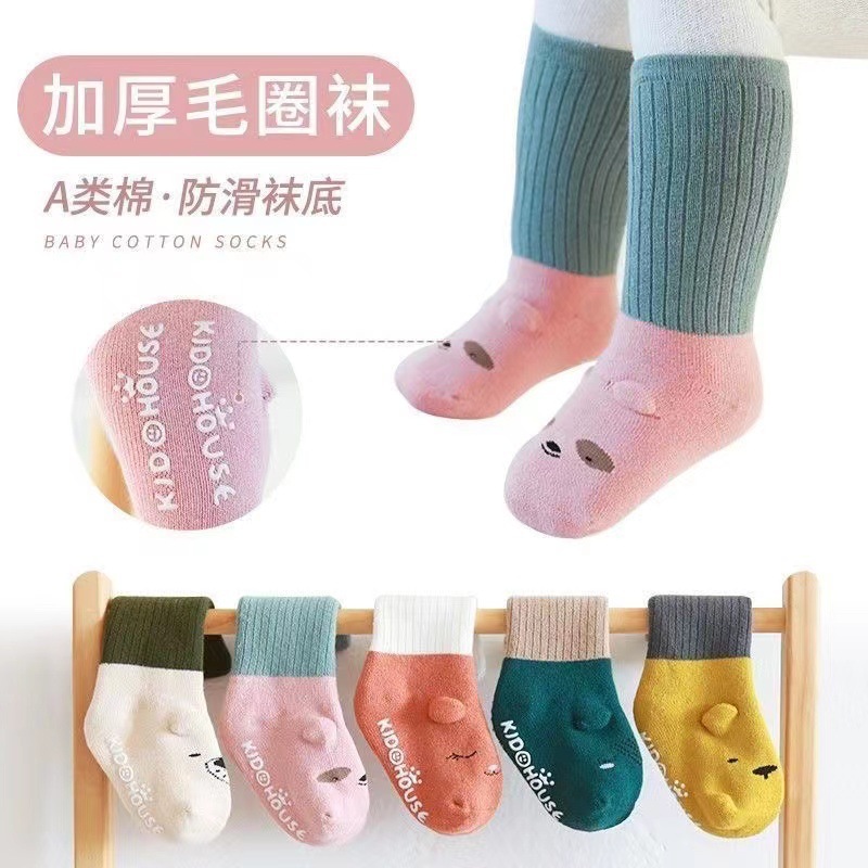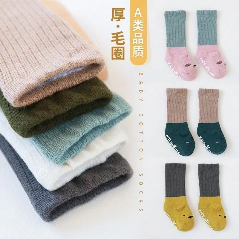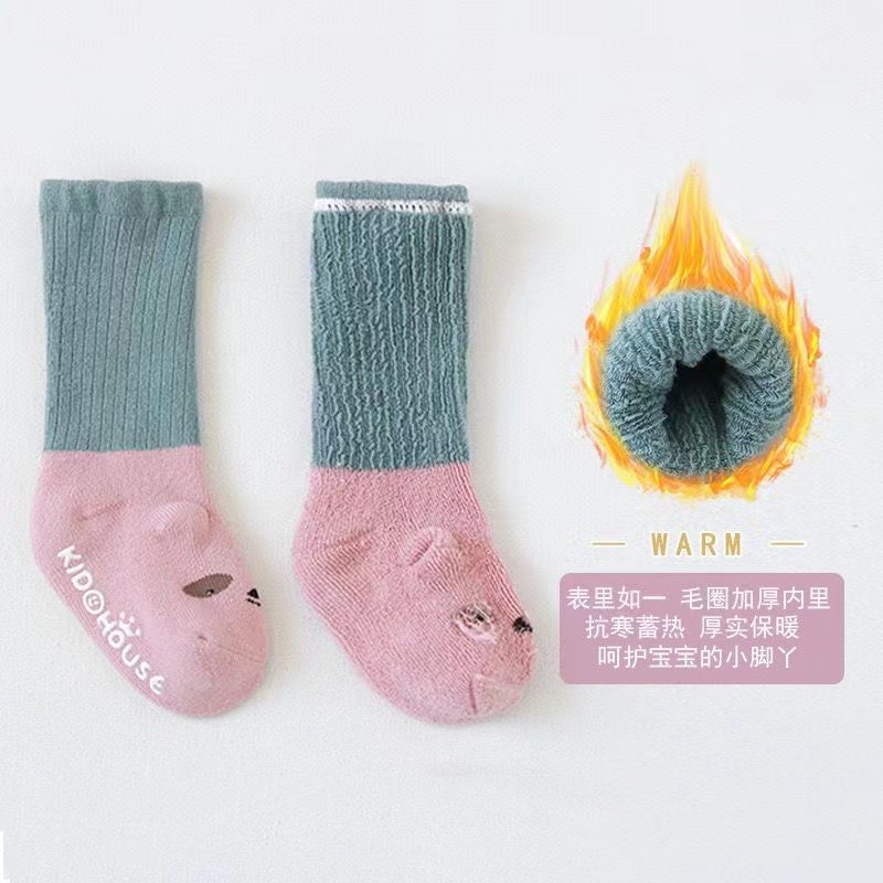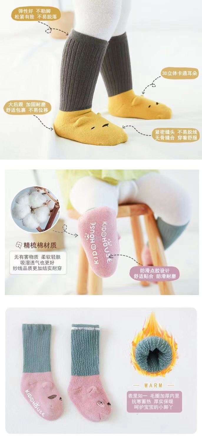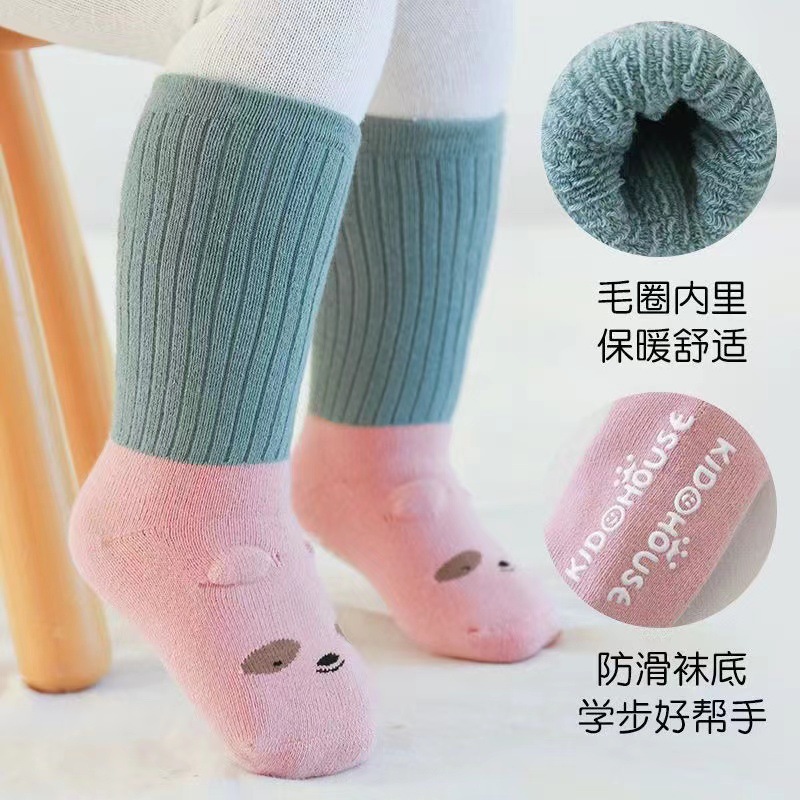 아기 겨울 양말 아기 두꺼운 따뜻한 미끄럼 방지 양말 뼈없는 양말 귀여운 어린이 가을과 겨울 중간 길이 스타킹스토어 가기