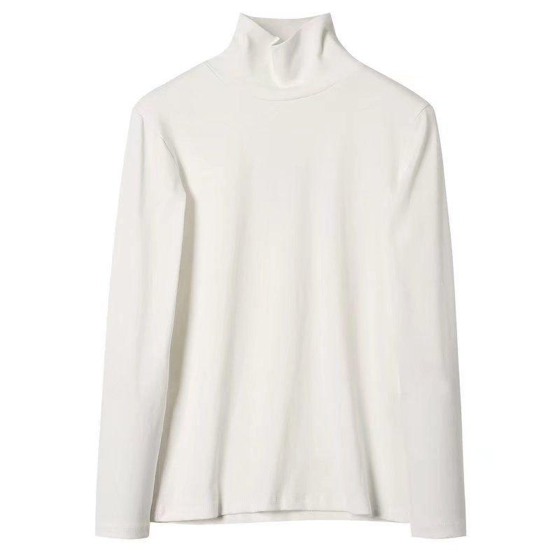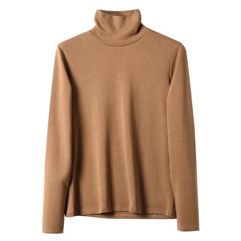 여성 의류 부드러운 스트레치 코튼 투 라펠 티셔츠 긴 소매 하이 넥 바닥 셔츠 겨울 탑 Y439063 449864
