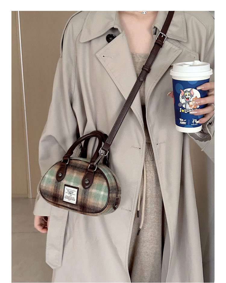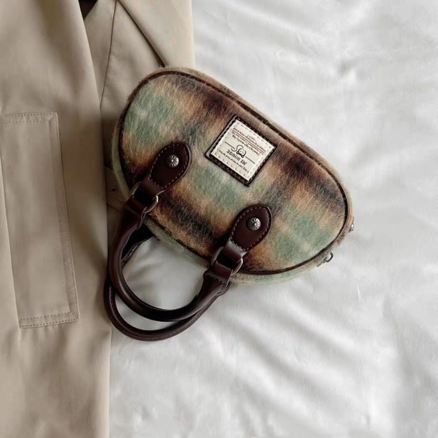 도매 울 격자 무늬 빈티지 틈새 볼링 가방 여성의 고급 메신저 가방 작은 가방 핸드백