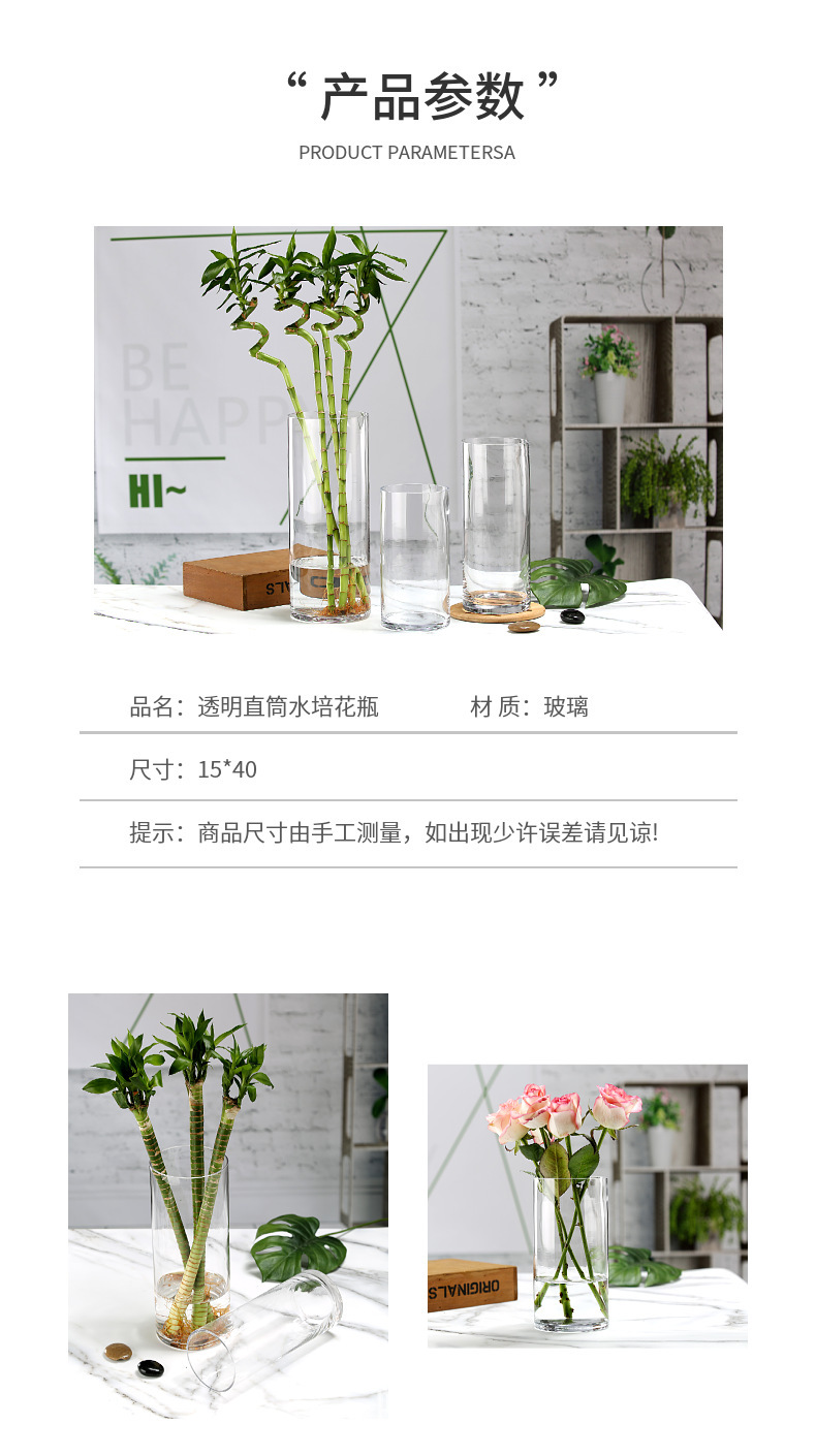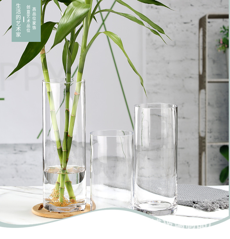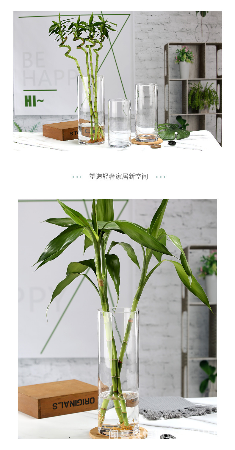 대형 직선 유리 꽃병 투명 거실 수경 물 제기 눈 버드 나무 말 술취한 나무 풍부한 대나무 고급 꽃꽂이 장식품스토어 가기