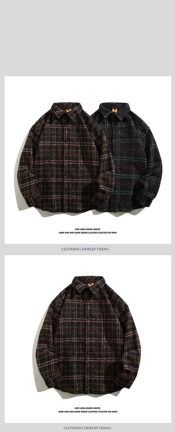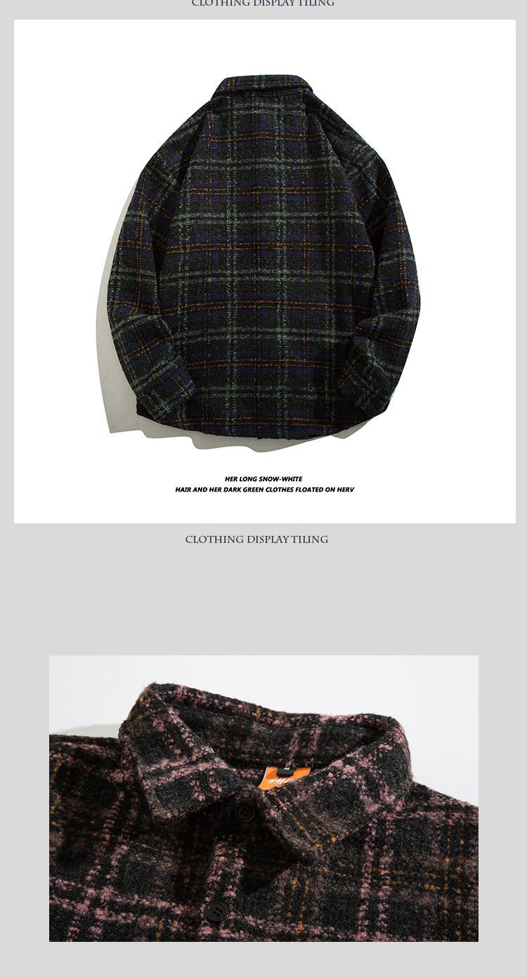 일본 스타일 복고풍 모직 트렌디 브랜드 격자 무늬 셔츠 남성용 긴팔 가을과 겨울 한국 스타일 트렌디 커플 만능 캐주얼 재킷스토어 가기