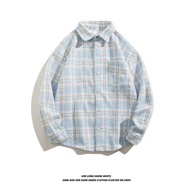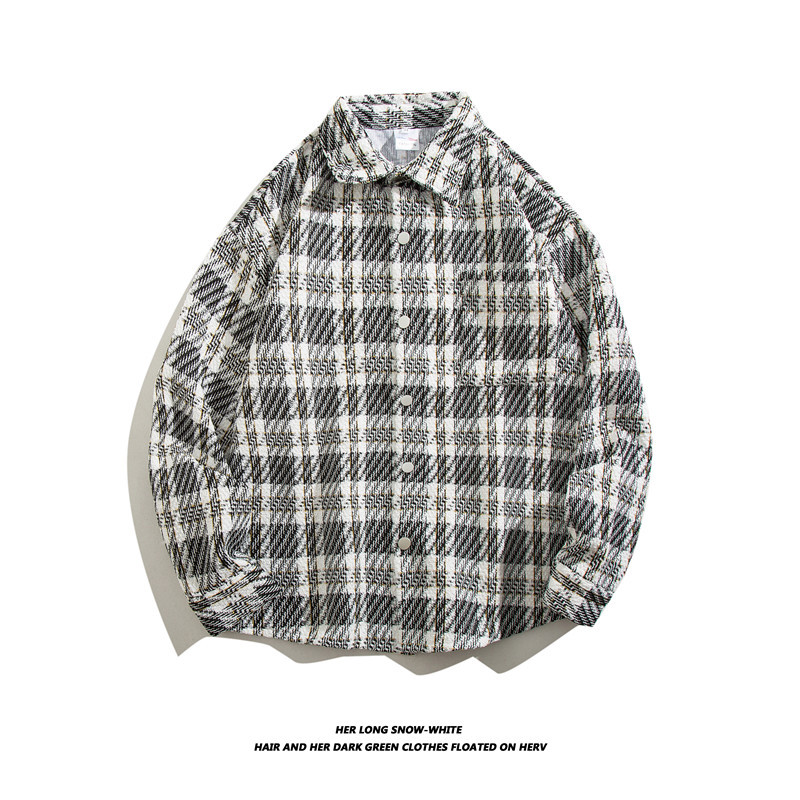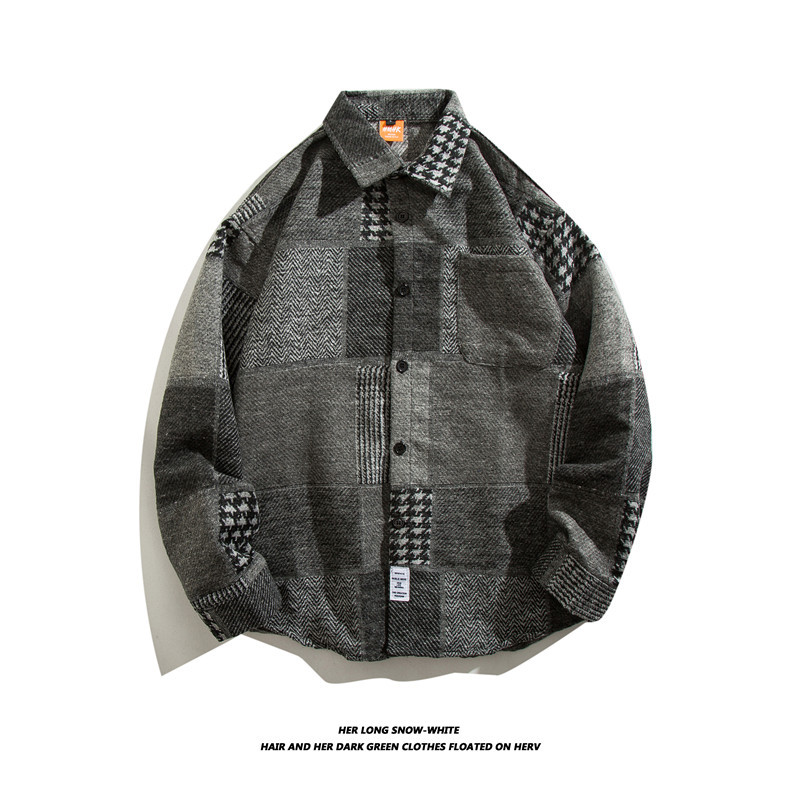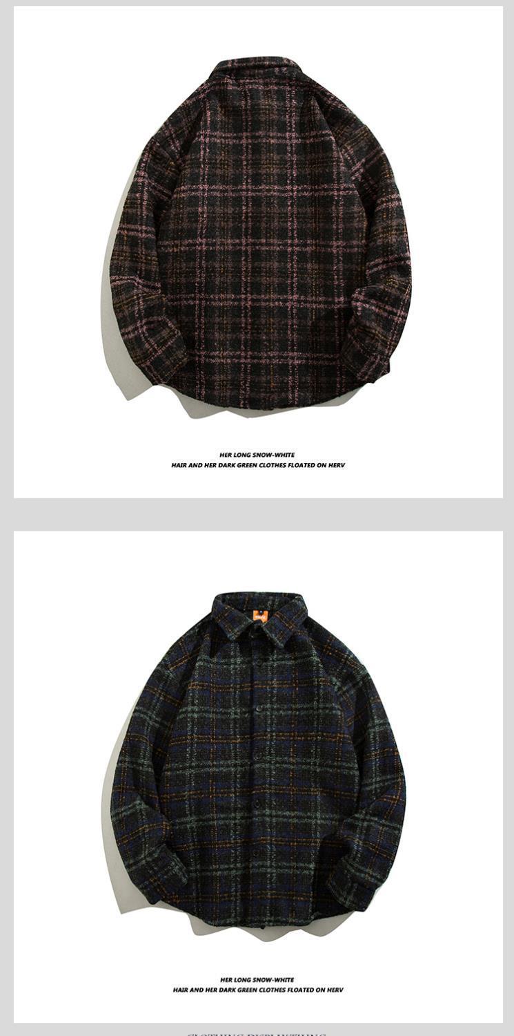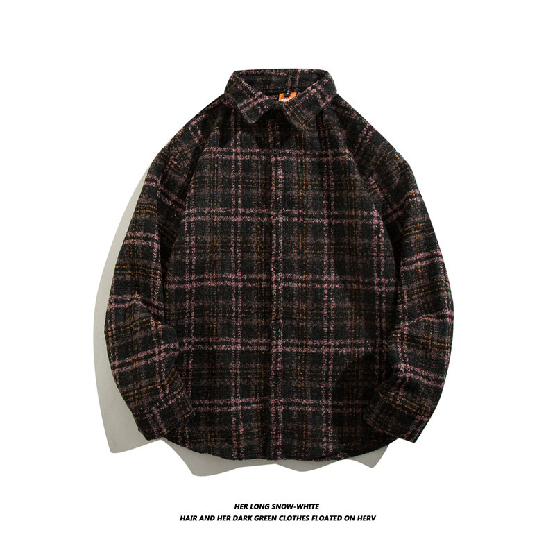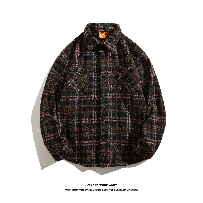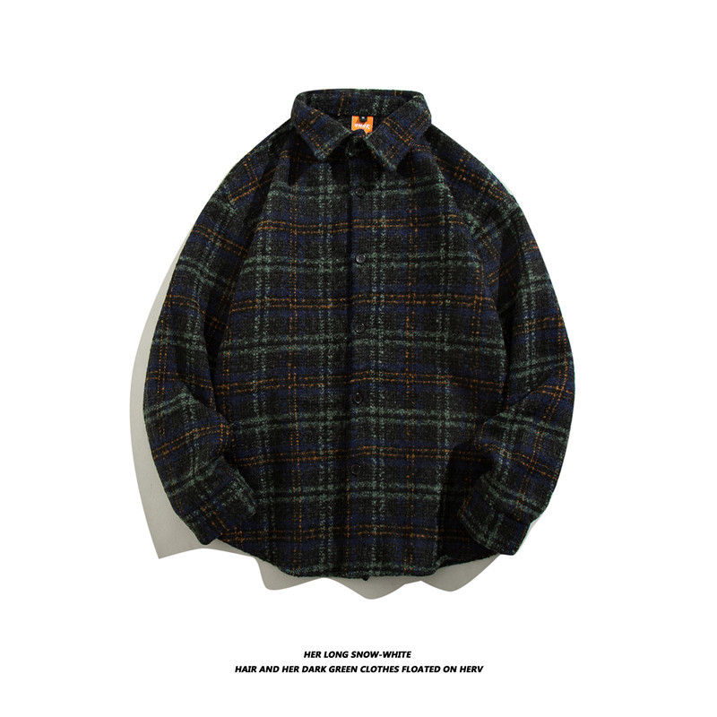 일본 스타일 복고풍 모직 트렌디 브랜드 격자 무늬 셔츠 남성용 긴팔 가을과 겨울 한국 스타일 트렌디 커플 만능 캐주얼 재킷