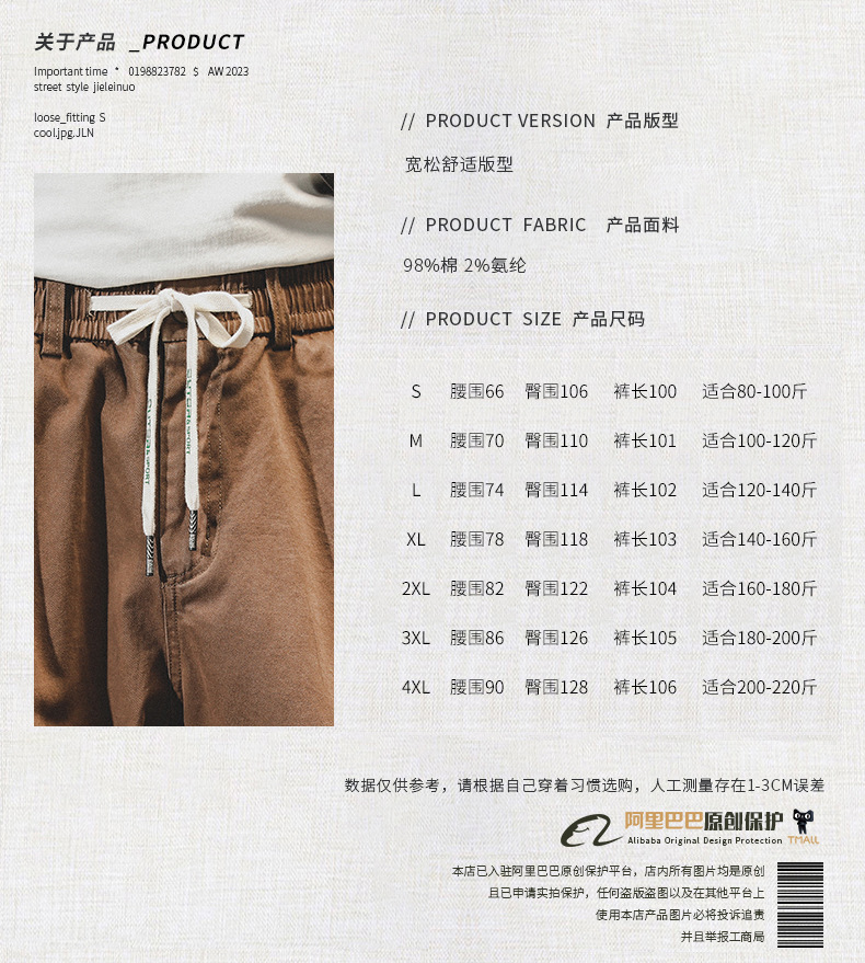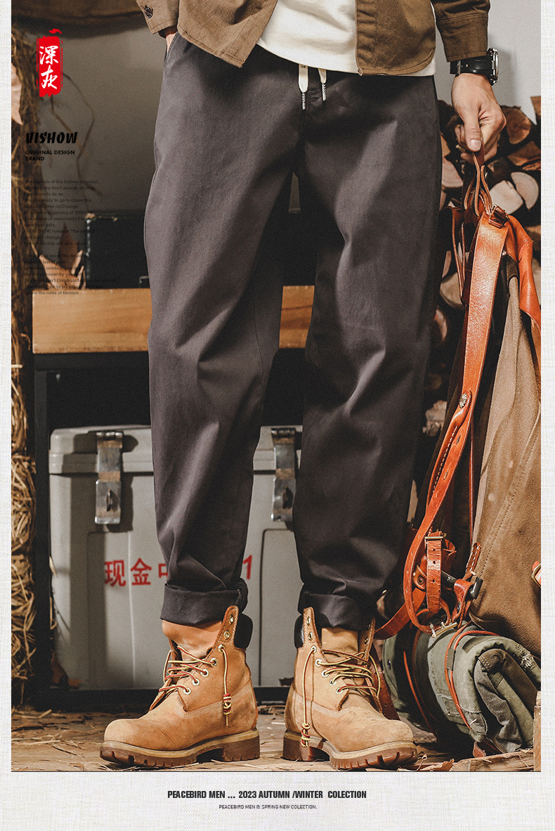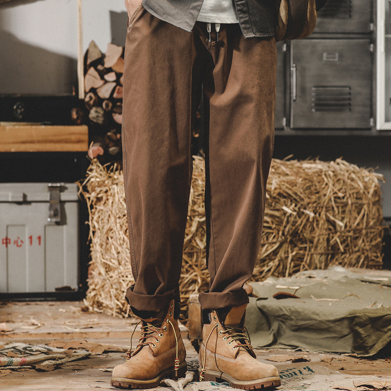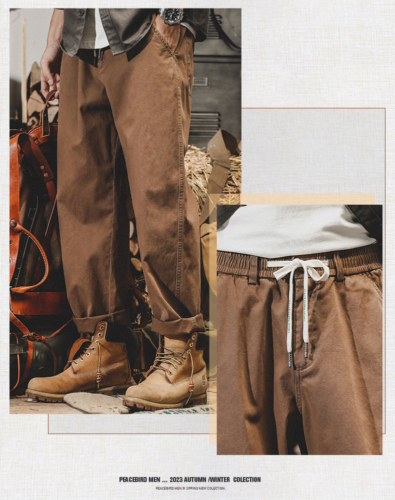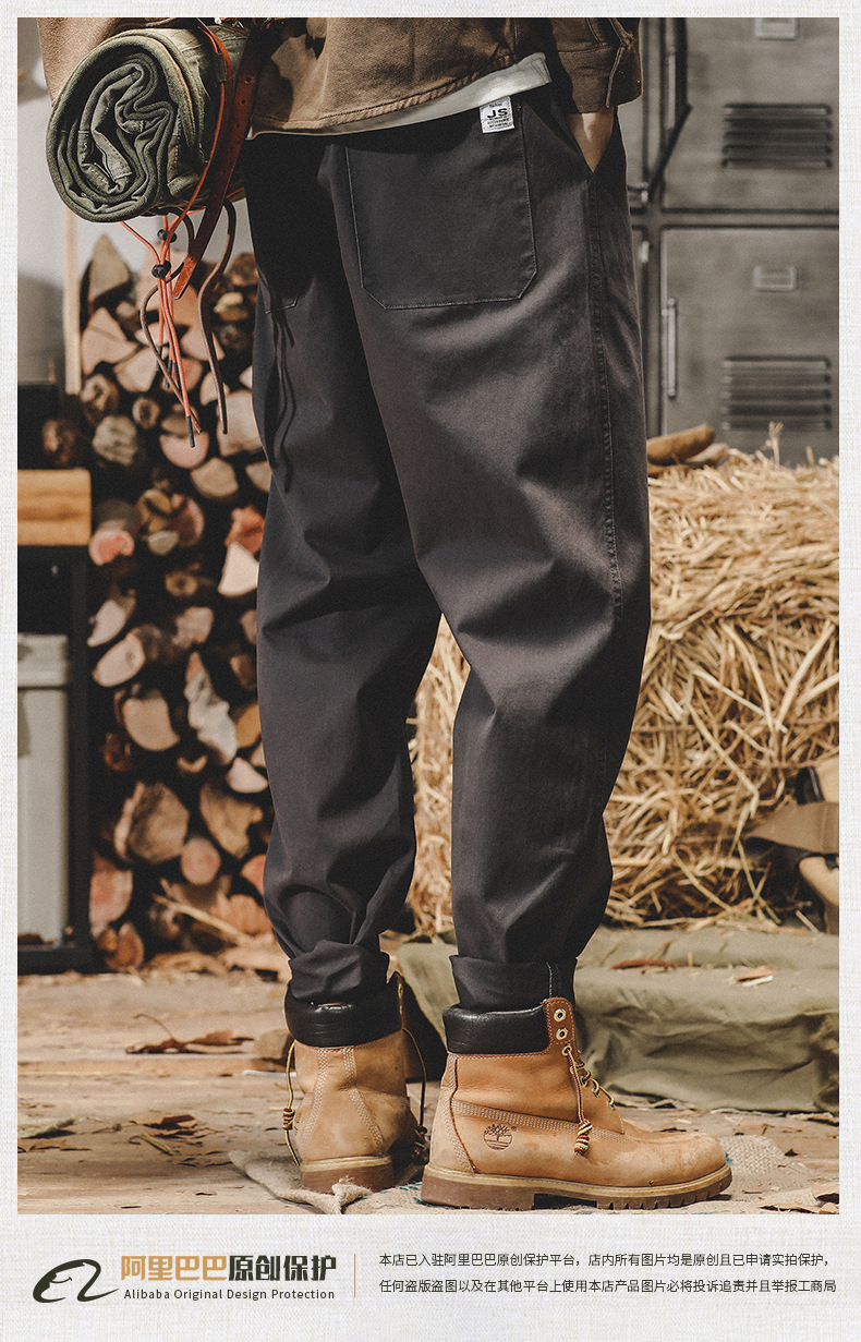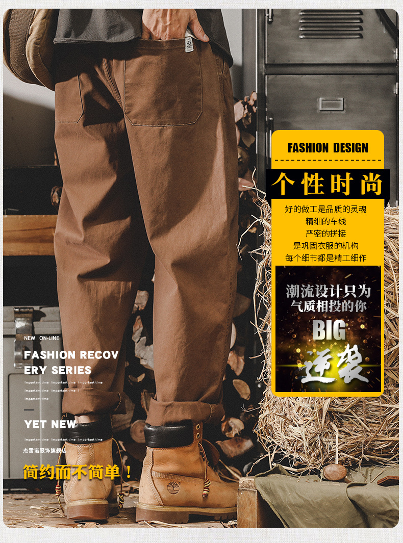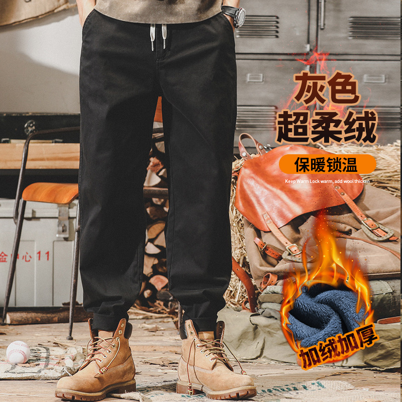 미국 복고풍 툴링 바지 남자의 가을과 겨울 유행 브랜드 느슨한 플러스 사이즈 간단한 테이퍼 스트레이트 겨울 기모 바지 남성용스토어 가기