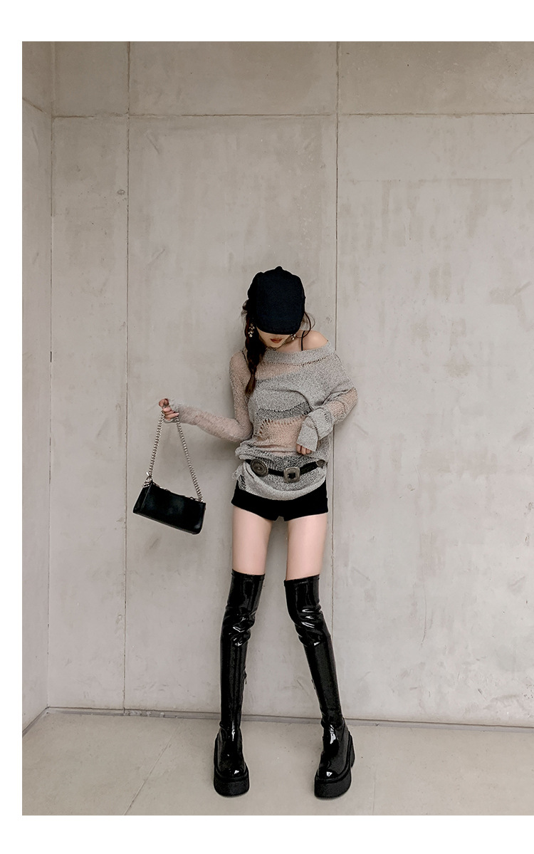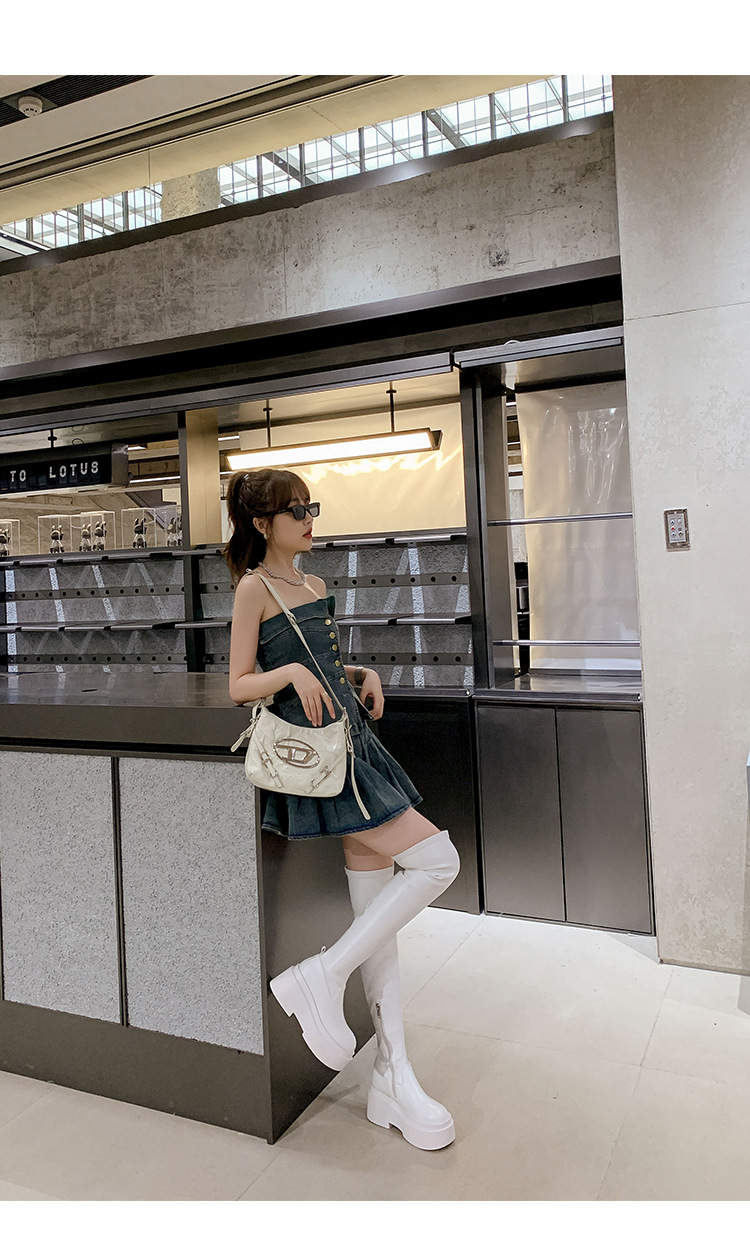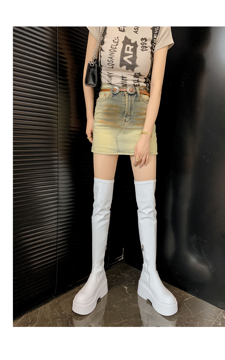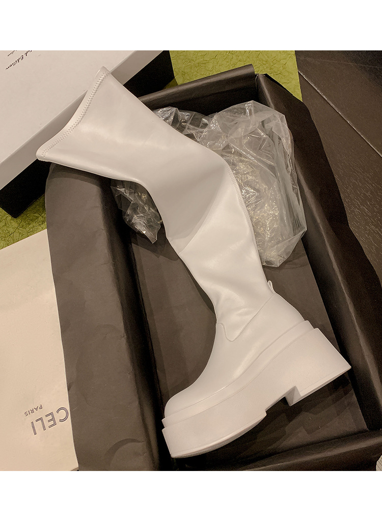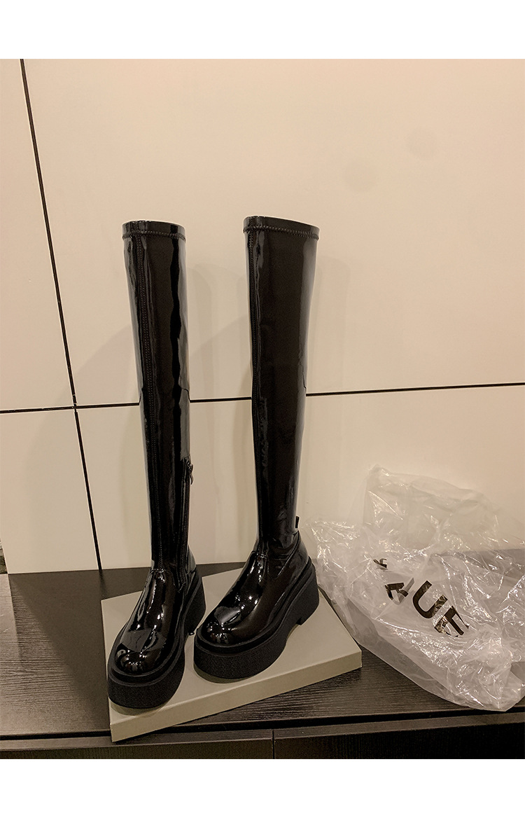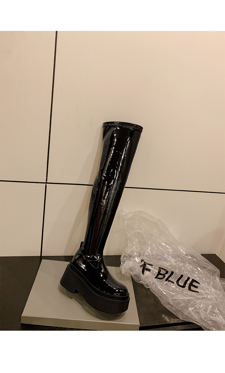 Qiumeier 두꺼운 밑창 무릎 위 롱 부츠 여성용 스웨이드 슬리밍 탄성 롱 부츠 봄과 가을 대형 튜브 라운드 두꺼운 다리 싱글 하이 튜브스토어 가기