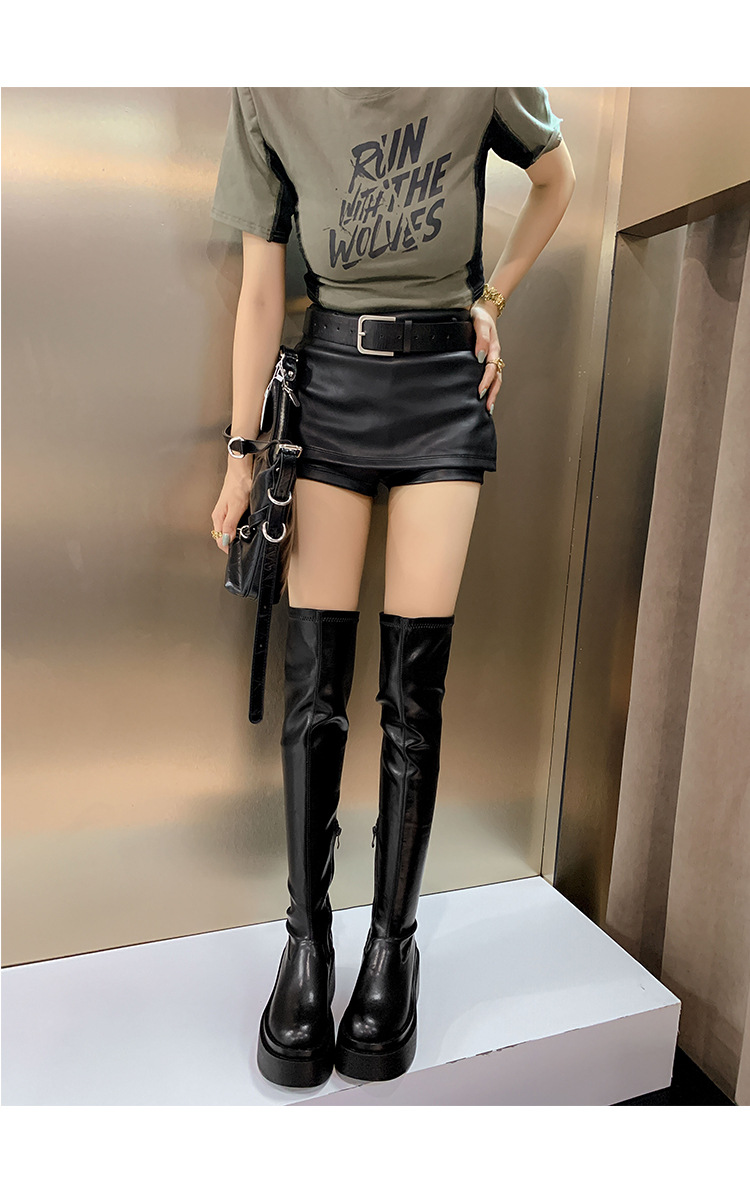 Qiumeier 두꺼운 밑창 무릎 위 롱 부츠 여성용 스웨이드 슬리밍 탄성 롱 부츠 봄과 가을 대형 튜브 라운드 두꺼운 다리 싱글 하이 튜브
