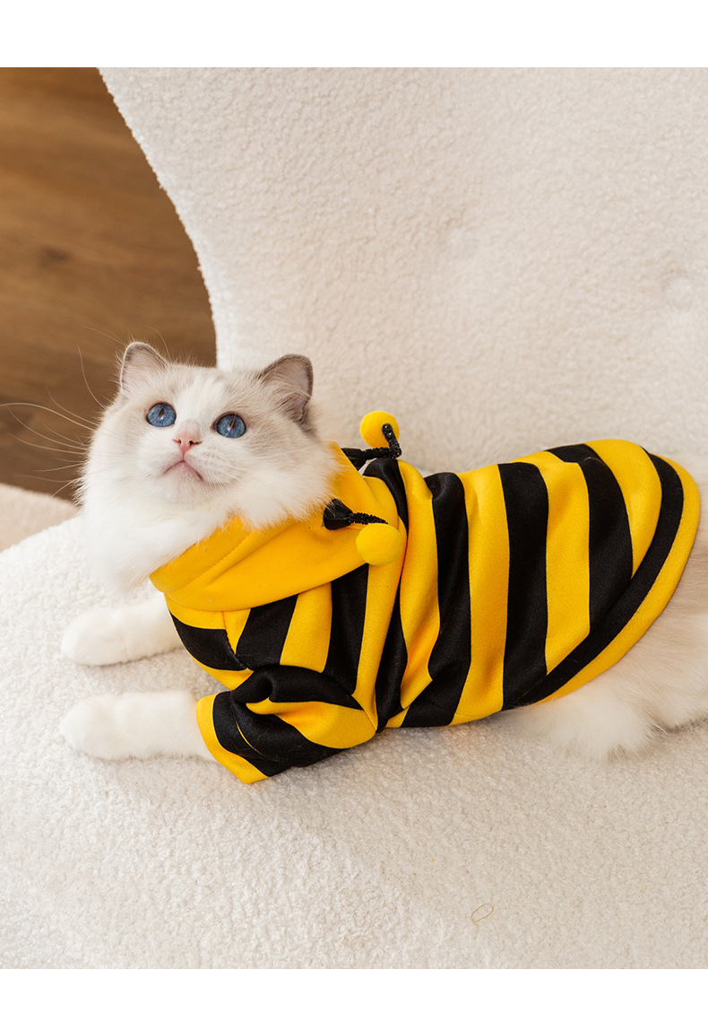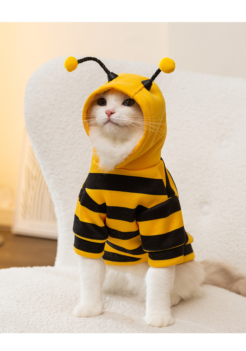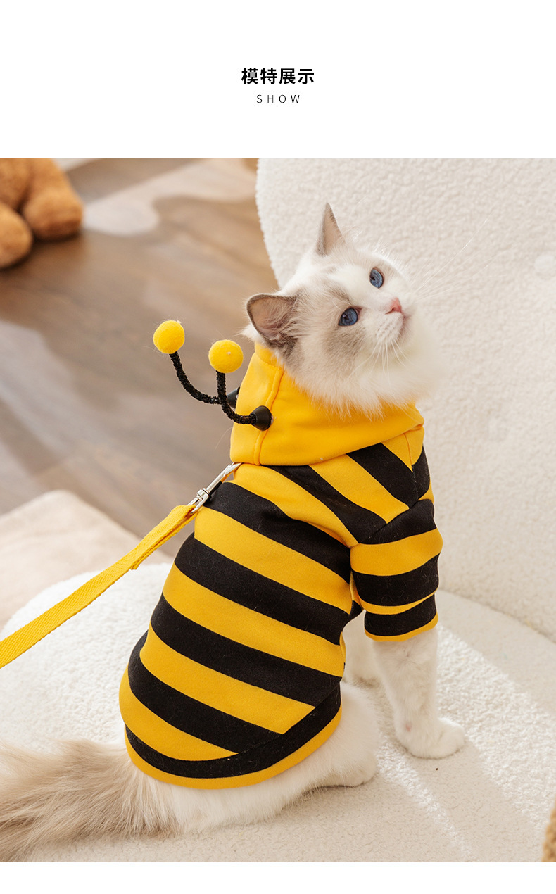 가을과 겨울 고양이 옷 고양이 털 방지 애완 동물 의류에 귀여운 꿀벌 견인 얇은 양털 스웨터스토어 가기