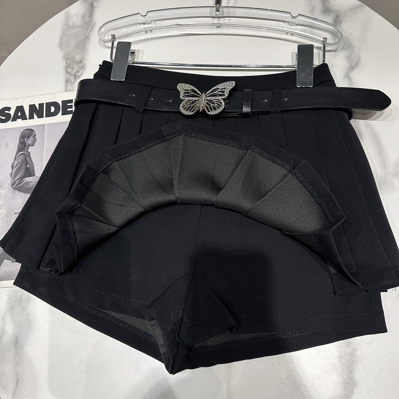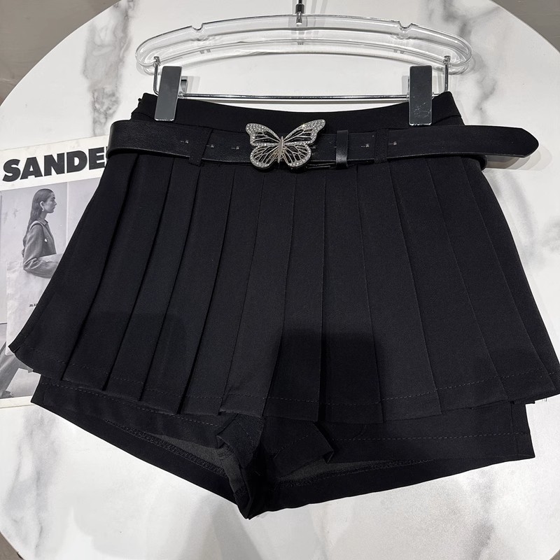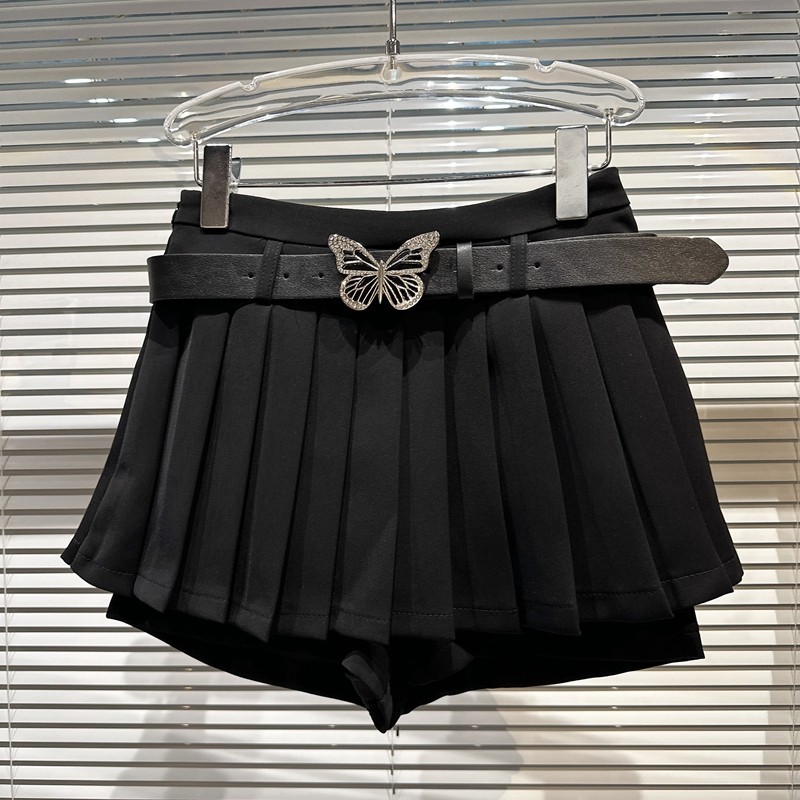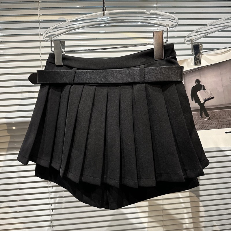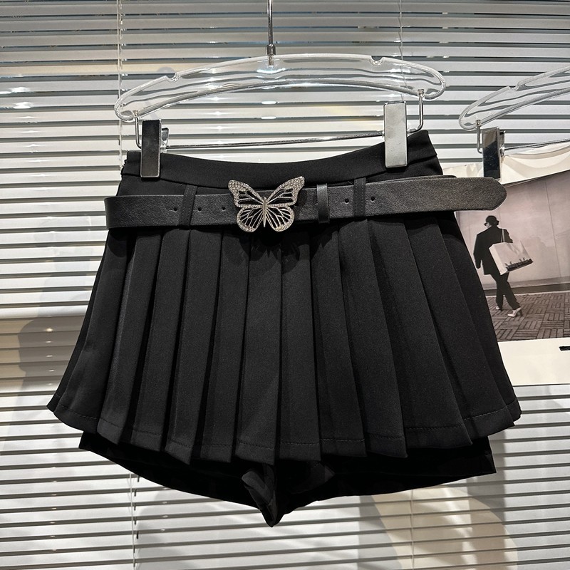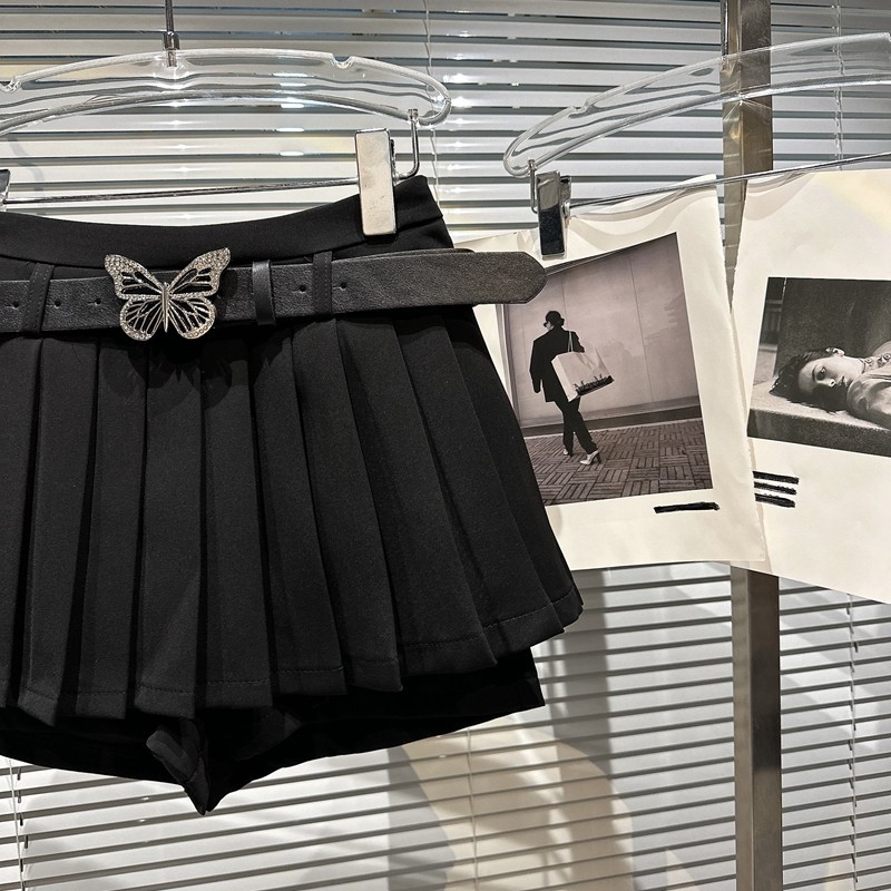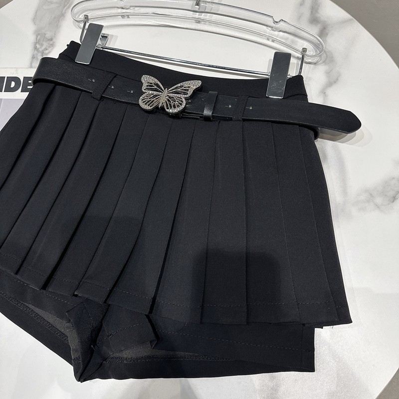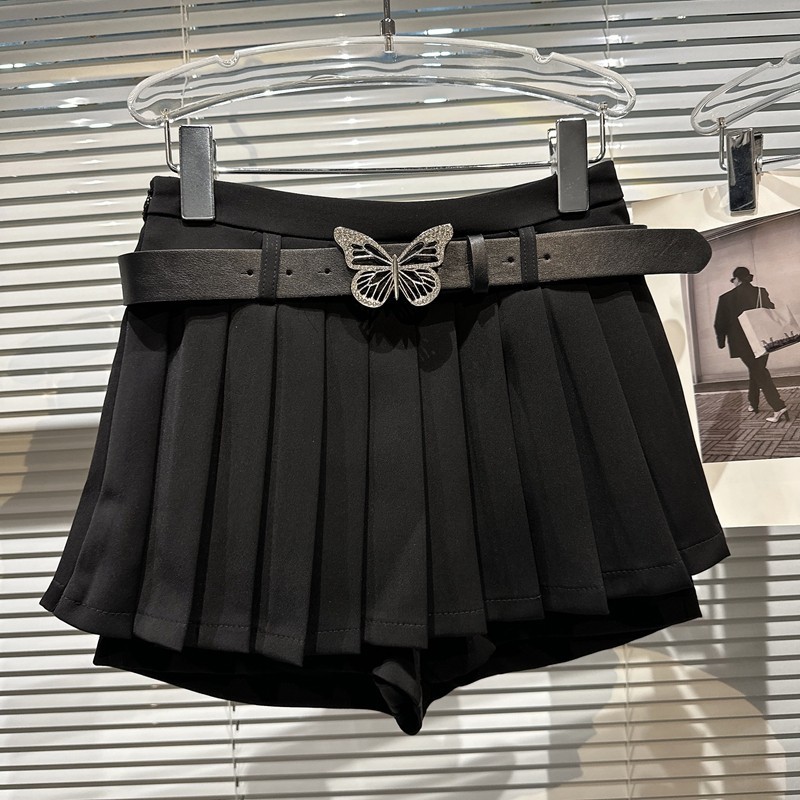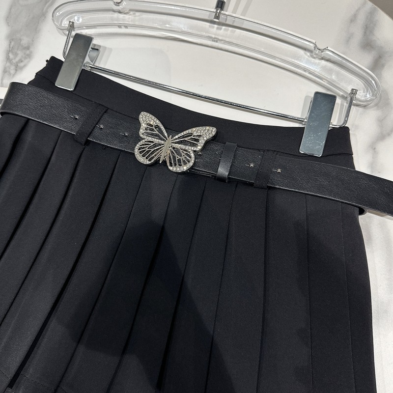 블랙 샤넬 스타일 스커트 여성의 가을과 겨울 새로운 디자인 감각 틈새 나비 벨트 바느질 주름 치마 도매스토어 가기