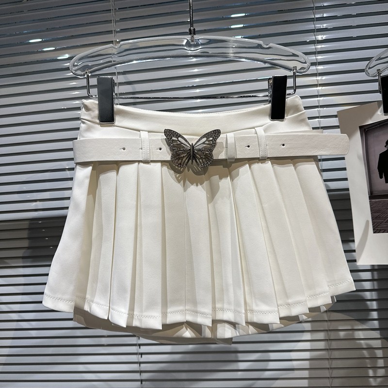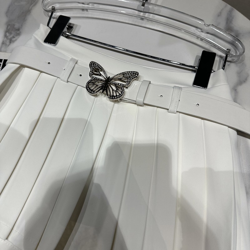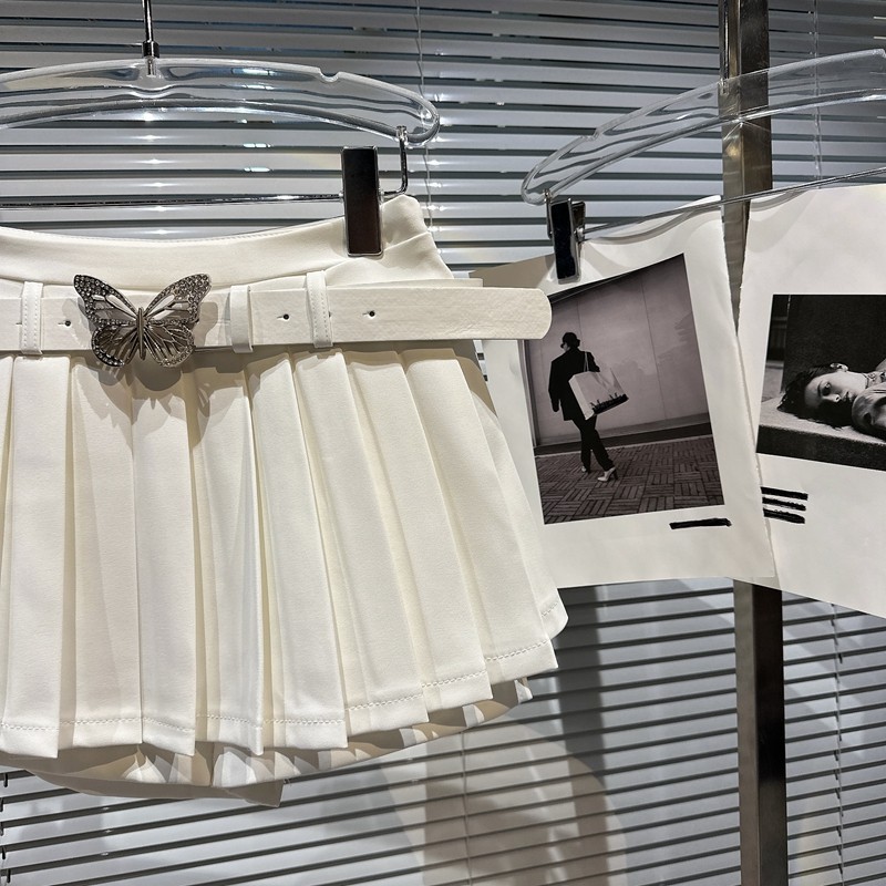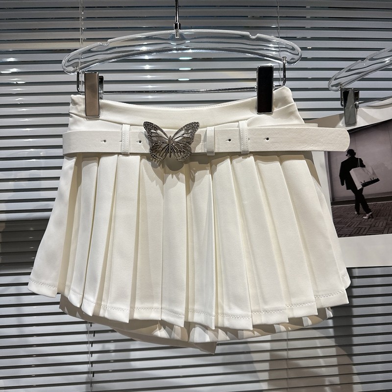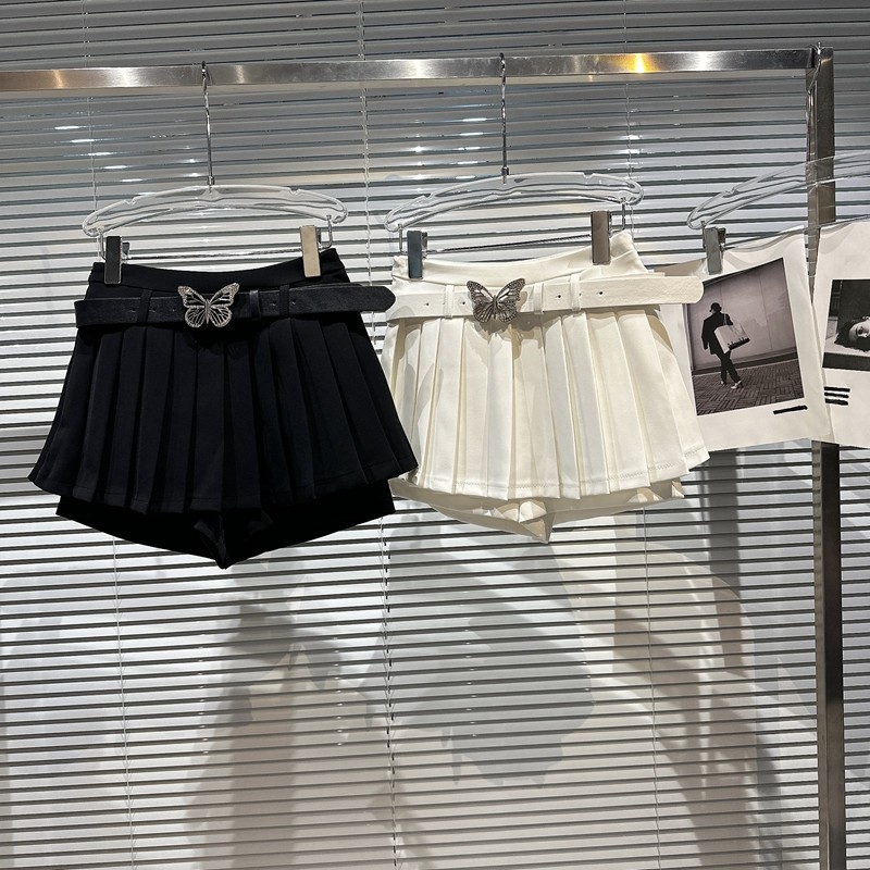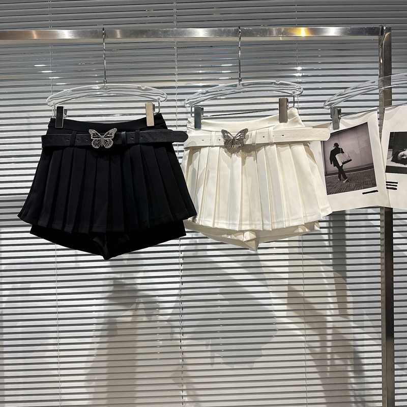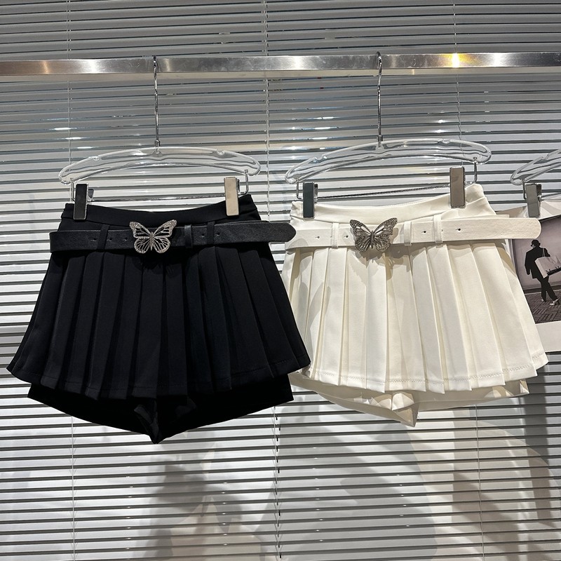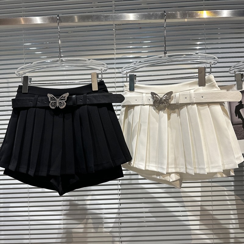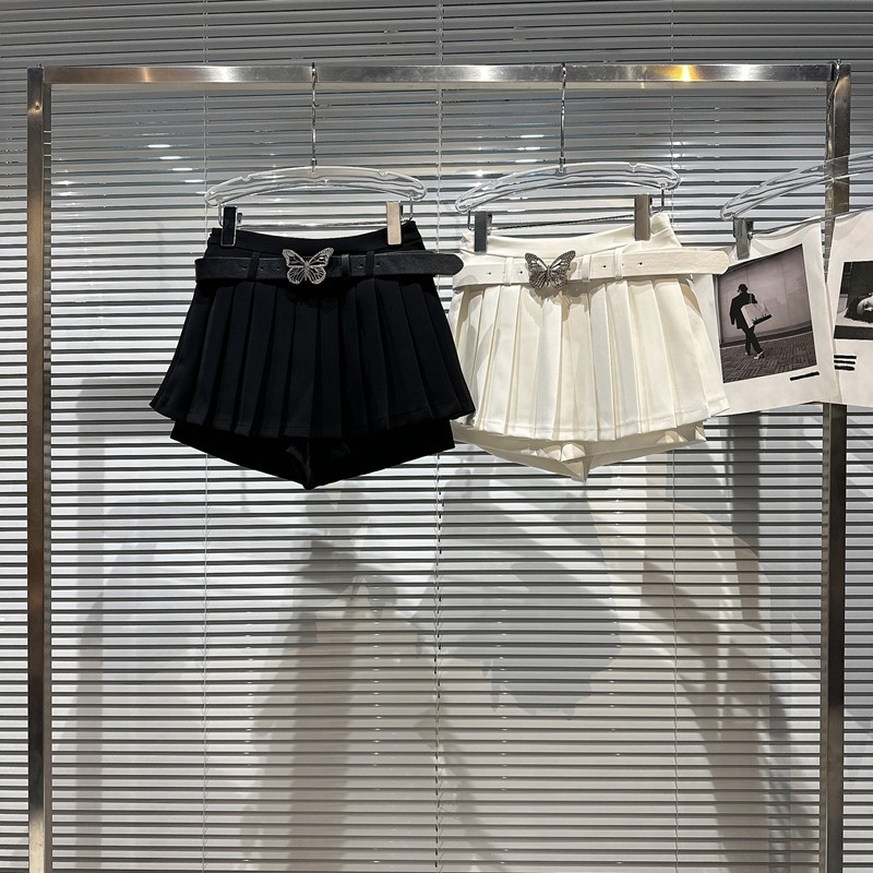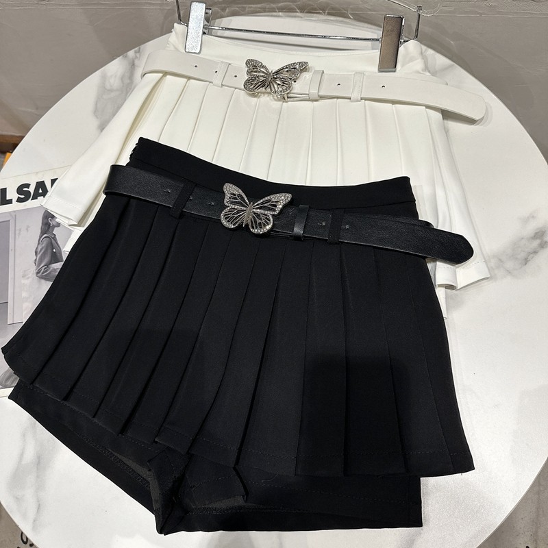 블랙 샤넬 스타일 스커트 여성의 가을과 겨울 새로운 디자인 감각 틈새 나비 벨트 바느질 주름 치마 도매스토어 가기