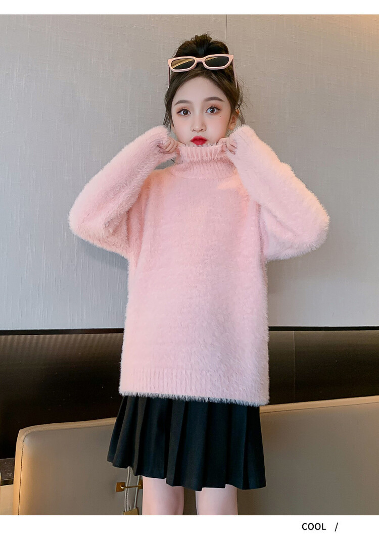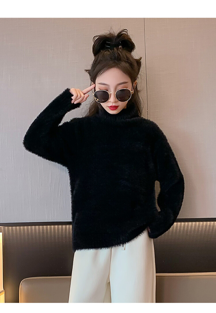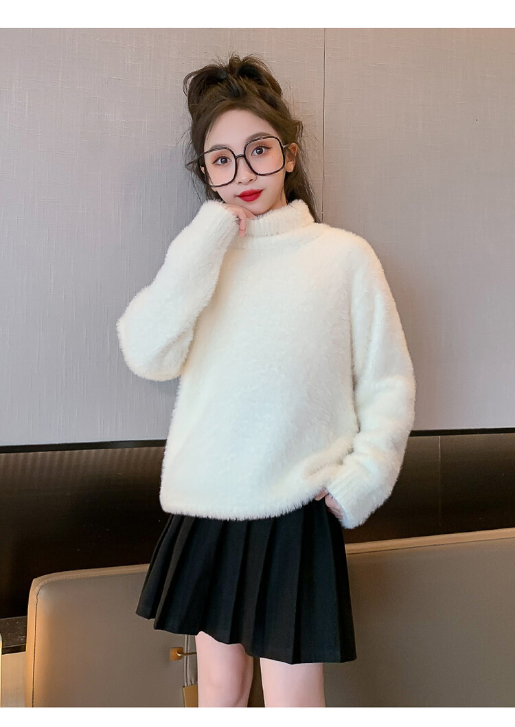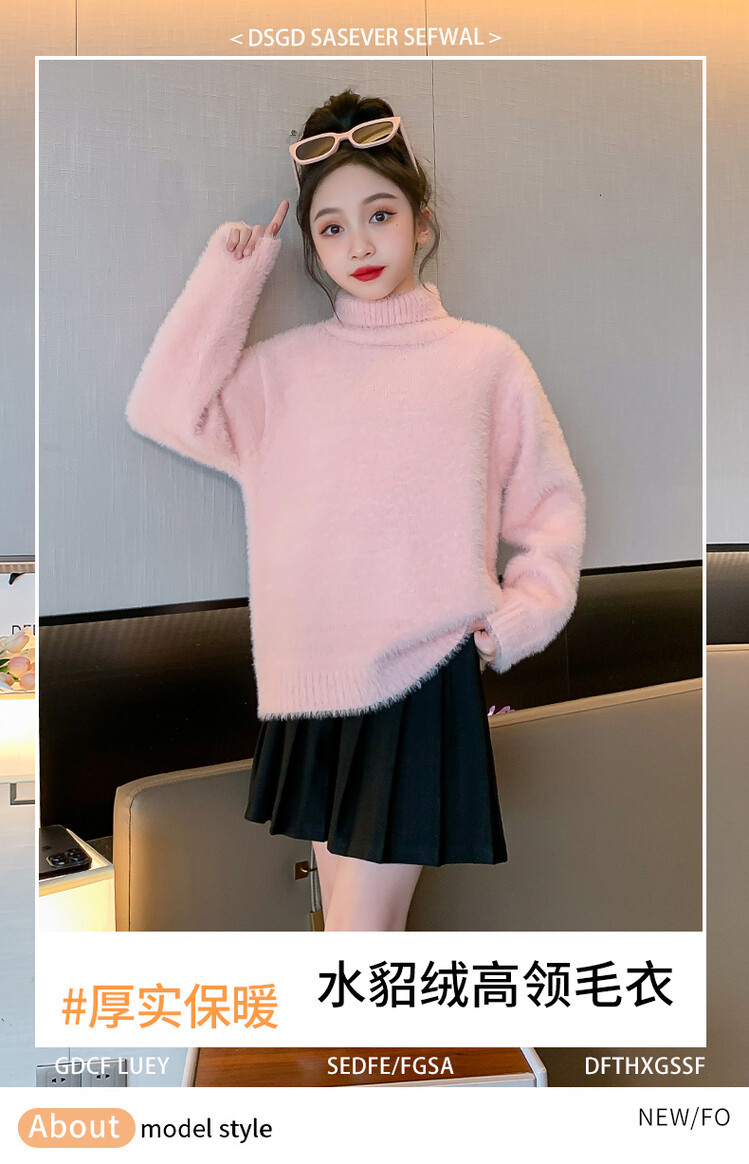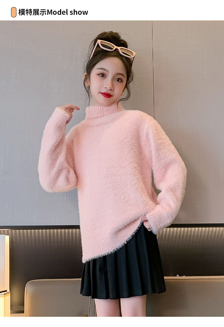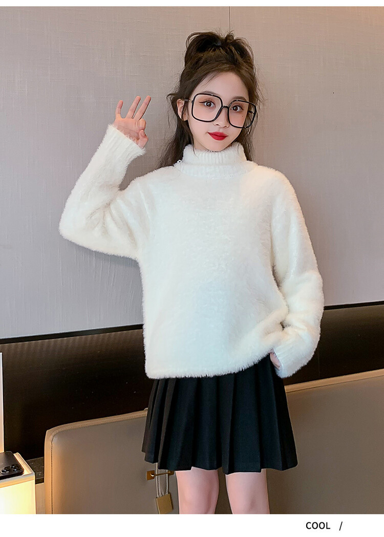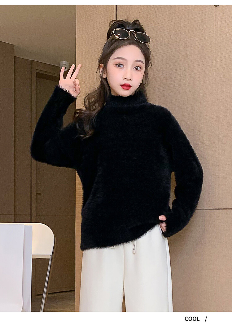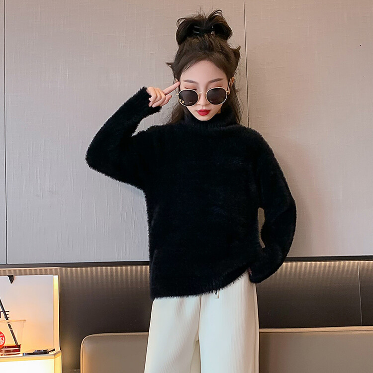 여아 새로운 가을과 겨울 밍크 벨벳 스웨터 2023 어린이 서양 스타일 사이버 연예인 하이 칼라 베이스 셔츠 중간 및 큰 어린이 니트웨어스토어 가기