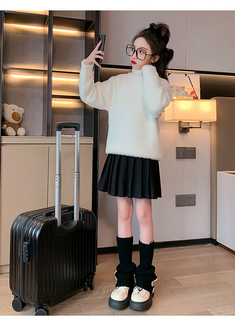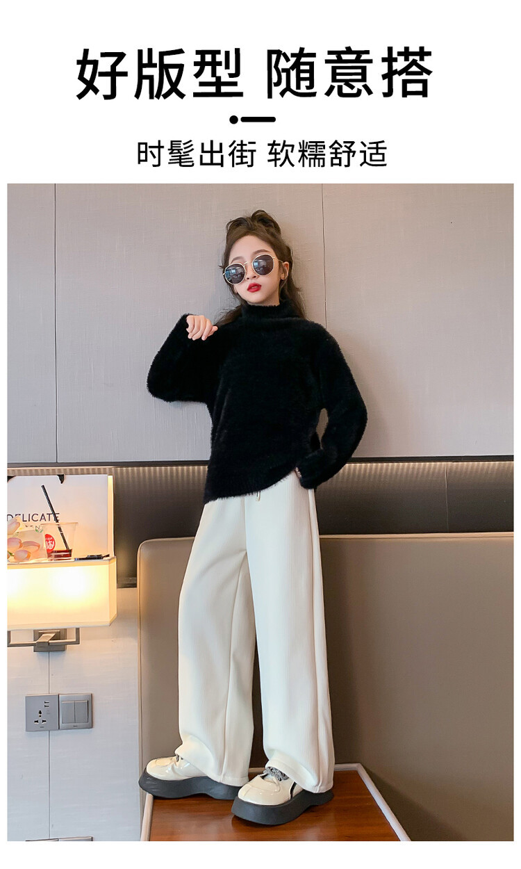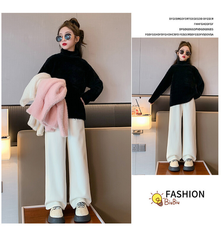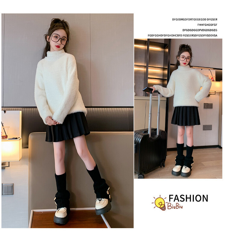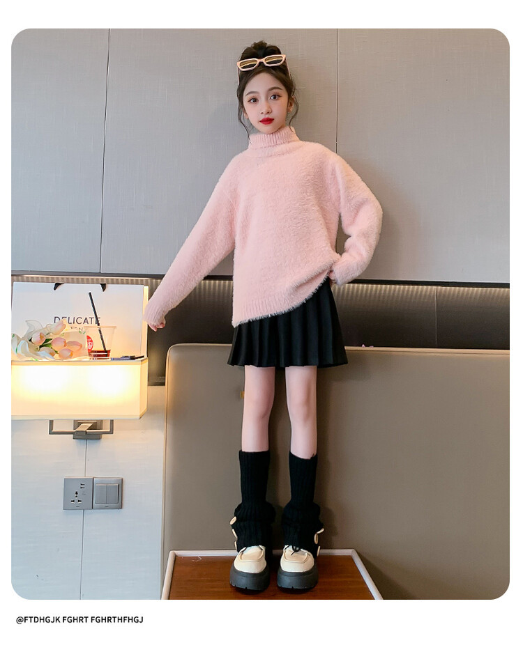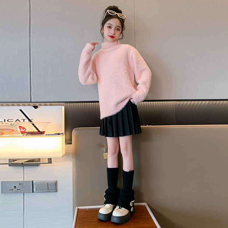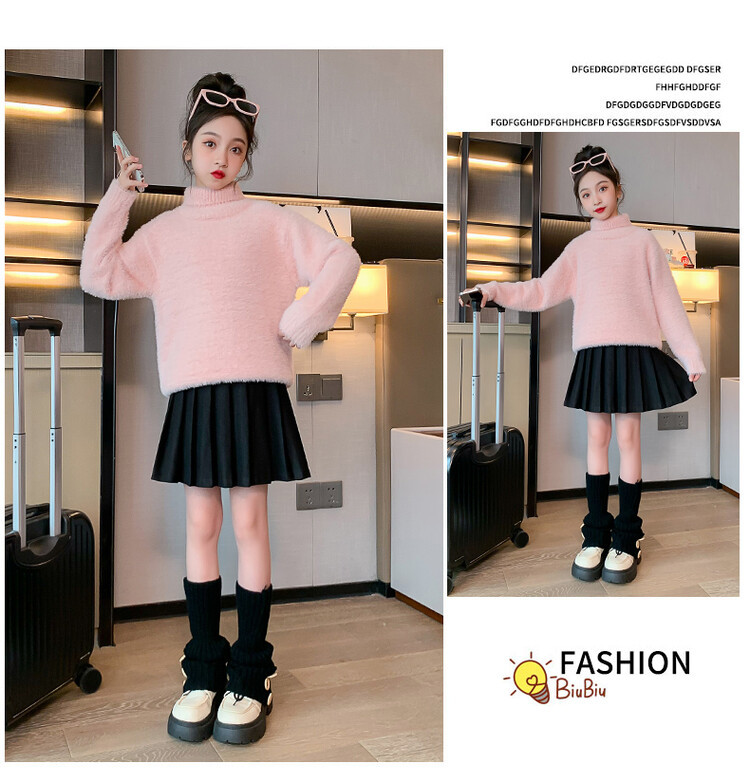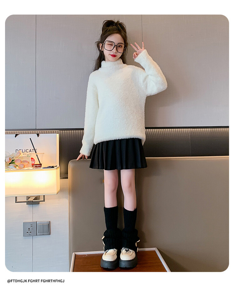 여아 새로운 가을과 겨울 밍크 벨벳 스웨터 2023 어린이 서양 스타일 사이버 연예인 하이 칼라 베이스 셔츠 중간 및 큰 어린이 니트웨어스토어 가기