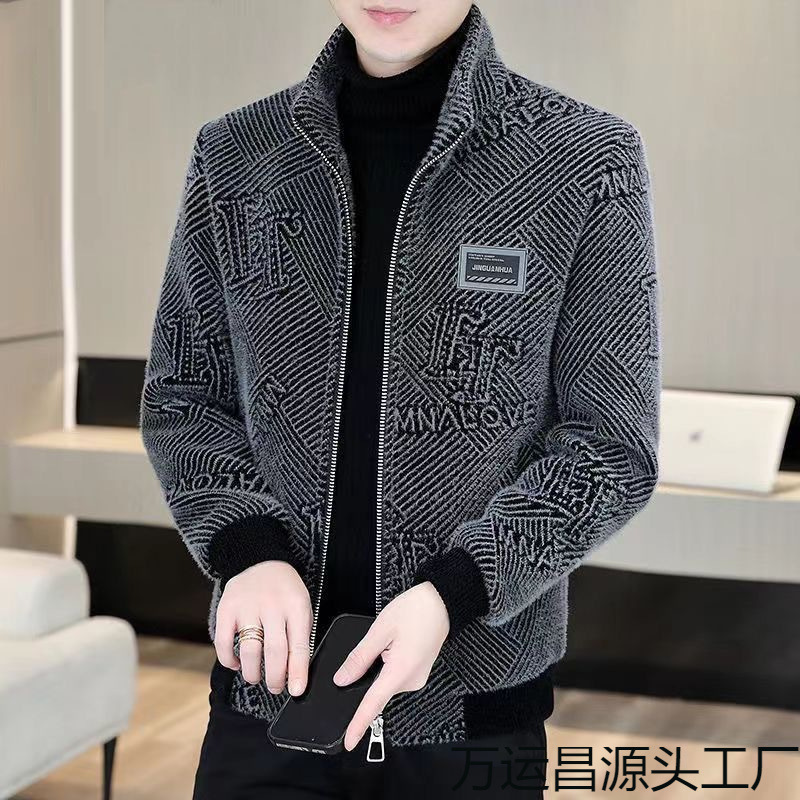 남성용 모직 코트 자켓 한국 스타일 겨울용 윈드브레이커 남성용 레터링 코트 회색스토어 가기