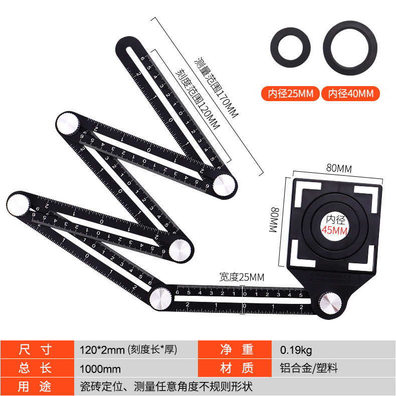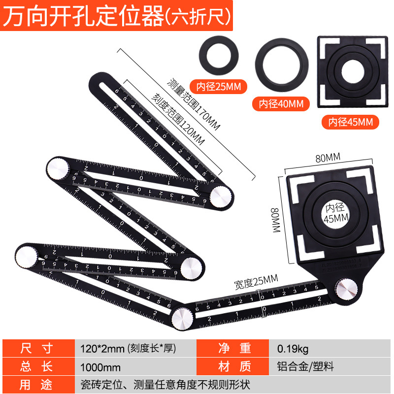 벽돌 벽 타일 바닥 타일 유리 보편적 인 펀치 유물 알루미늄 합금 6 배 통치자 타일 구멍 찾기