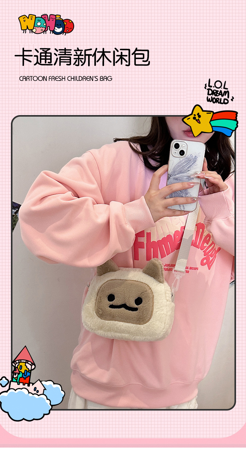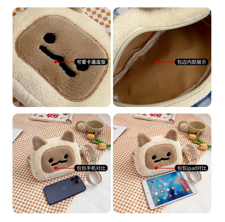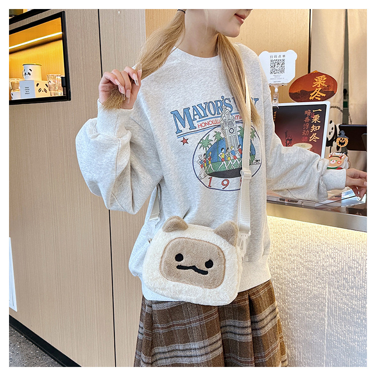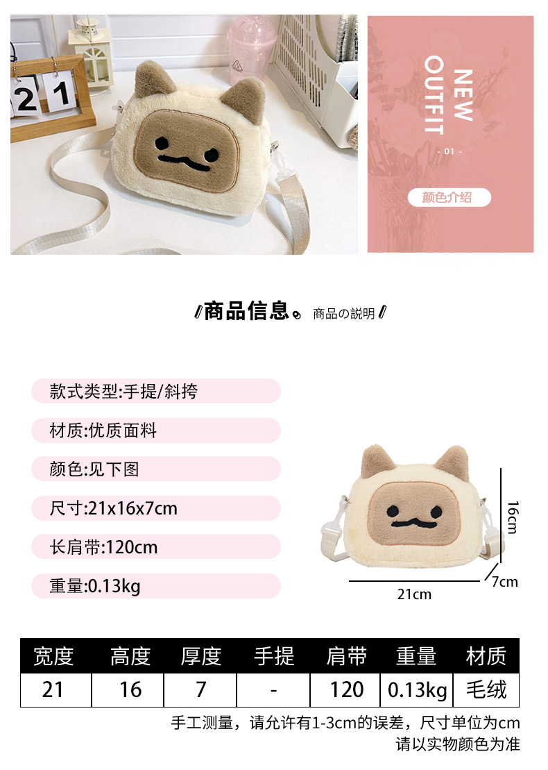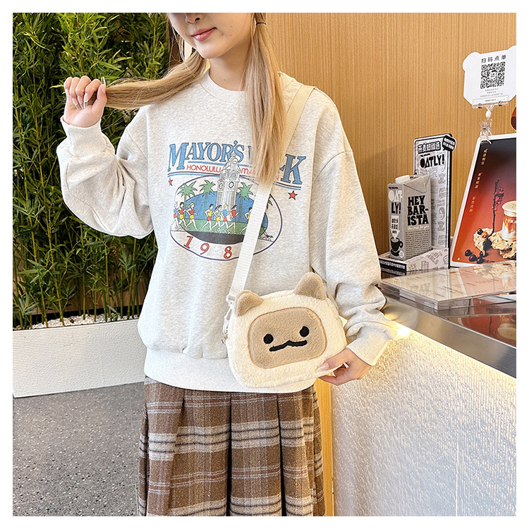 일본식 인스 타 그램 스타일 가을과 겨울 새로운 귀여운 찐 빵 새끼 고양이 재미 마오 여성 가방 봉제 어깨 크로스 바디 백 작은 가방