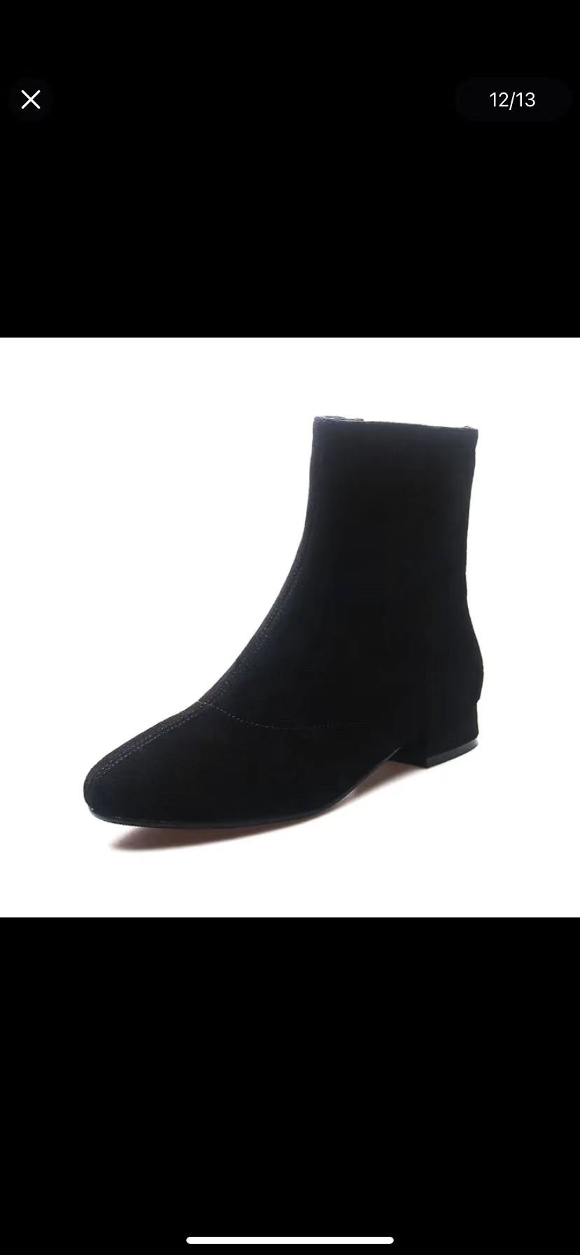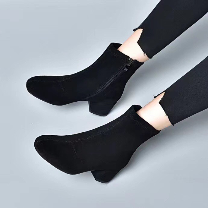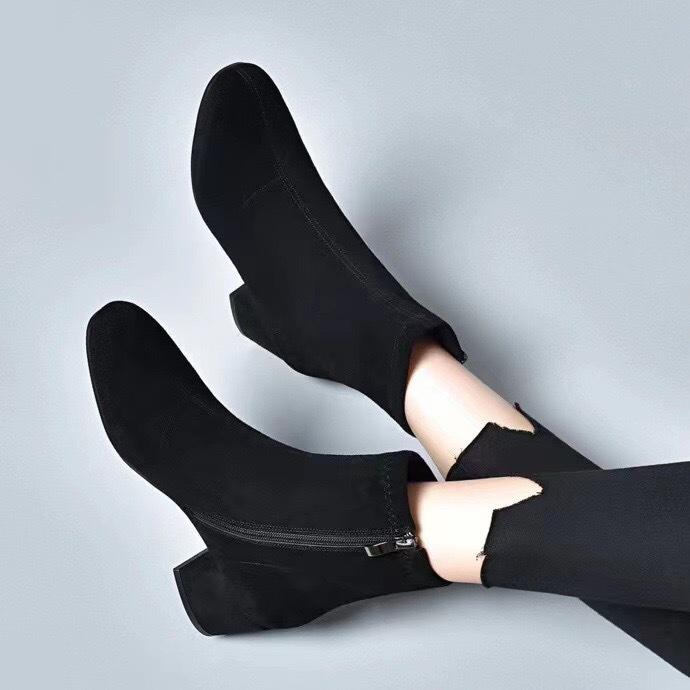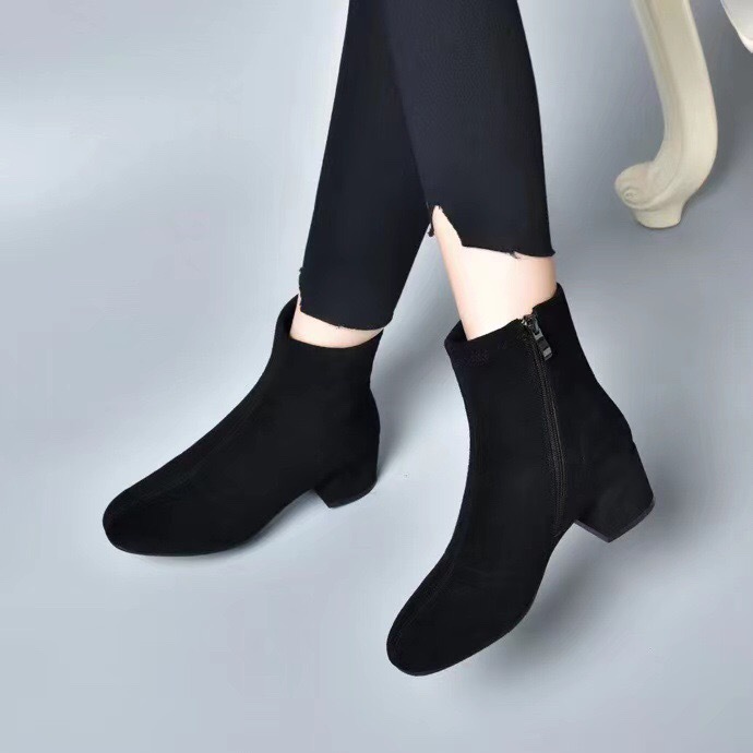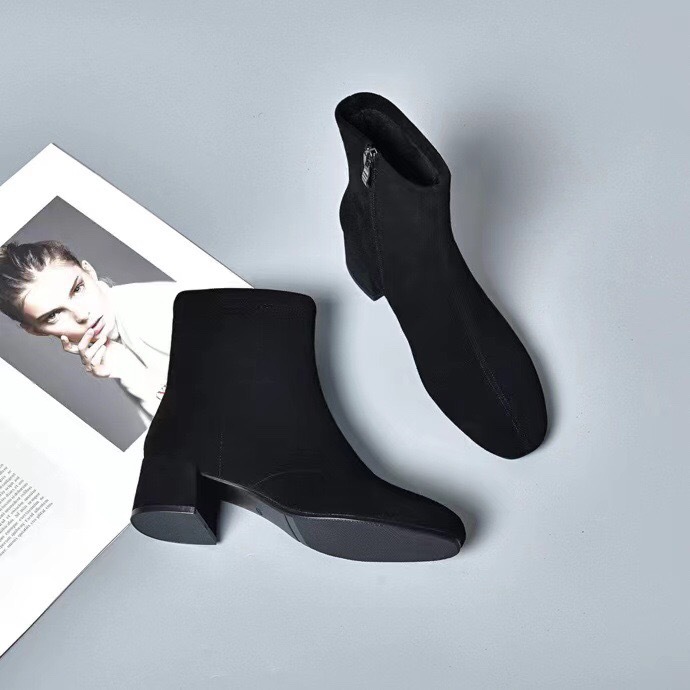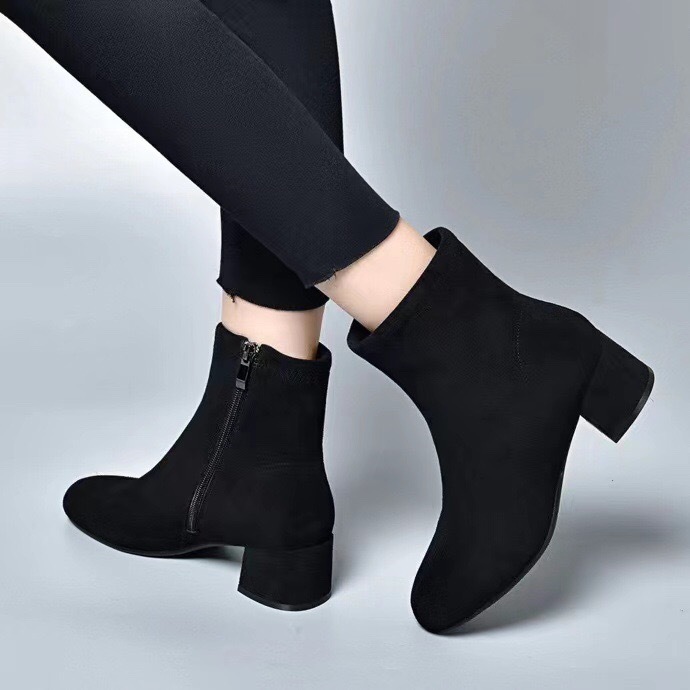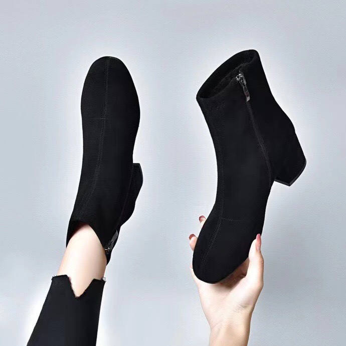 양가죽 숏부츠 슬림부츠 여성용 2024 가을 겨울 신상 누드부츠 굵은 굽 라운드 토 벨벳 가죽 무광 단화스토어 가기