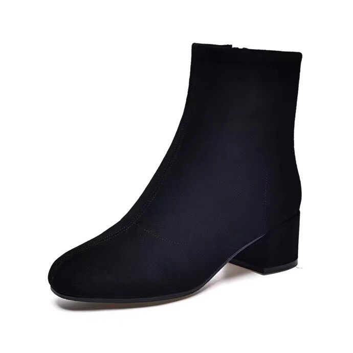 양가죽 숏부츠 슬림부츠 여성용 2024 가을 겨울 신상 누드부츠 굵은 굽 라운드 토 벨벳 가죽 무광 단화