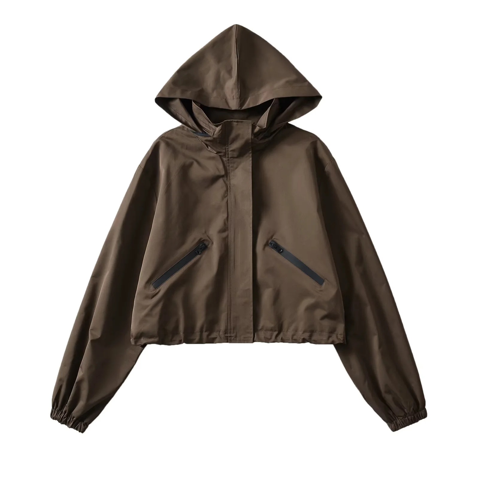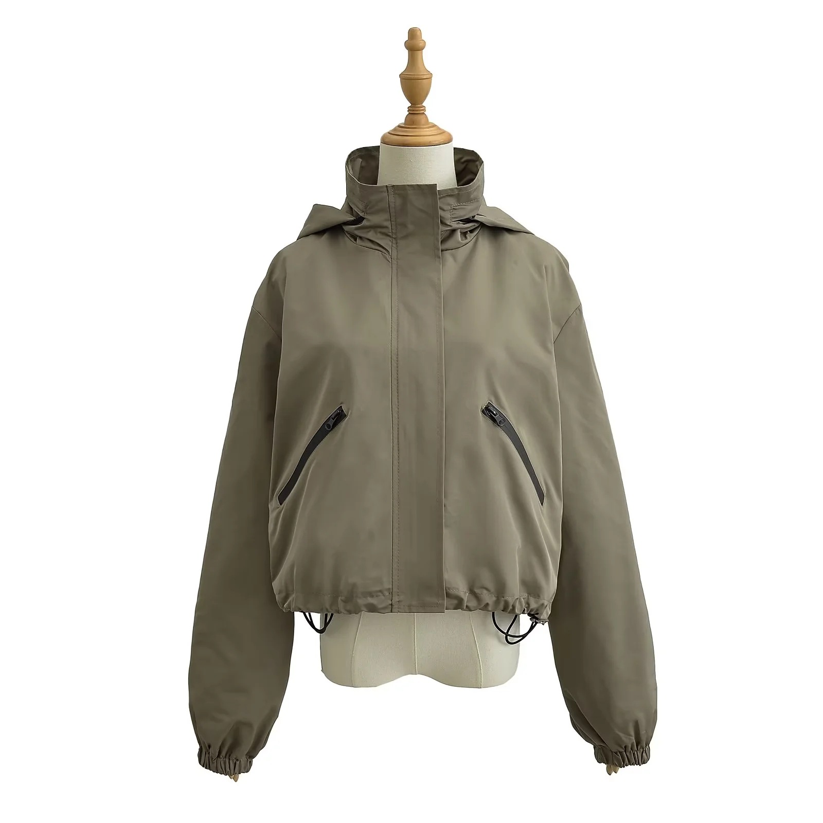 아메리칸 스타일 레트로 후드 루즈한 모든 매치 재킷 여성용 2023 새로운 슬림 룩 캐주얼 짧은 지퍼 재킷