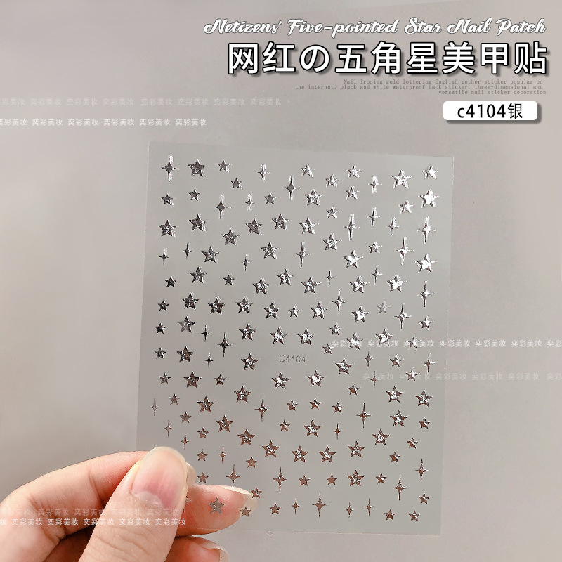 • C4104 실버 별 5 개 스티커