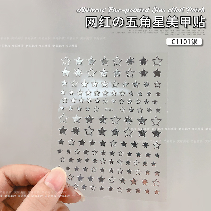 • C1101 실버 별 5 개 스티커