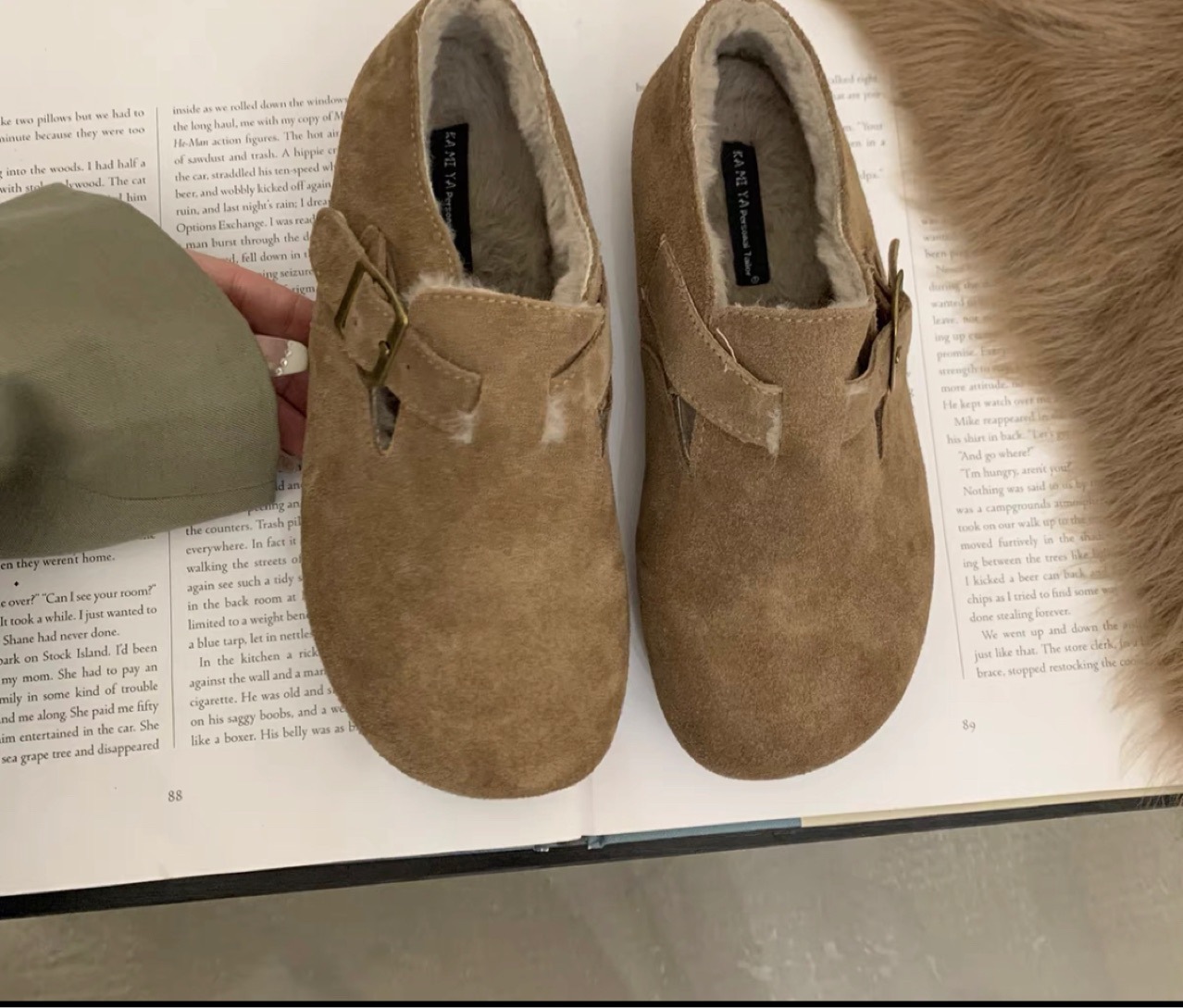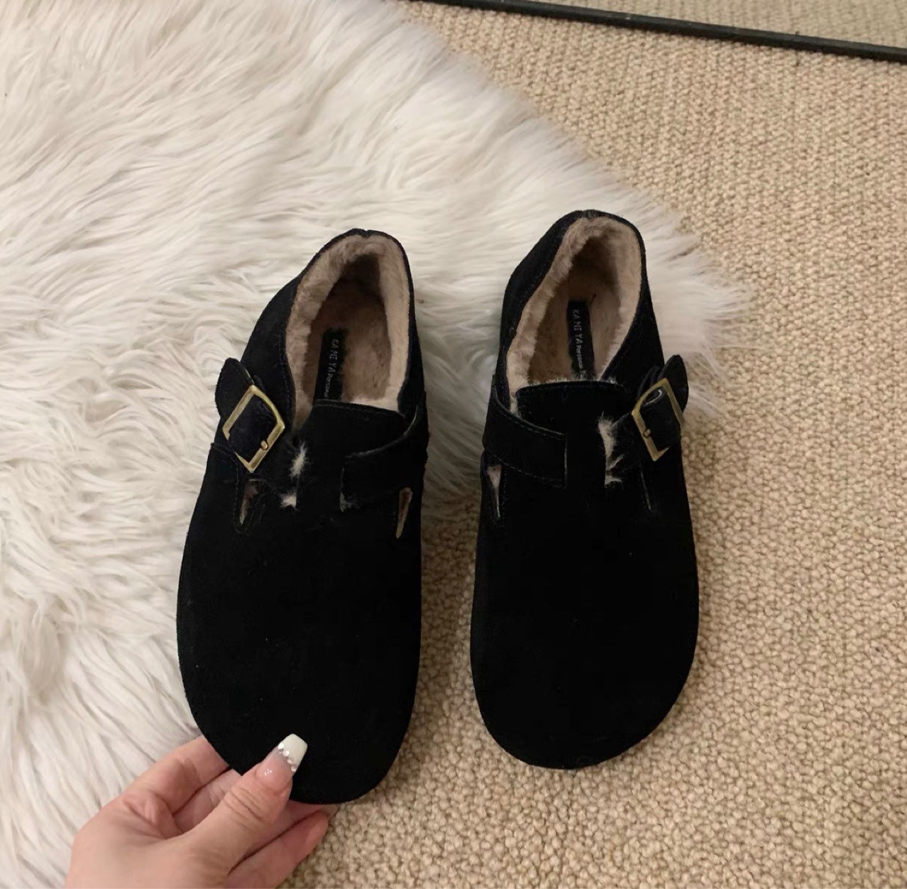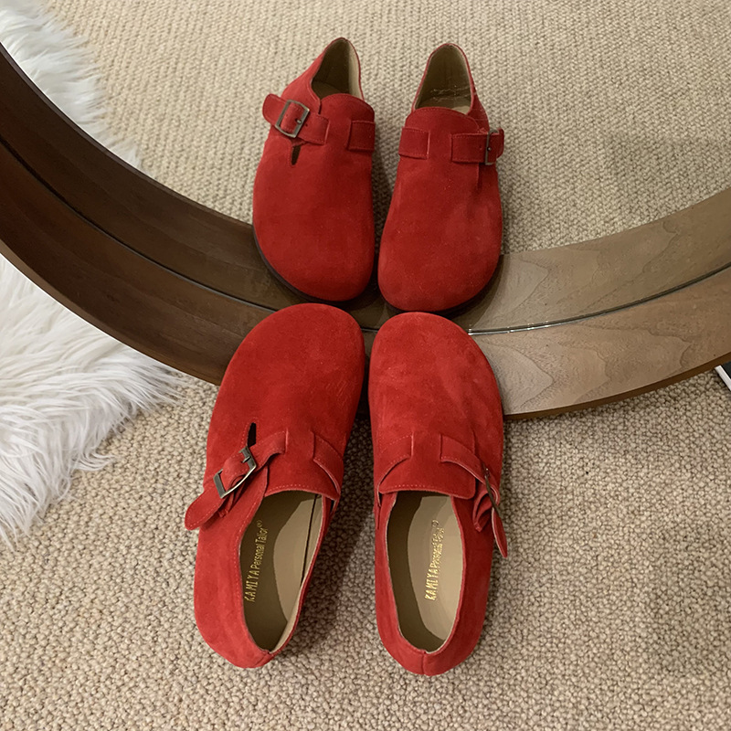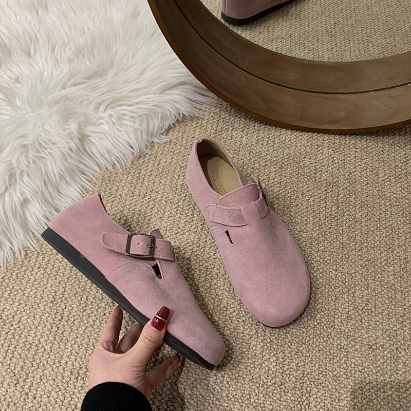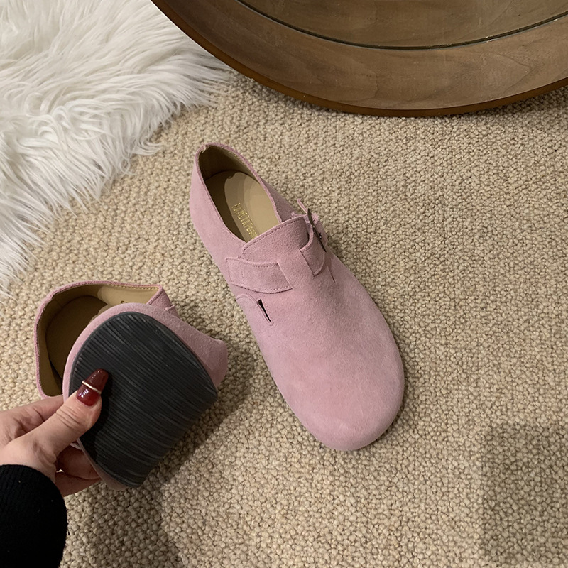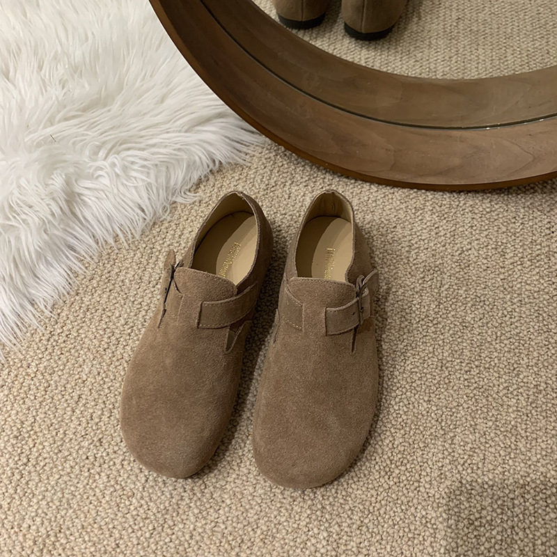 소가죽 로퍼 두꺼운 밑창 신발 여성용 라운드 토 로퍼 프랑스 가죽 신발 버켄스탁 하프 토우 아우터웨어 모든 매치 싱글 레이어 신발스토어 가기