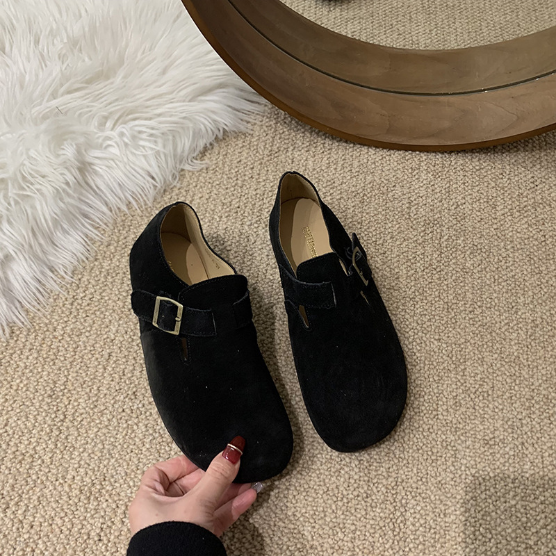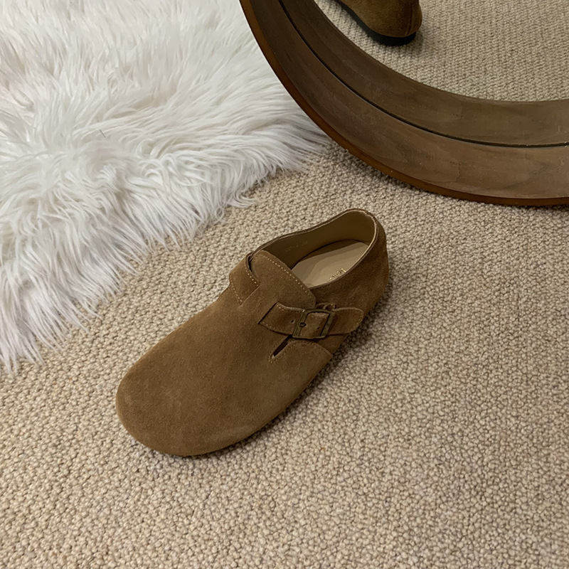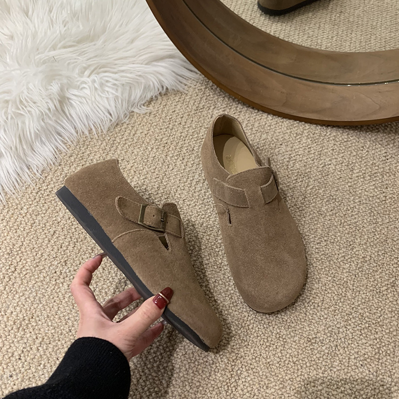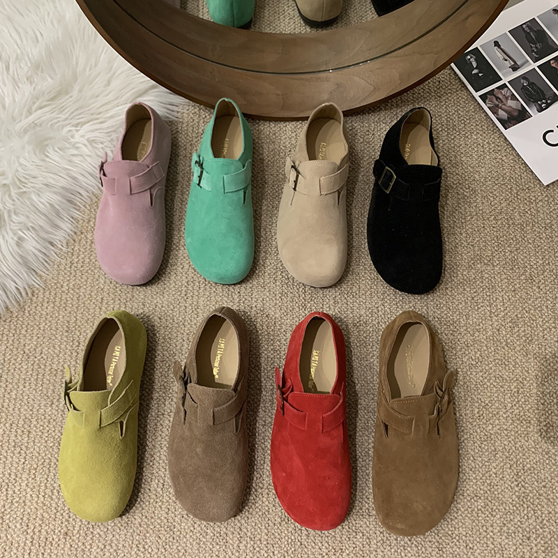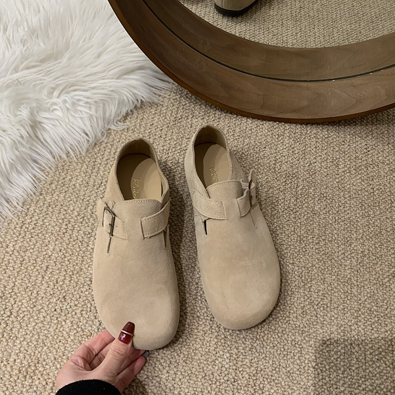 소가죽 로퍼 두꺼운 밑창 신발 여성용 라운드 토 로퍼 프랑스 가죽 신발 버켄스탁 하프 토우 아우터웨어 모든 매치 싱글 레이어 신발